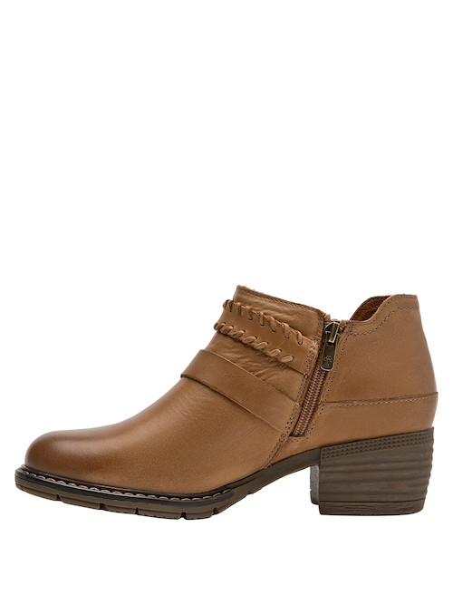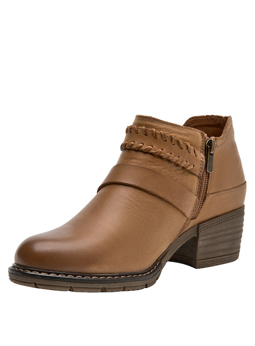 Descubre la esencia de la aventura con nuestros botines de cuero camel para mujer. Diseñados para quienes buscan comodidad y estilo, cuentan con un tacón bloque de 5 cm, que proporciona la estabilidad necesaria en cada paso. Su textura suave y los detalles de trenzado añaden un toque auténtico, mientras que la horma redonda asegura un calce perfecto. Estos botines son ideales para explorar nuevos horizontes. Combínalos con jeans y una chaqueta de piel para un look casual, o con un vestido y un abrigo ligero para un estilo funcional y chic en la ciudad.
