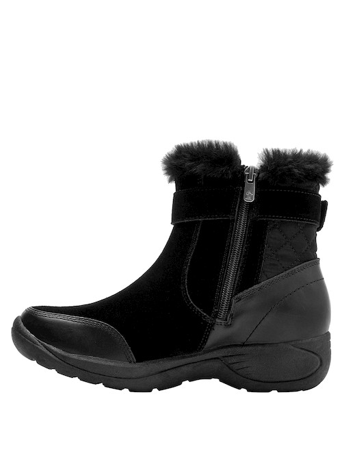 Descubre la esencia de la aventura con nuestros botines negros de mujer, elaborados en suave cuero que abraza tus pies con calidez. Su diseño de líneas limpias y detalles en texturas combina funcionalidad y estilo, permitiéndote navegar entre la naturaleza y la ciudad sin esfuerzo. Con un taco plano de 4.5 cm y una punta redonda que garantiza comodidad, estos botines son tu compañera ideal para el día a día. Combínalos con tus jeans favoritos para un look casual o atrévete a llevarlos con un vestido fluido, perfecto para explorar nuevos horizontes.