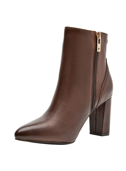 Déjate seducir por la elegancia de nuestros botines de cuero café, diseñados para la mujer actual. Con un taco de bloque de 8 cm y una punta puntiaguda, ofrecen un equilibrio perfecto entre comodidad y estilo. Su acabado suave resalta la calidad del cuero, mientras que el tono cálido añade versatilidad a tu guardarropa. Combínalos con un vestido midi o unos jeans ajustados para crear un look irresistible que te hará destacar en cualquier ocasión.