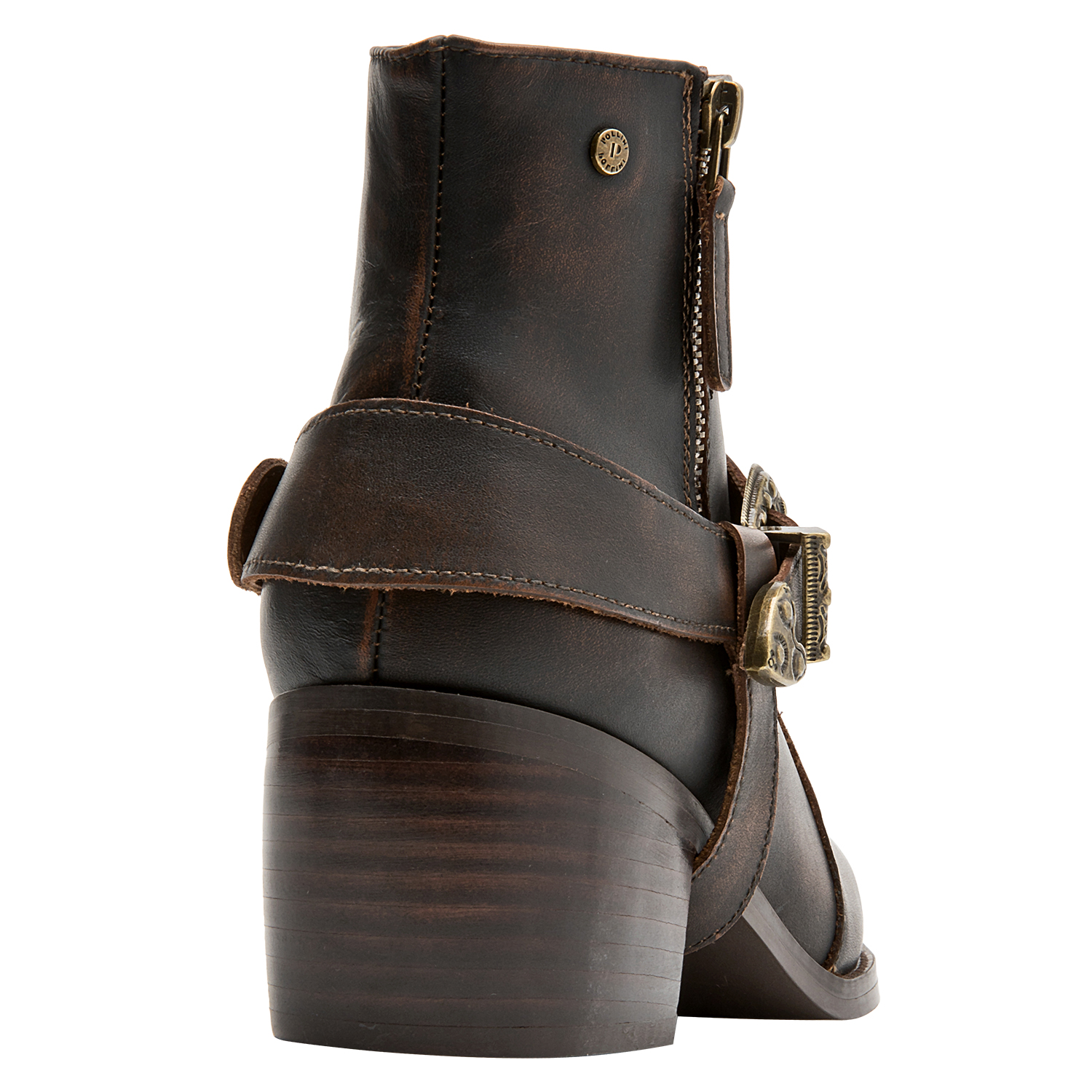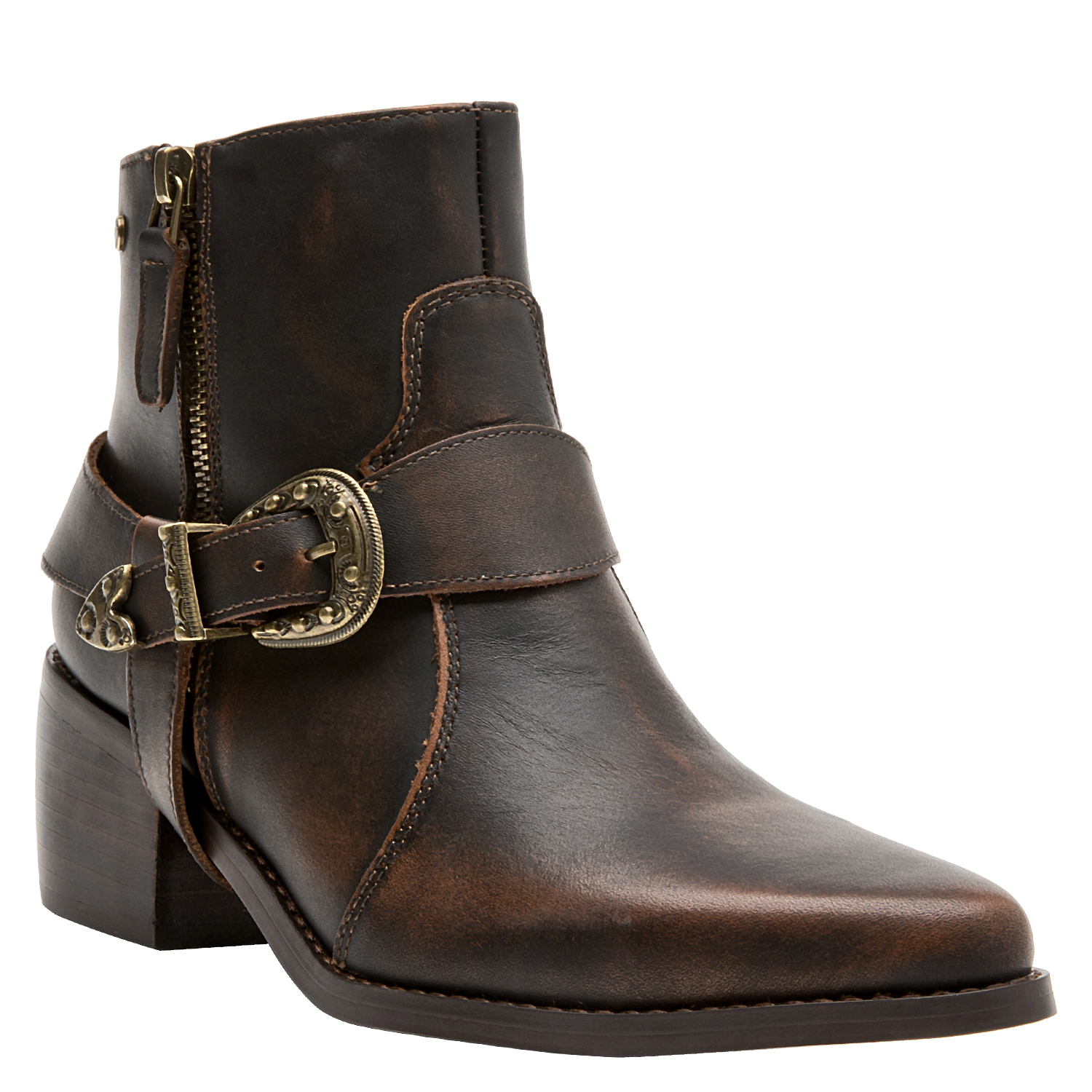 Los botines de cuero moros de Pollini son la fusión perfecta entre elegancia y vanguardia. Con un diseño de punta puntiaguda y un taco bloque de 6 cm, ofrecen una silueta estilizada que eleva cualquier look. Su acabado en cuero de alta calidad otorga un brillo sutil y una textura suave, reflejando el lujo accesible que toda mujer busca. Un detalle llamativo es la correa decorativa con hebilla, que añade un toque distintivo y moderno. Combínalos con un vestido fluido para un look sofisticado o con jeans ajustados para un estilo casual-chic.