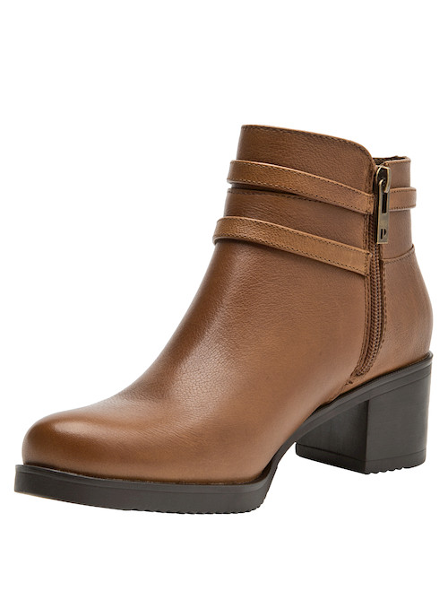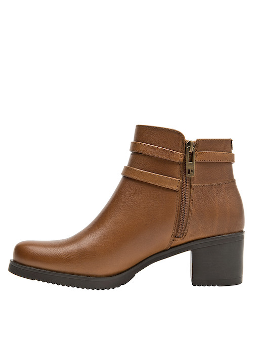 El estilo se encuentra con la comodidad en estos botines de cuero camel, perfectos para una mujer moderna y versátil. El acabado mate realza la suavidad del material, mientras que el atractivo taco bloque de 5.5 cm brinda la altura ideal sin sacrificar confort. Las cintas decorativas añaden un toque chic, alineando este diseño con las últimas tendencias. Combínalos con un vestido fluido para un look femenino o con jeans ajustados para un estilo casual y chic, siempre manteniendo tu presencia intacta.