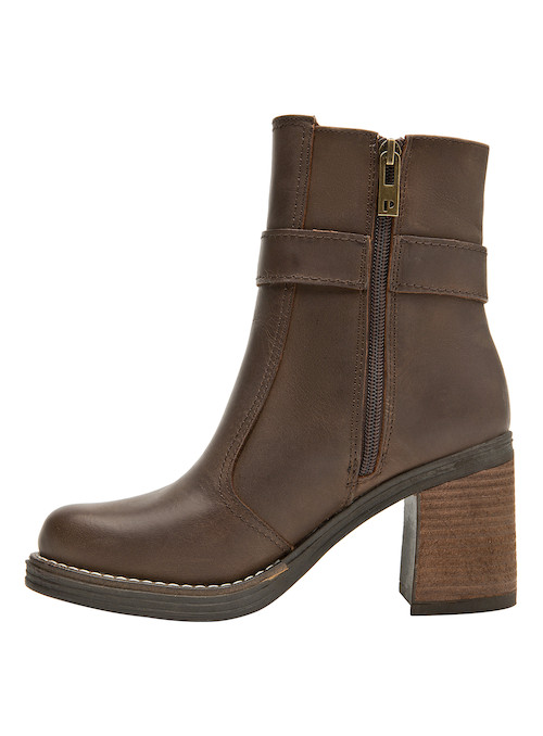 Elevate tu estilo diario con estos fabulosos botines de cuero en un cálido tono café. Con un taco bloque de 9 cm, su altura brinda una presencia poderosa sin sacrificar la comodidad. La textura suave del cuero se complementa de manera sublime con el detalle de la hebilla, aportando un toque de distinción a cada paso. Súmate a la tendencia vanguardista y combina estos botines con un vestido fluido o unos jeans ajustados para un look moderno y atractivo.