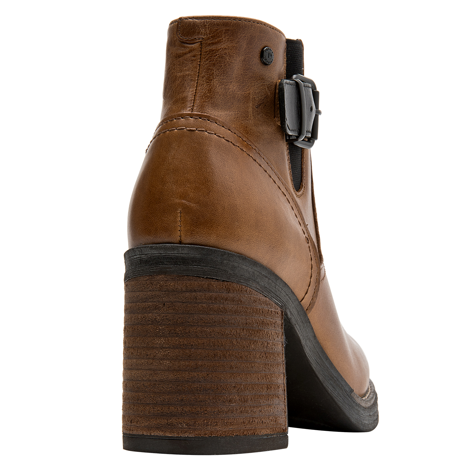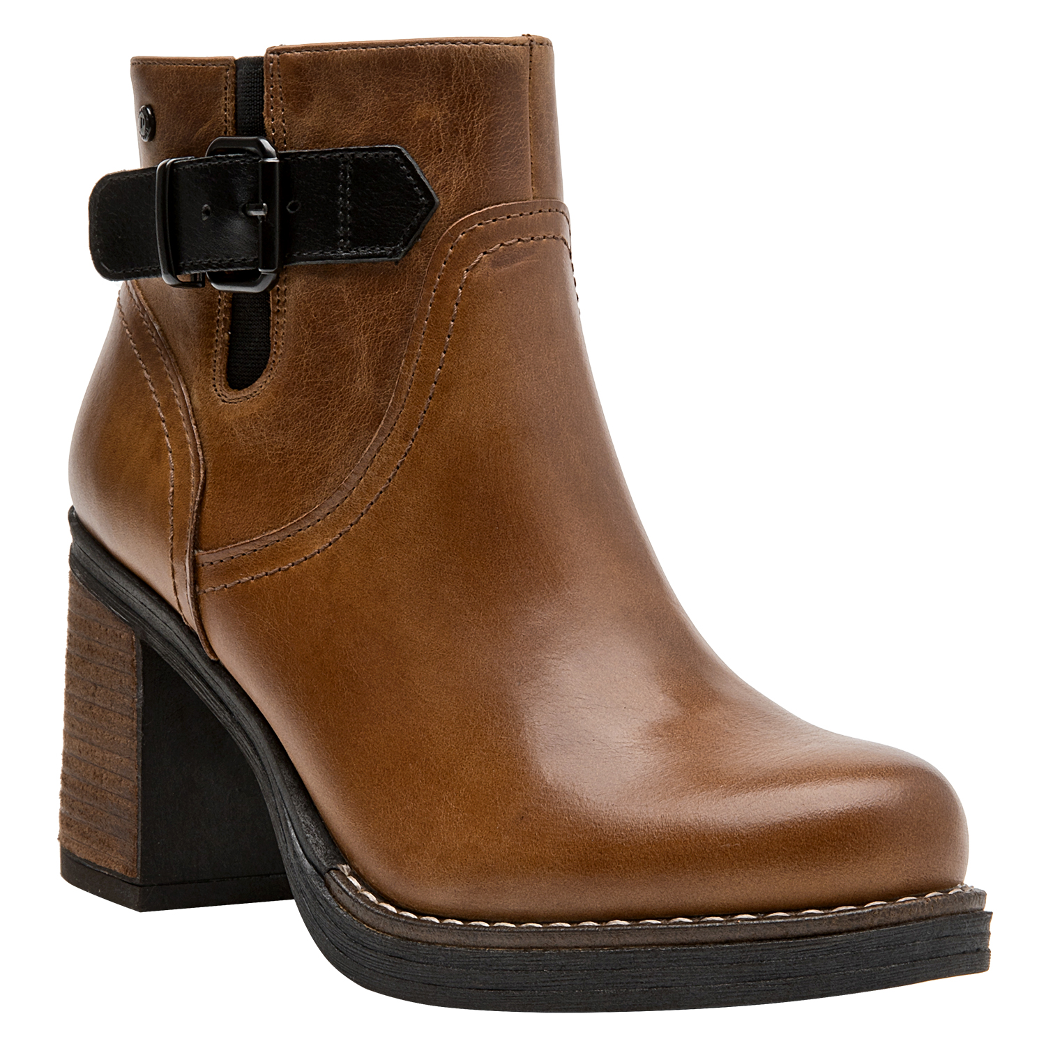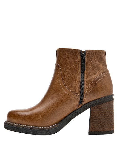 Eleva tu estilo con estos sofisticados botines de cuero camel de Pollini. Con un elegante acabado brillante y un taco bloque de 9 cm, ofrecen una presencia imponente sin sacrificar la comodidad. El detalle del cinturón negro aporta un toque de contraste que realza tu look, haciéndolos perfectos para cualquier ocasión. Combinan de maravilla con un vestido de corte midi o con unos jeans ajustados, asegurando que siempre te sientas actual y atractiva.
