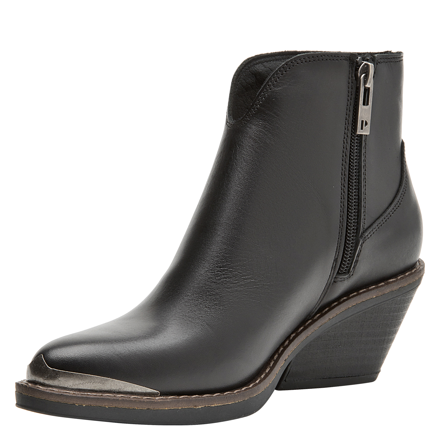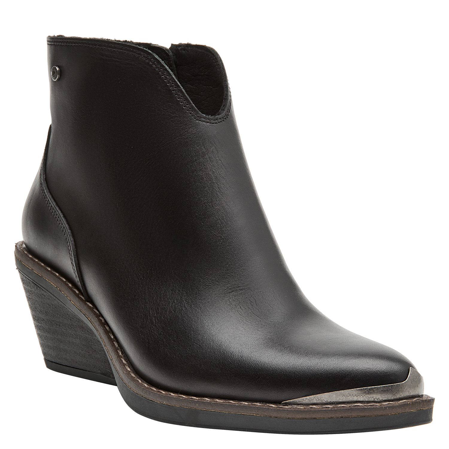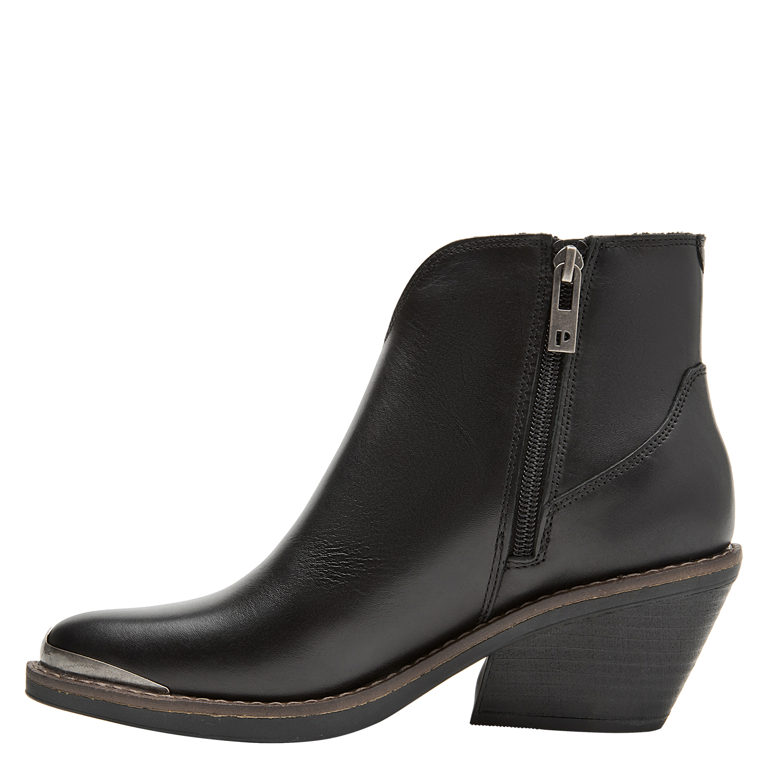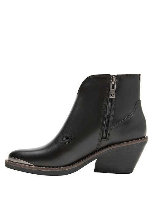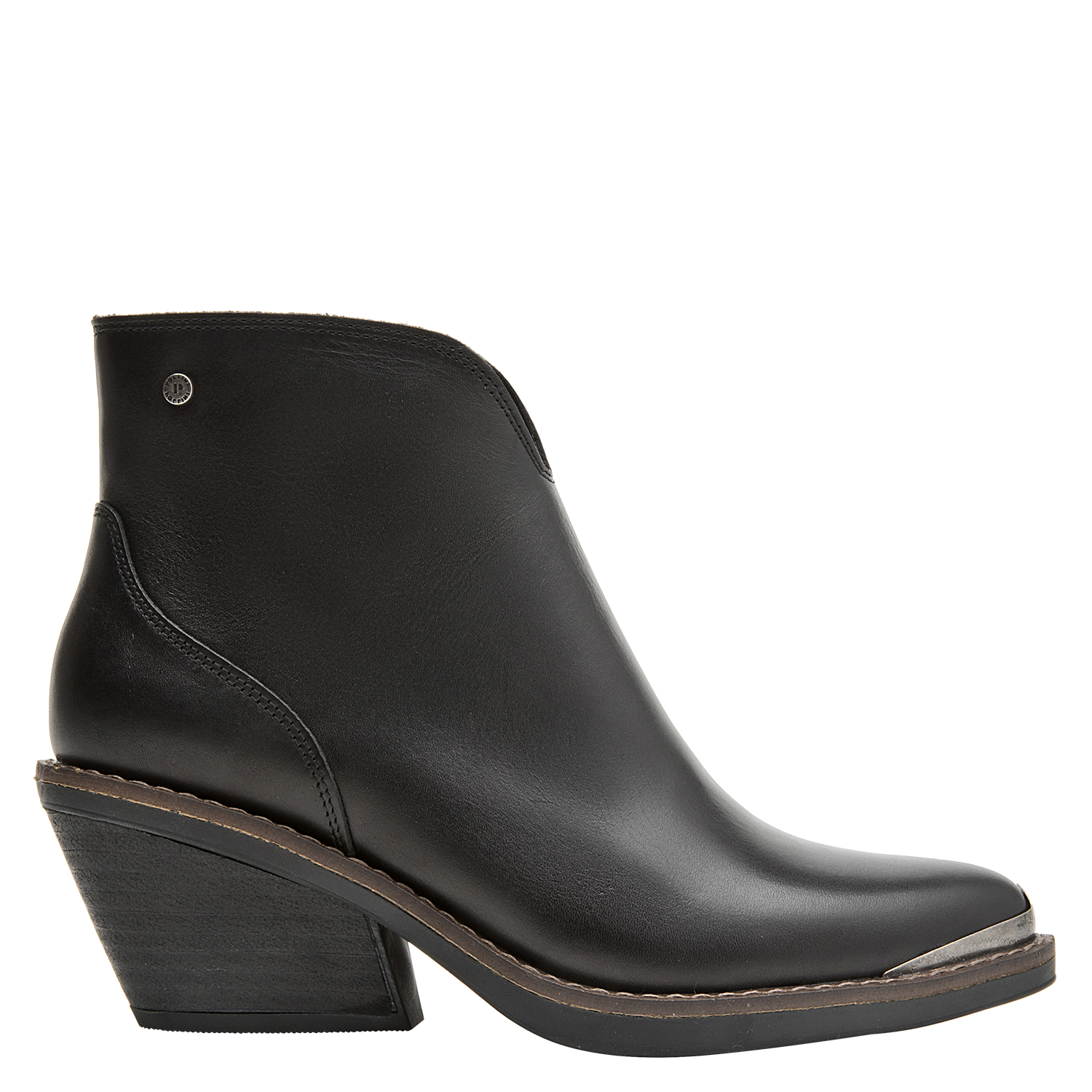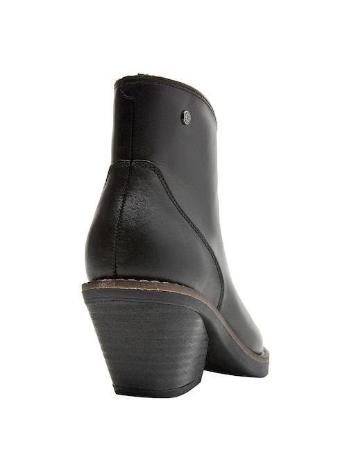 Con un diseño que celebra la feminidad y la elegancia contemporánea, estos botines de cuero negro para mujer son la absoluta definición de estilo. Su punta puntiaguda y el taco bloque de 6.5 cm aportan esa presencia deseada, mientras que la suavidad del cuero brinda una textura encantadora. La tendencia vanguardista se une a un acabado pulido para hacer de cada paso una declaración de moda. Combínalos con vestidos fluidos o jeans ajustados para un look chic y atractivo.