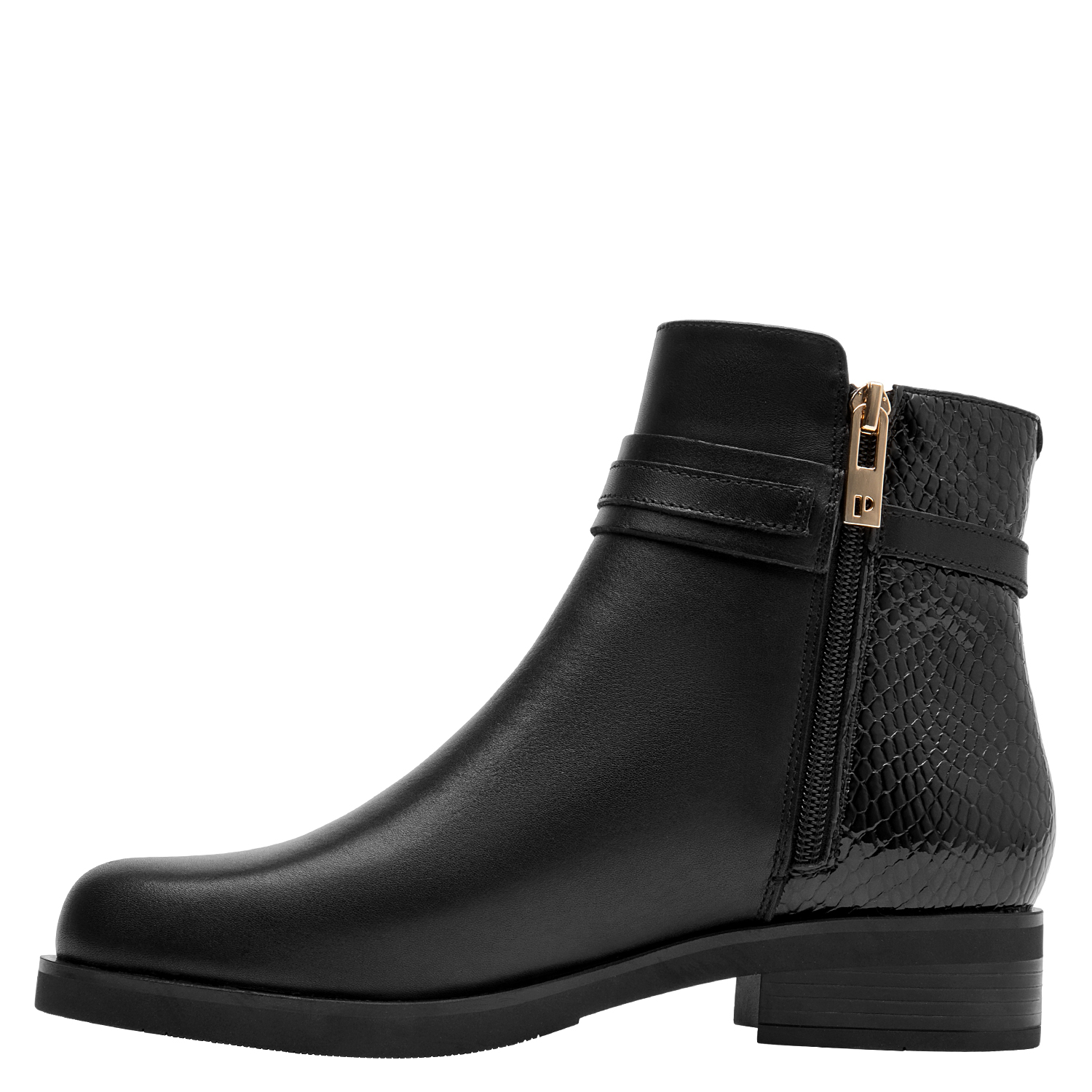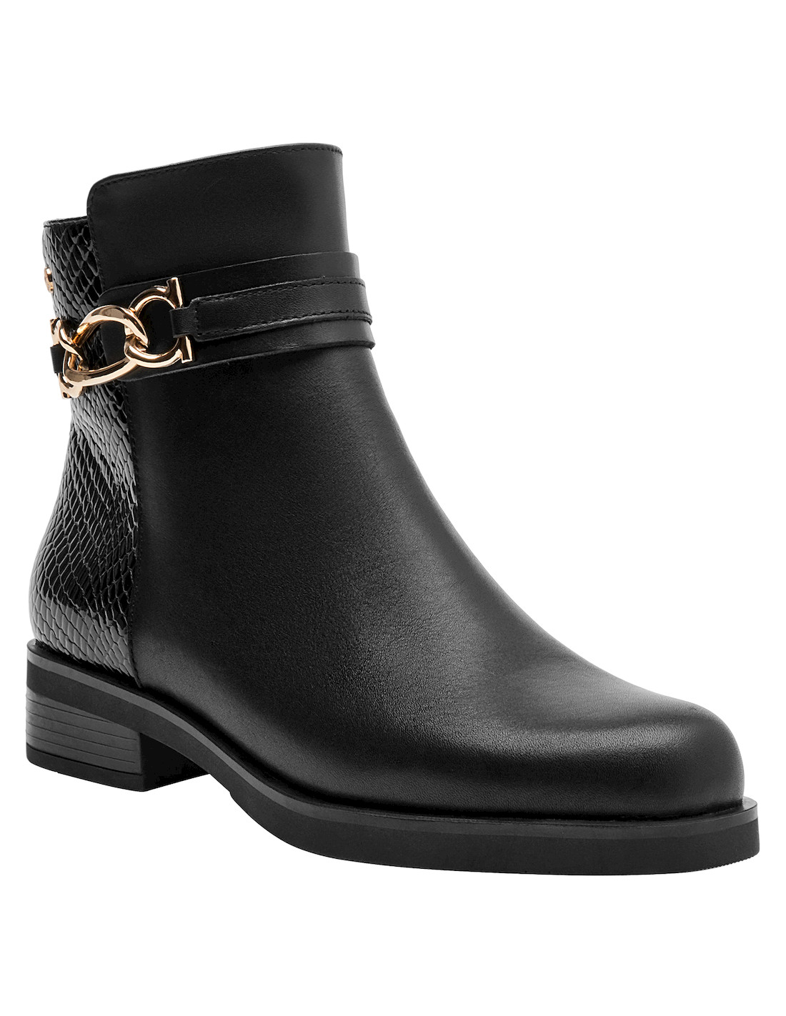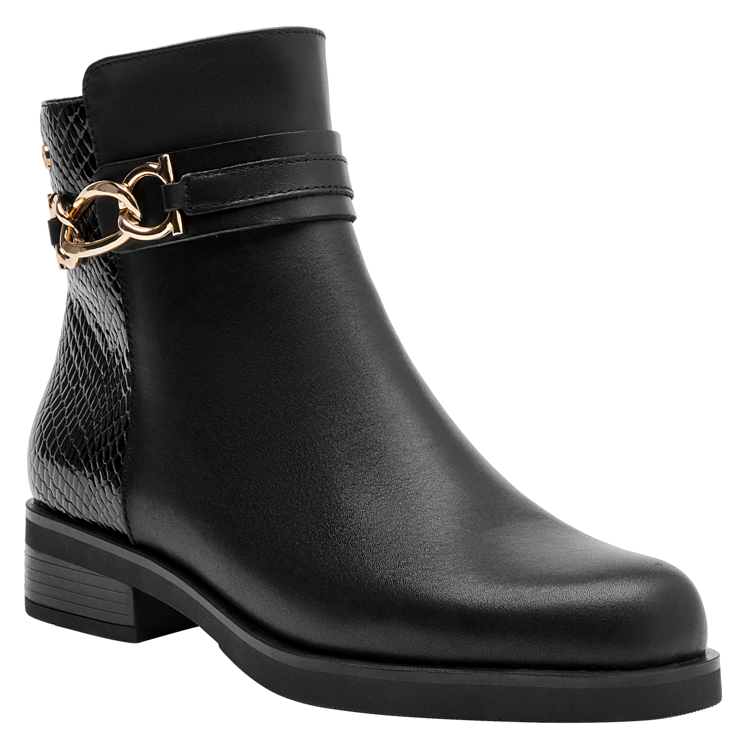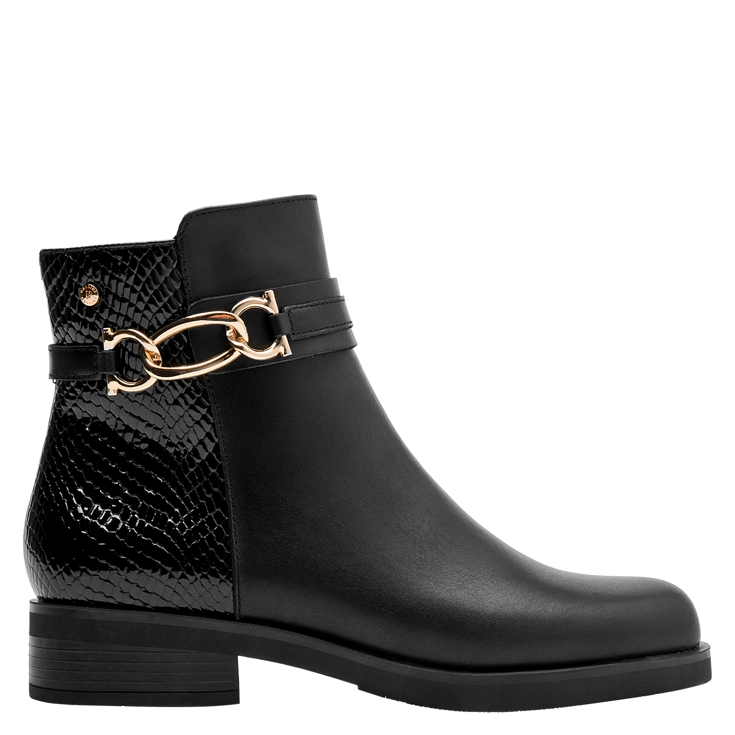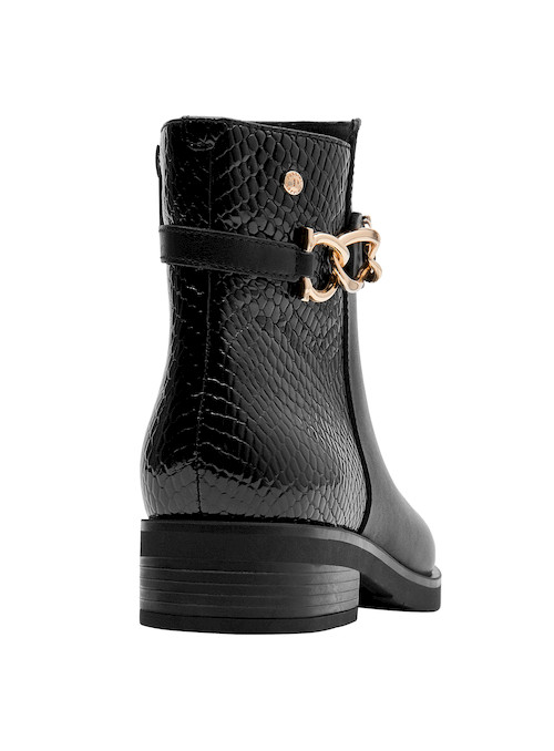 Estos elegantes botines de cuero negro son el must-have de la temporada. Con un acabado mate sofisticado y detalles en relieve que aportan un toque vanguardista, su diseño se completa con un taco bloque de 3.5 cm que asegura comodidad y estilo en cada paso. Perfectos para un look urbano, combinan con jeans ajustados y una blusa fluida o con un vestido chic para un toque más femenino. Atrévete a brillar con Pollini.