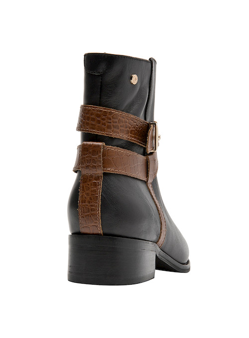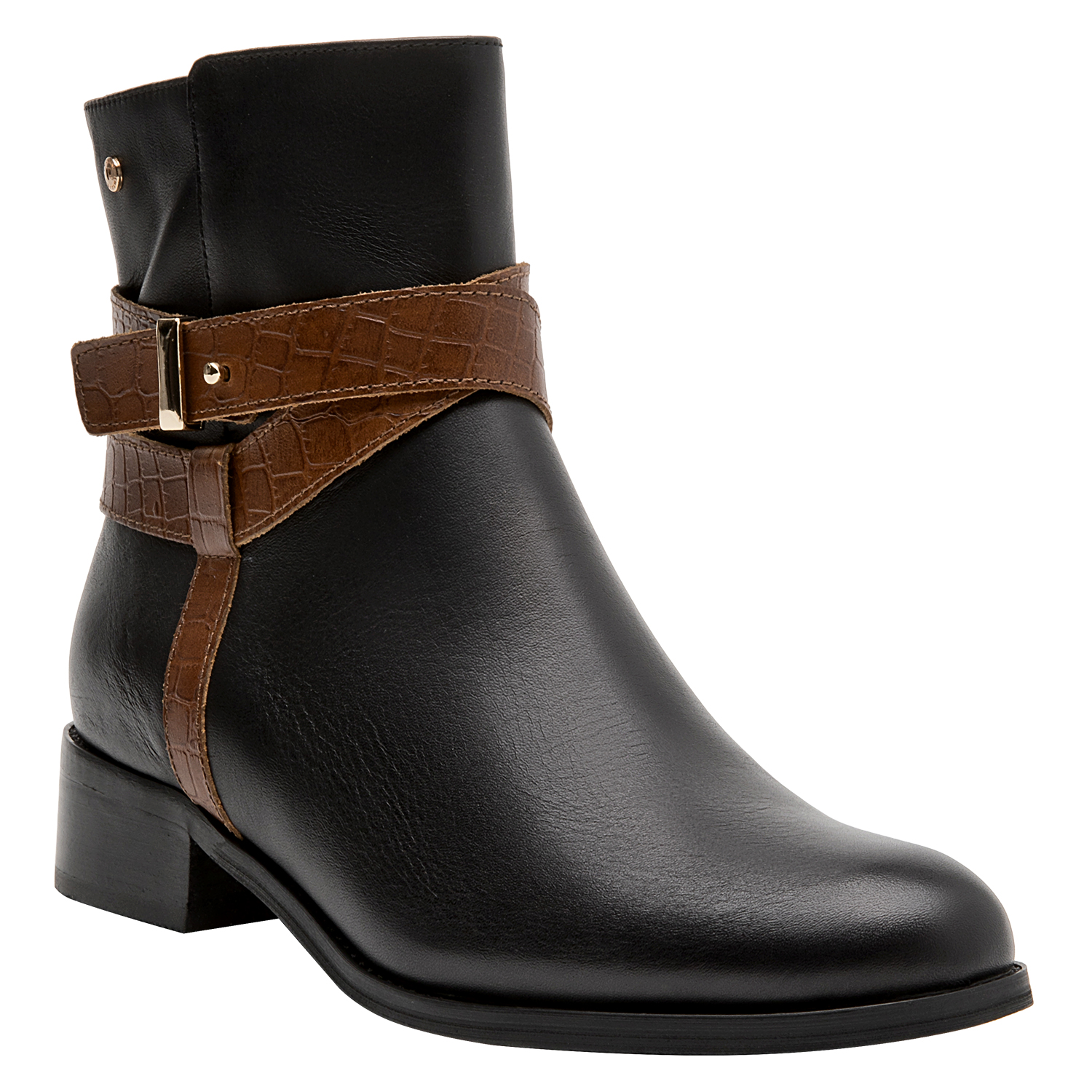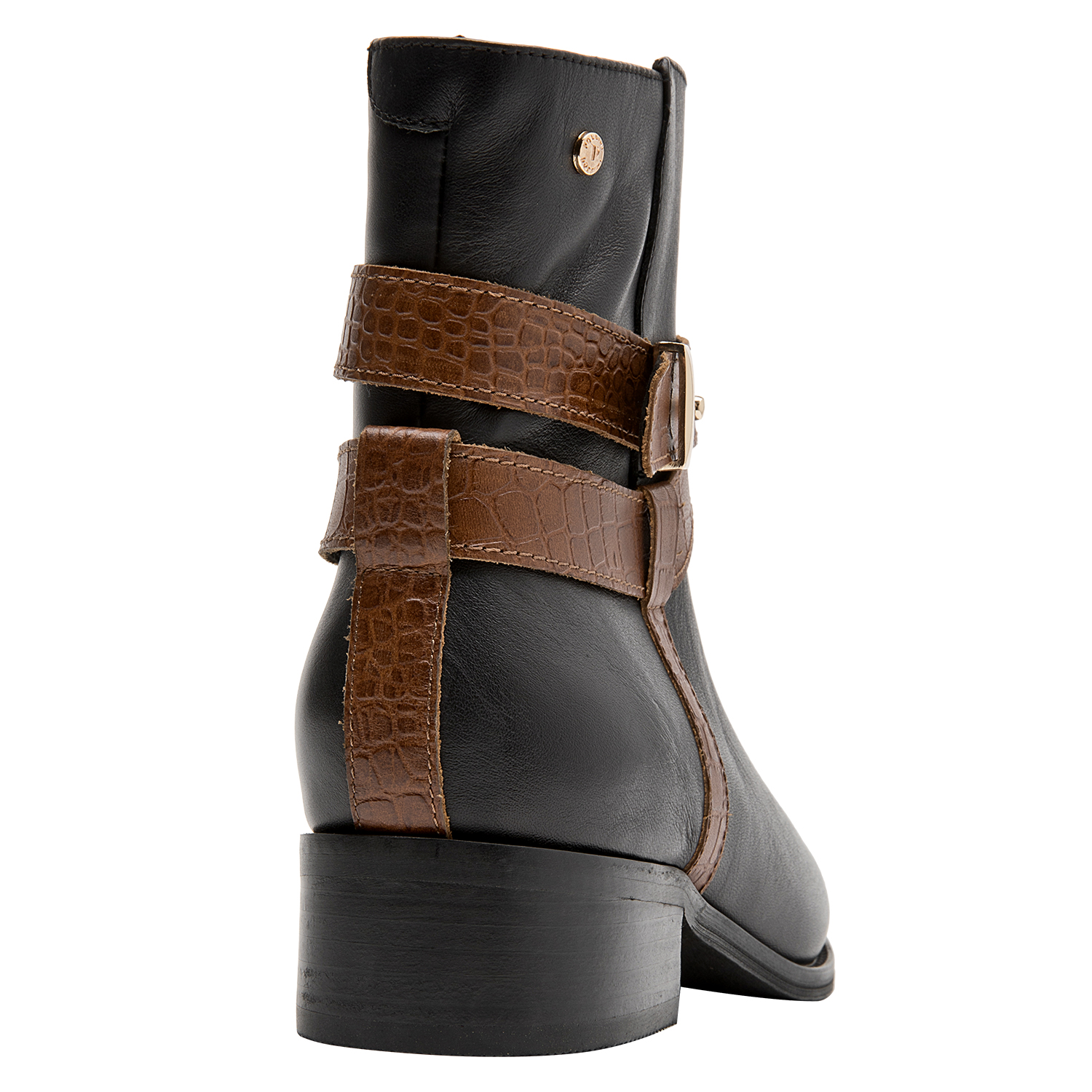 Descubre la elegancia de estos botines de cuero, diseñados para la mujer contemporánea que busca destacar. Con un acabado mate y un detalle de hebilla en imitación cocodrilo, estos botines no solo son vanguardistas, sino también muy versátiles. La altura de 4 cm en el taco bloque combina comodidad y estilo, mientras que la punta redonda aporta un toque moderno. Combínalos con un vestido midi o unos jeans ajustados para un look que irradie seguridad y feminidad.