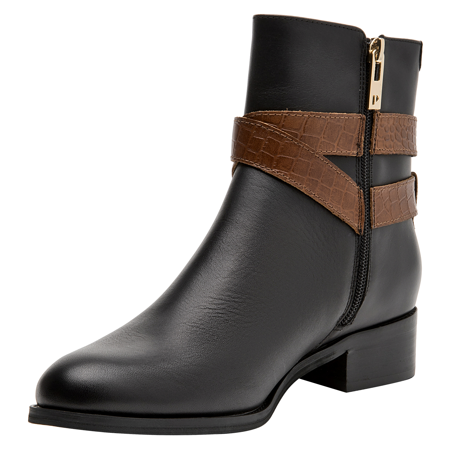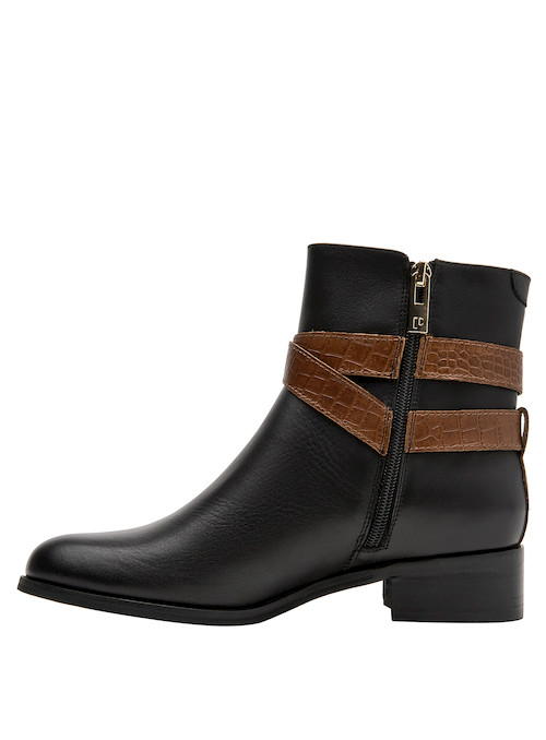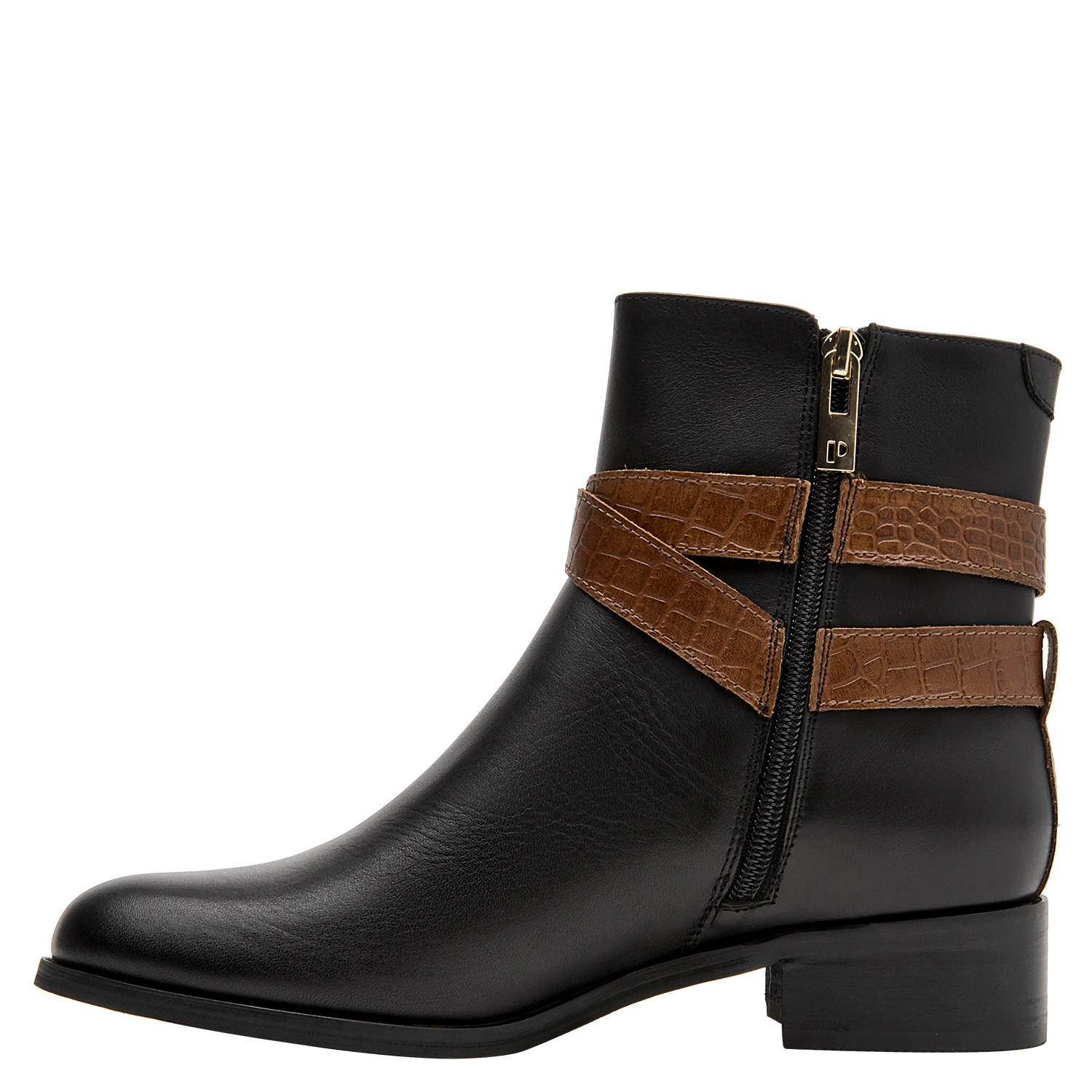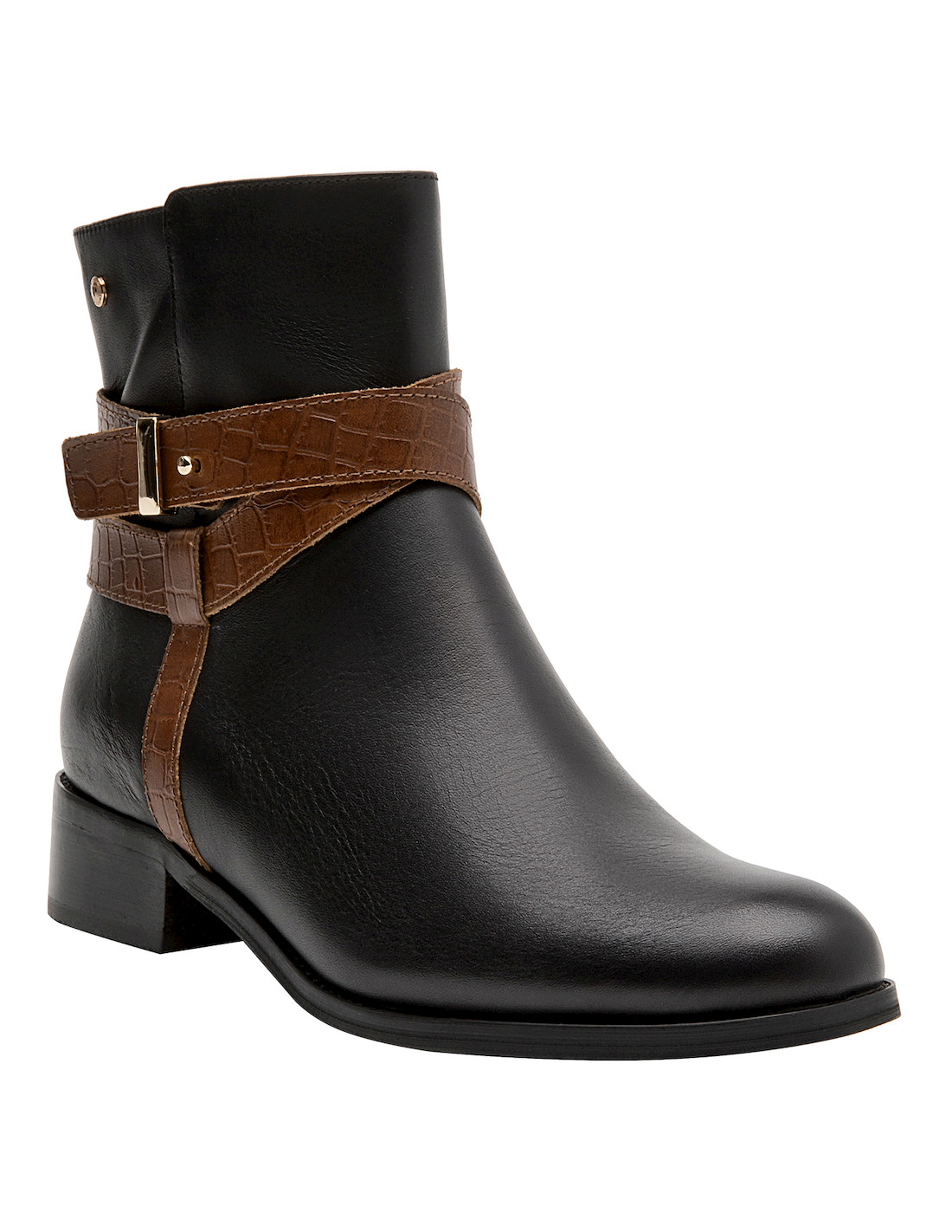 Descubre la elegancia de estos botines de cuero, diseñados para la mujer contemporánea que busca destacar. Con un acabado mate y un detalle de hebilla en imitación cocodrilo, estos botines no solo son vanguardistas, sino también muy versátiles. La altura de 4 cm en el taco bloque combina comodidad y estilo, mientras que la punta redonda aporta un toque moderno. Combínalos con un vestido midi o unos jeans ajustados para un look que irradie seguridad y feminidad.