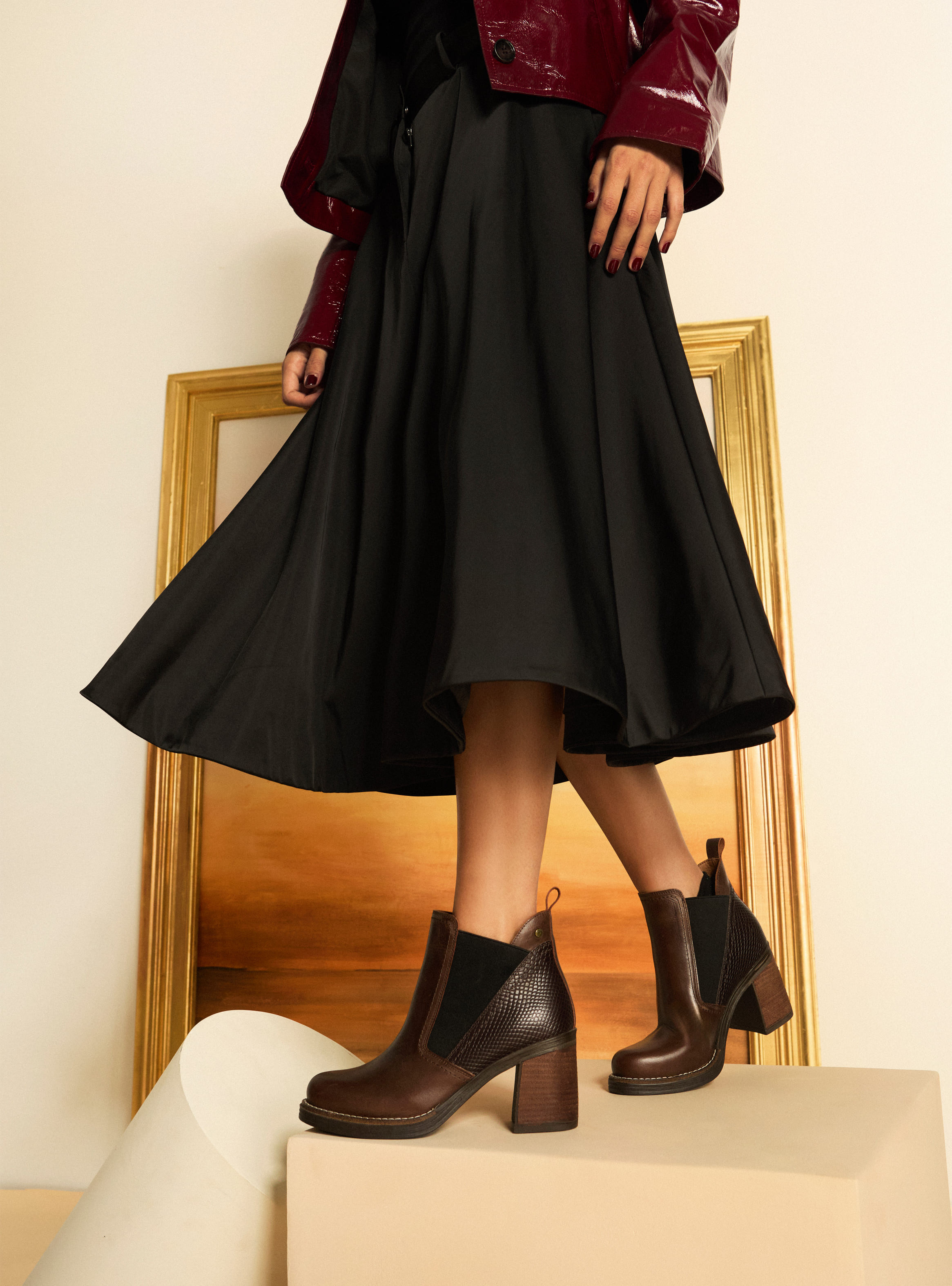 Atrévete a destacar con este elegante botín de cuero en un sofisticado color marrón. Su diseño con taco bloque de 9 cm proporciona una altura ideal sin sacrificar la comodidad. La textura suave del cuero se combina con paneles laterales elásticos, creando un estilo contemporáneo y refinado. Este botín es perfecto para cualquier ocasión. Combínalo con un vestido midi o unos pantalones ajustados para lograr un look atractivo y lleno de personalidad.