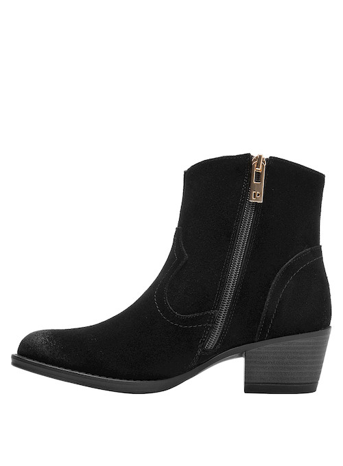 Los botines de cuero negro de Pollini son la elección perfecta para la mujer que busca un look vanguardista y sofisticado. Con un elegante acabado en gamuza, presentan un taco bloque de 5 cm que brinda estilo y comodidad. Su diseño contemporáneo, con detalles de costura sutil, los hace versátiles para cualquier ocasión. Combínalos con un vestido midi para un toque chic o con jeans de corte ajustado para un look más casual y moderno. ¡Haz que cada paso sea un reflejo de tu actitud segura y actual!