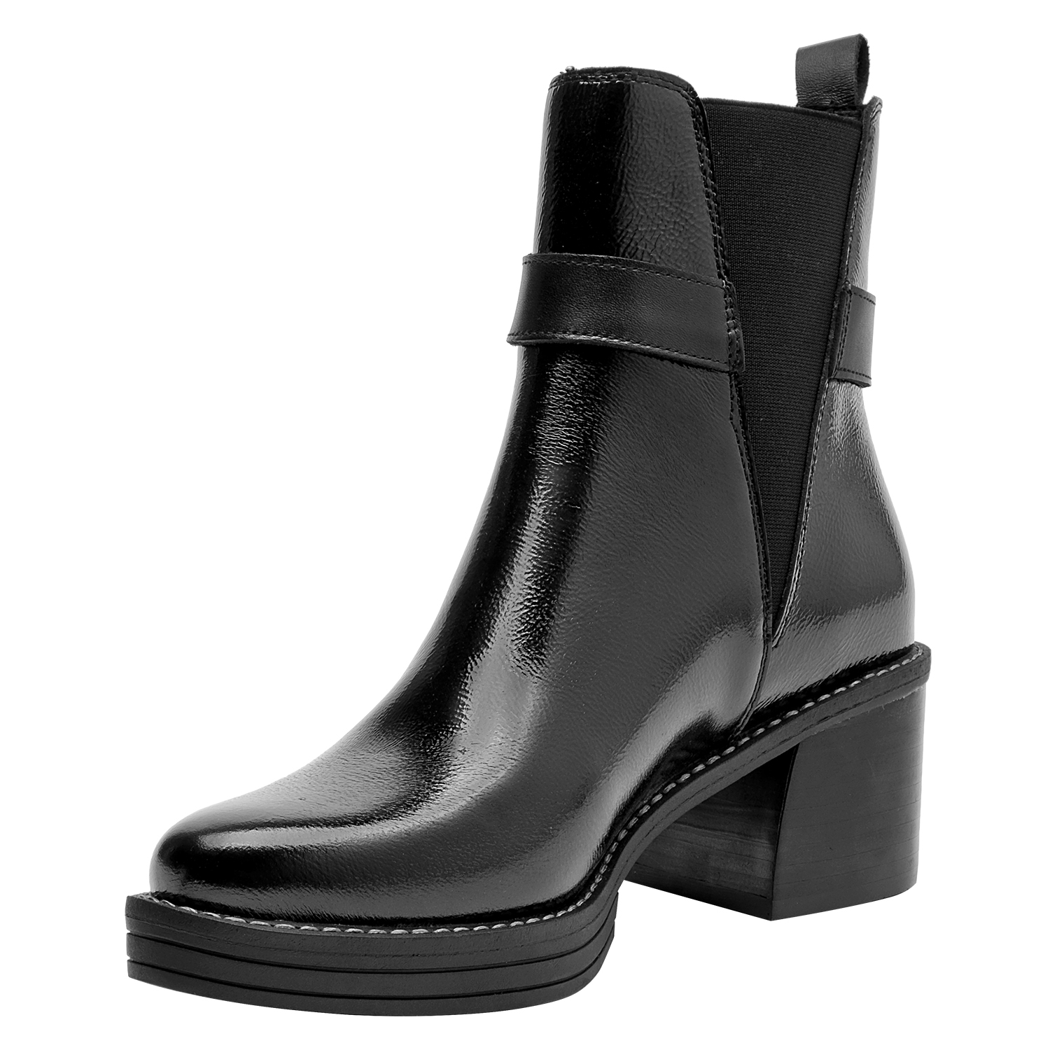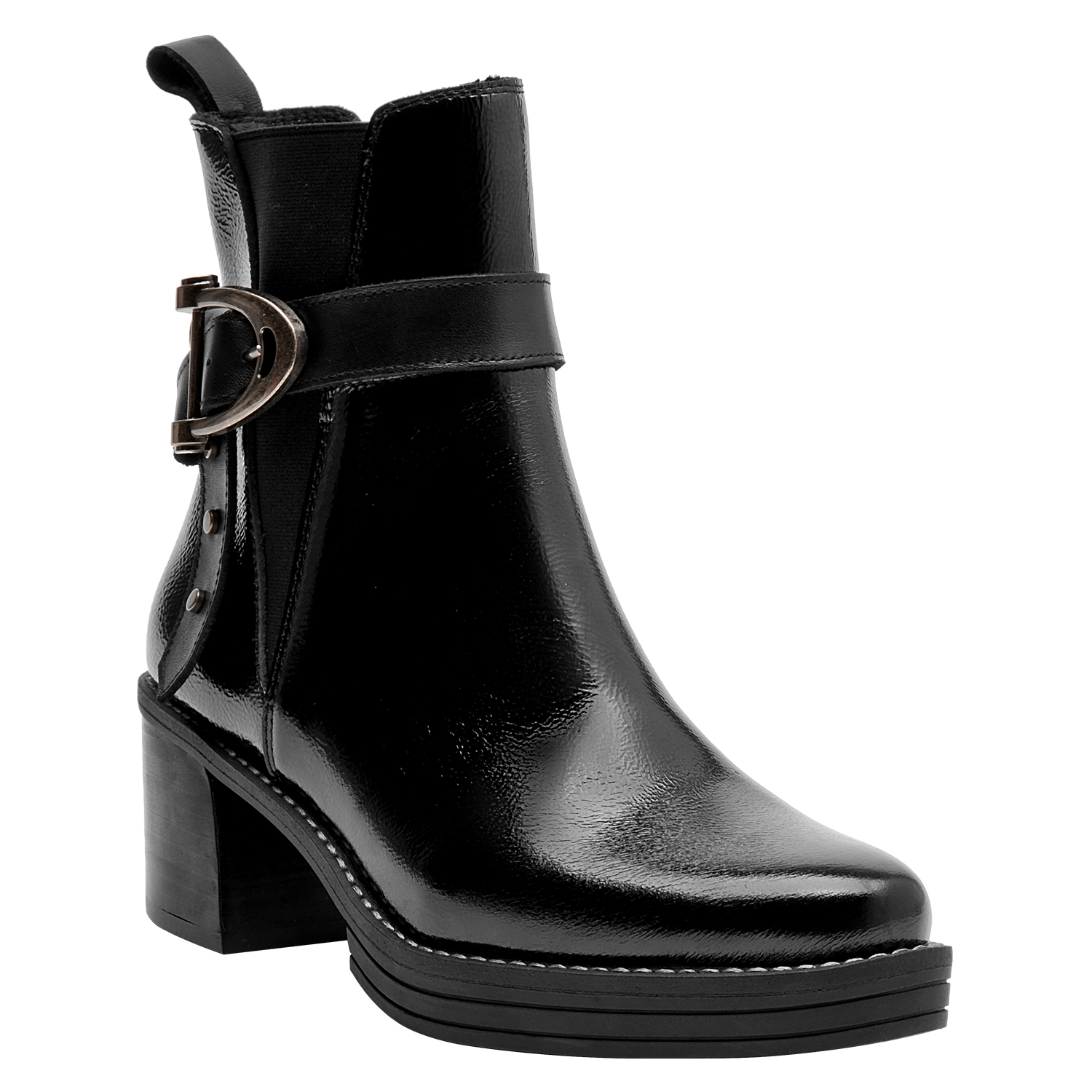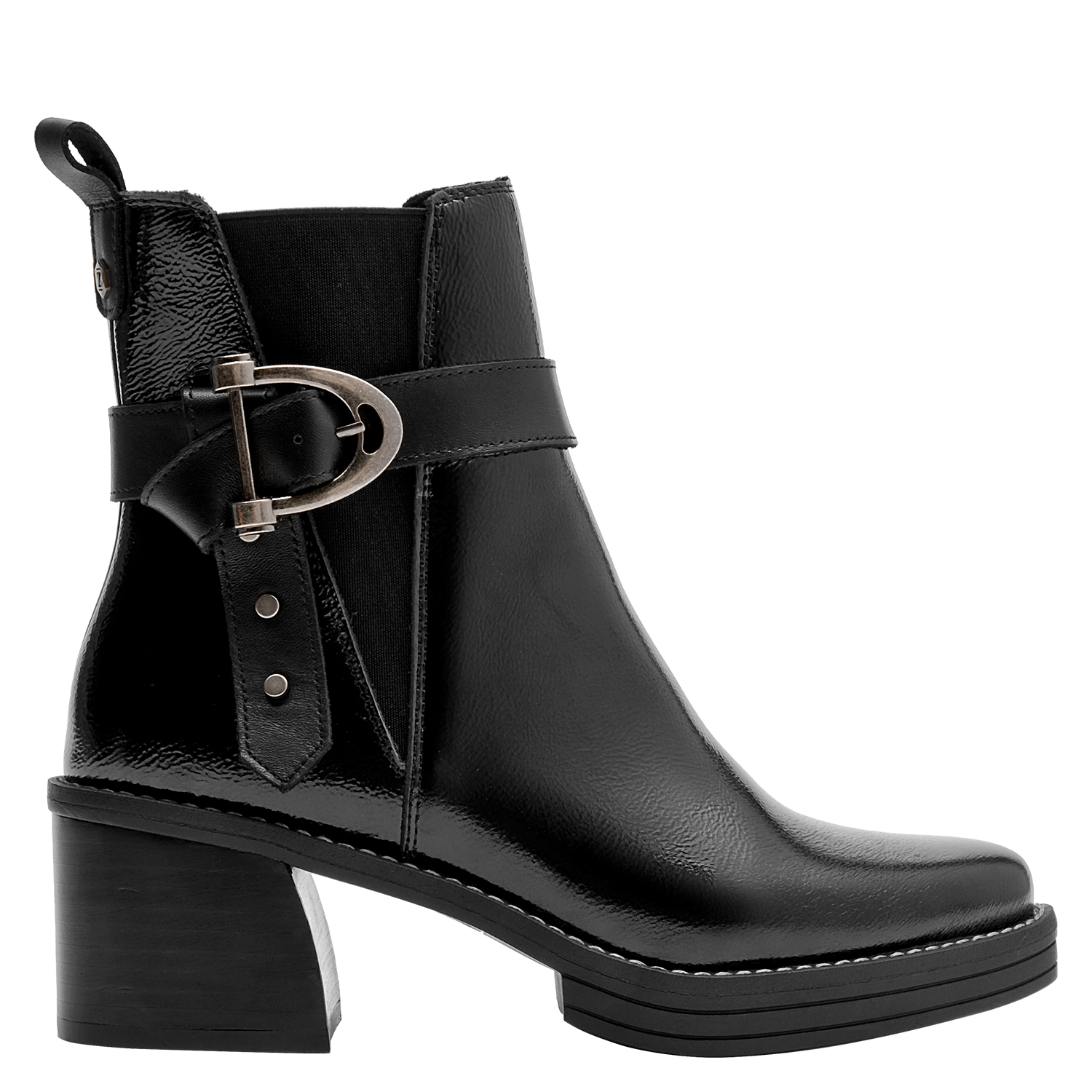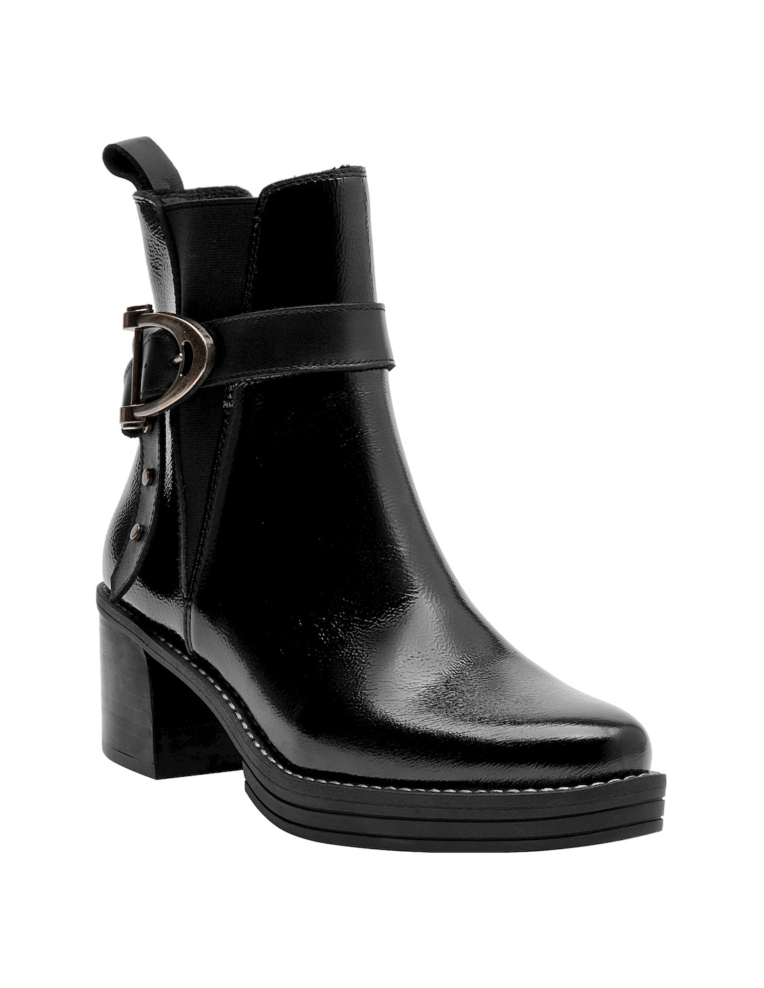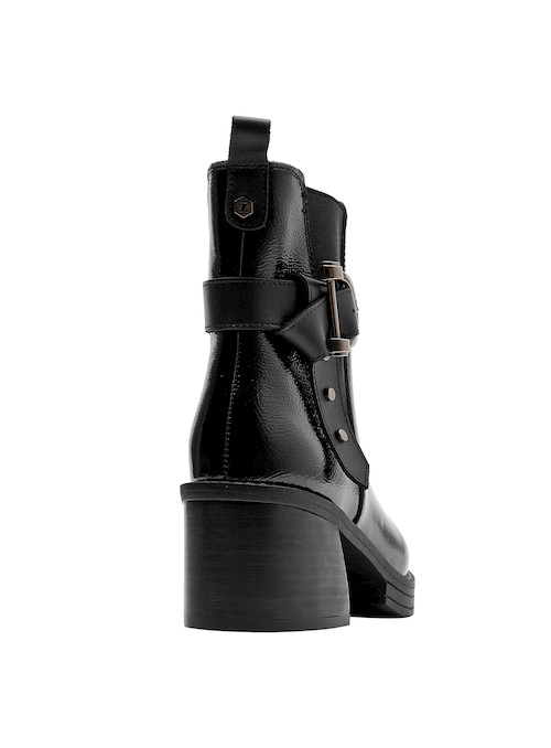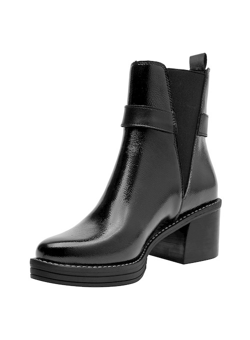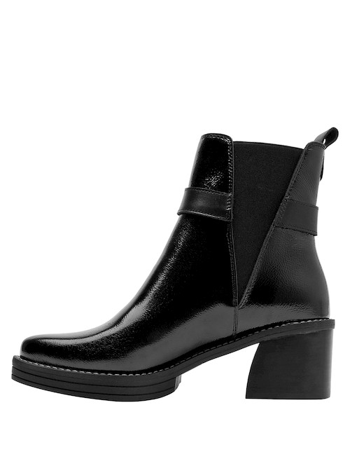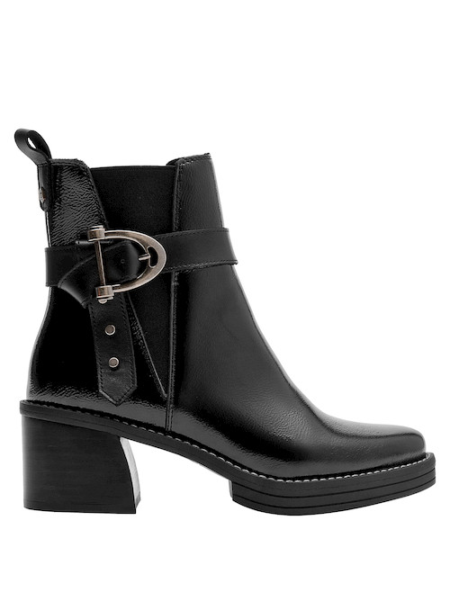 Impón tu estilo con este botín de cuero negro de Zappa. Con un diseño urbano y audaz, su punta puntiaguda y tacón bloque de 6.5 cm marcan una silueta sofisticada y poderosa. Los sutiles detalles metálicos aportan un toque vanguardista, mientras que el acabado brillante resalta su carácter moderno. Combínalo con un vestido midi o unos jeans ajustados para un look impactante que no pasará desapercibido.