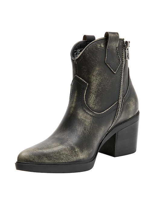 Destaca con este impresionante botín de cuero multicolor, que combina un diseño puntiagudo y un taco bloque de 7 cm para elevar tu look. Inspirado en la moda contemporánea, su acabado metálico añade un toque audaz y sofisticado. Cada paso resalta tu carácter vanguardista, mientras que sus detalles únicos garantizan un impacto visual inigualable. Combina con un vestido ligero o unos jeans ajustados para un estilo que no pasará desapercibido. ¡Es un verdadero sello propio de Zappa!