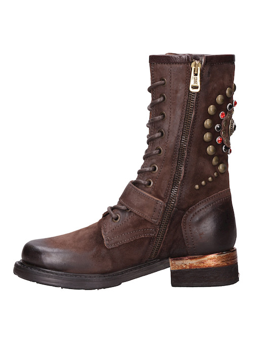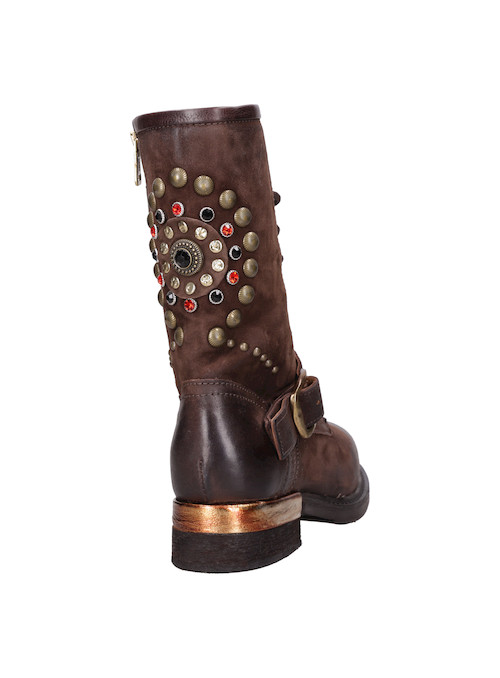 Descubre la esencia rebelde de los botines AS98 en un profundo color moro que destaca con su textura de cuero italiano suave. Este modelo de estilo biker combina un diseño de caña alta con detalles metálicos, como las tachas en la parte posterior, que aportan carácter y un look inconfundible. Con un taco bloque de 3.5 cm y una puntera redonda, son perfectos para marcar tendencias en cada paso. Combínalos con jeans ajustados o una falda corta y un chaquetón de cuero para un resultado audaz.