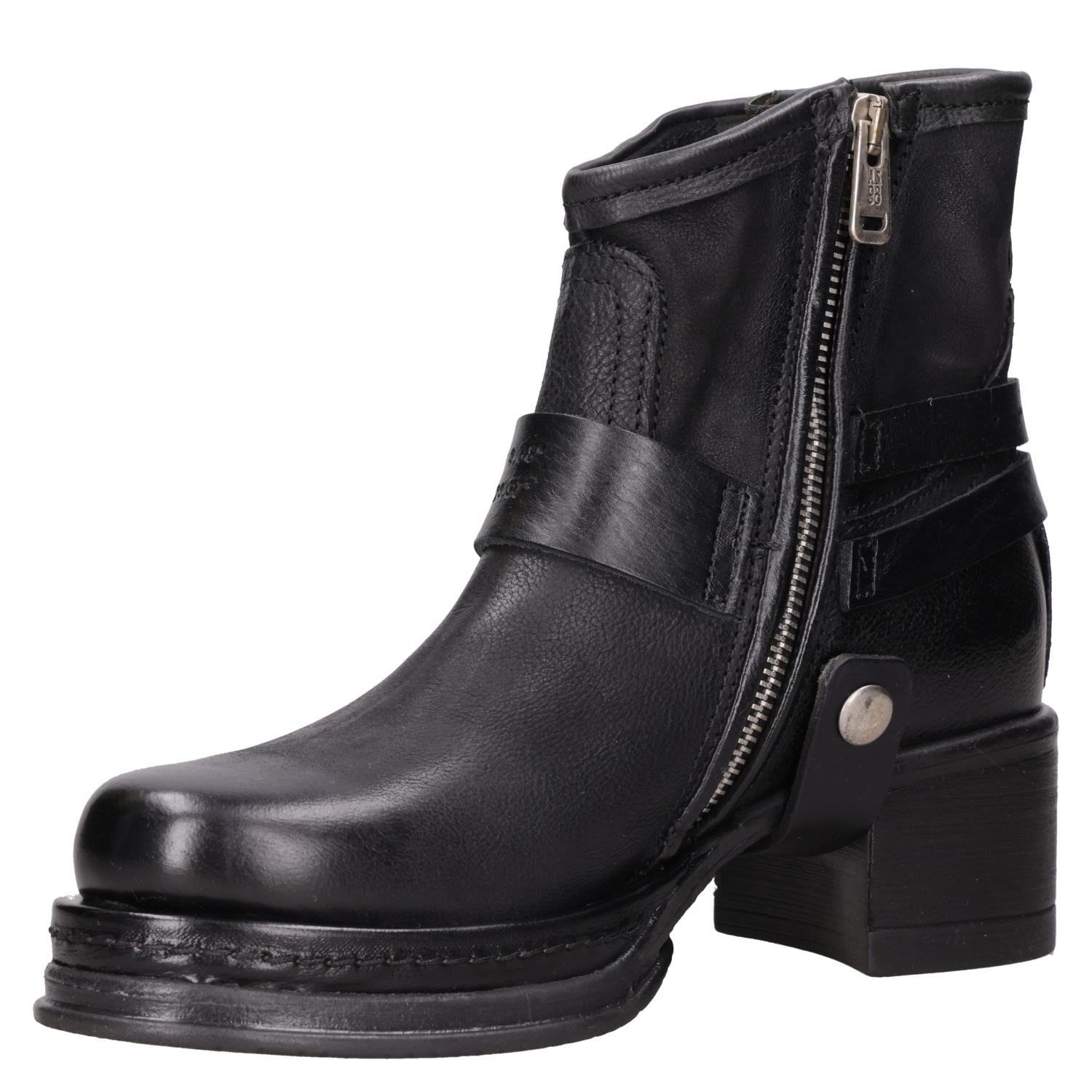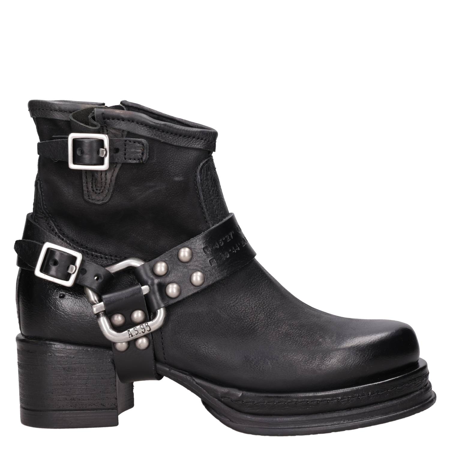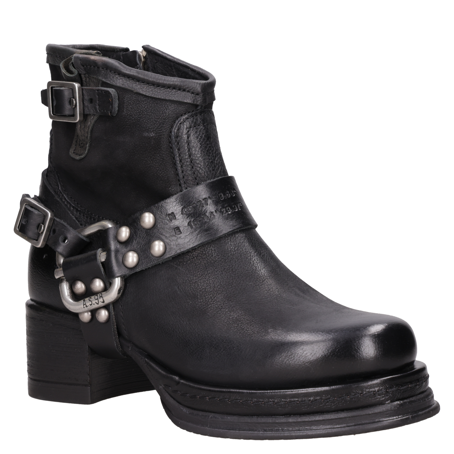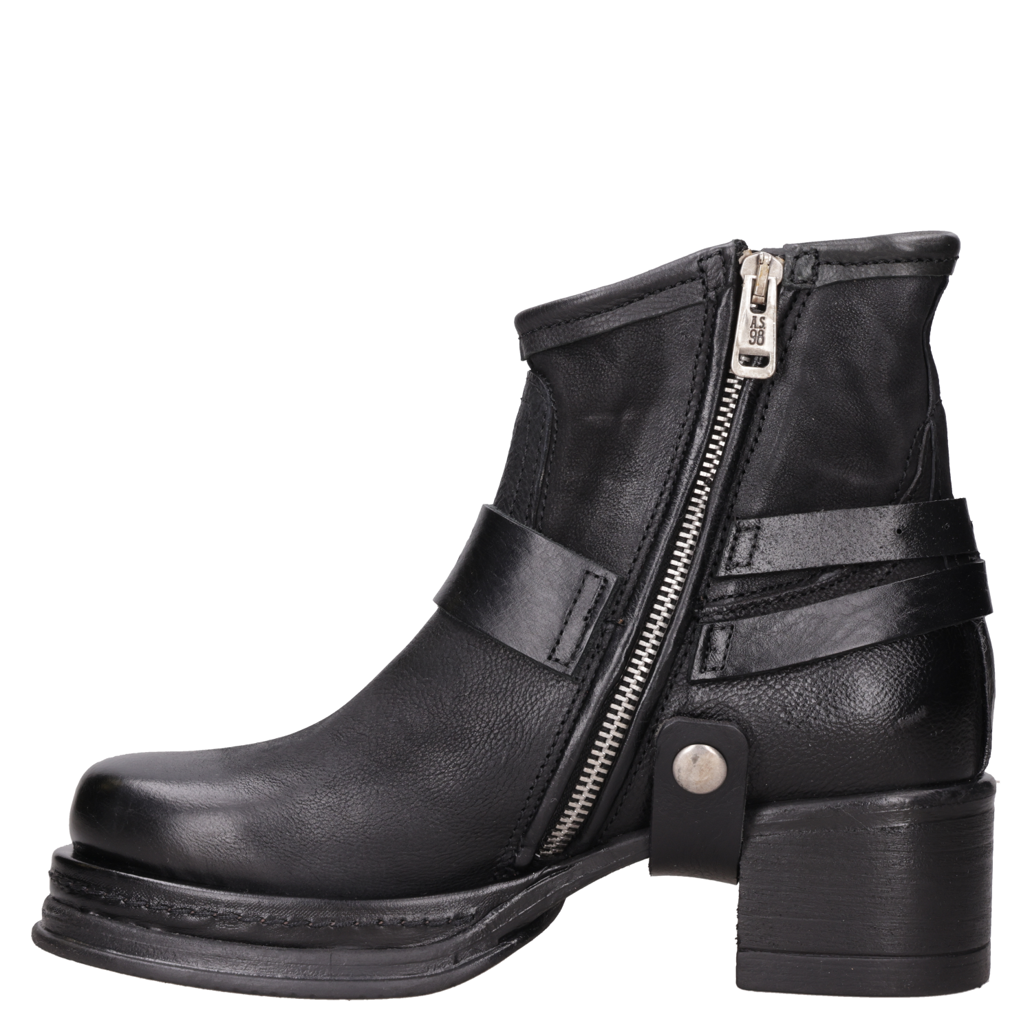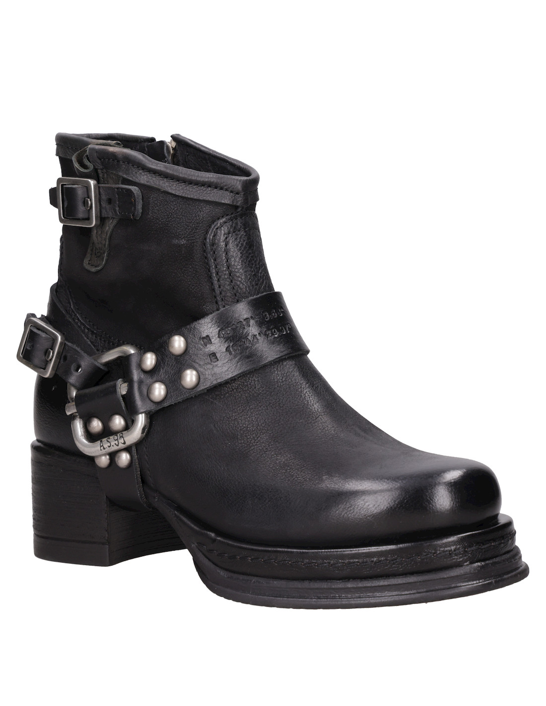 Descubre el audaz Botín de Cuero Negro de AS98, una pieza esencial que combina un diseño vanguardista con detalles metálicos únicos. La textura suave del cuero italiano y sus acabados brillantes realzan su estética urbana y moderna, mientras que la altura de su taco bloque de 5.5 cm añade un toque de elegancia y confort. Este botín es ideal para combinar con jeans ajustados o una falda de cuero, creando un look protagonista que desafía lo convencional.