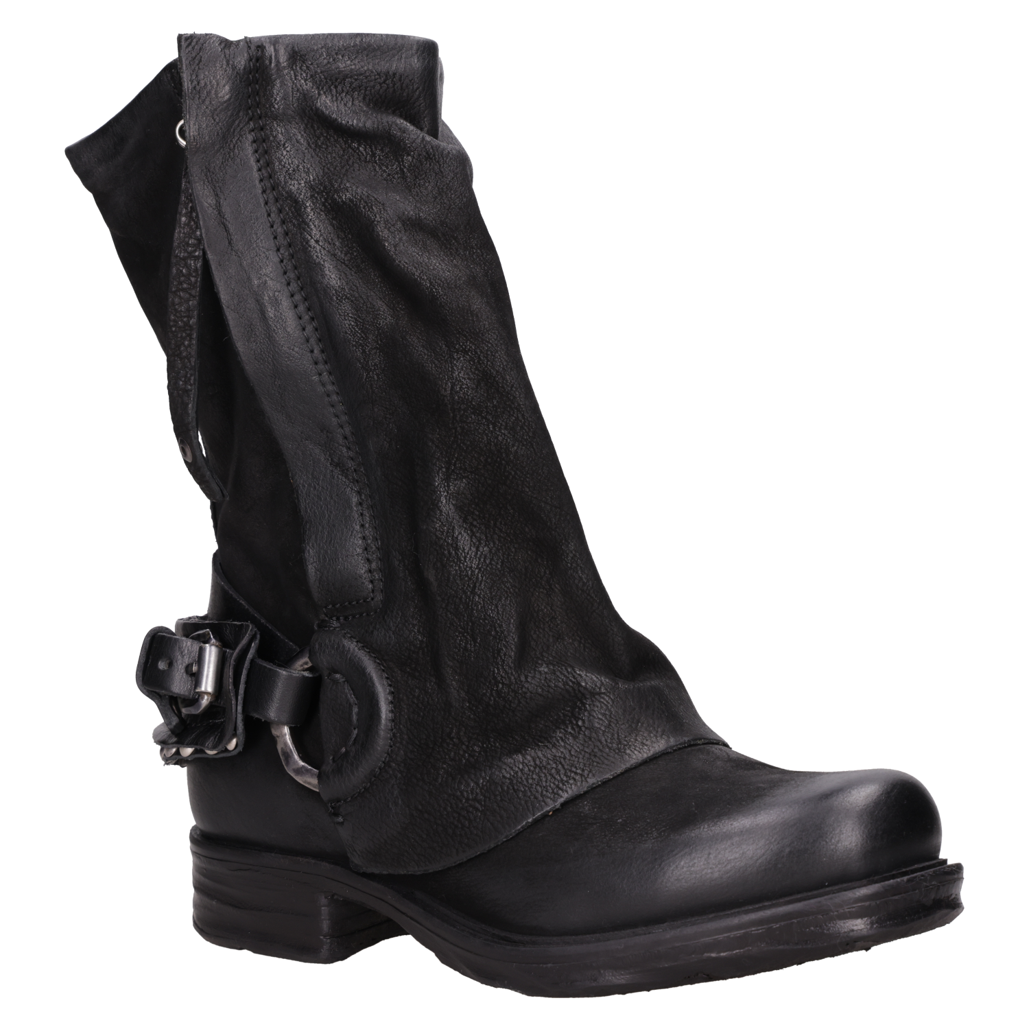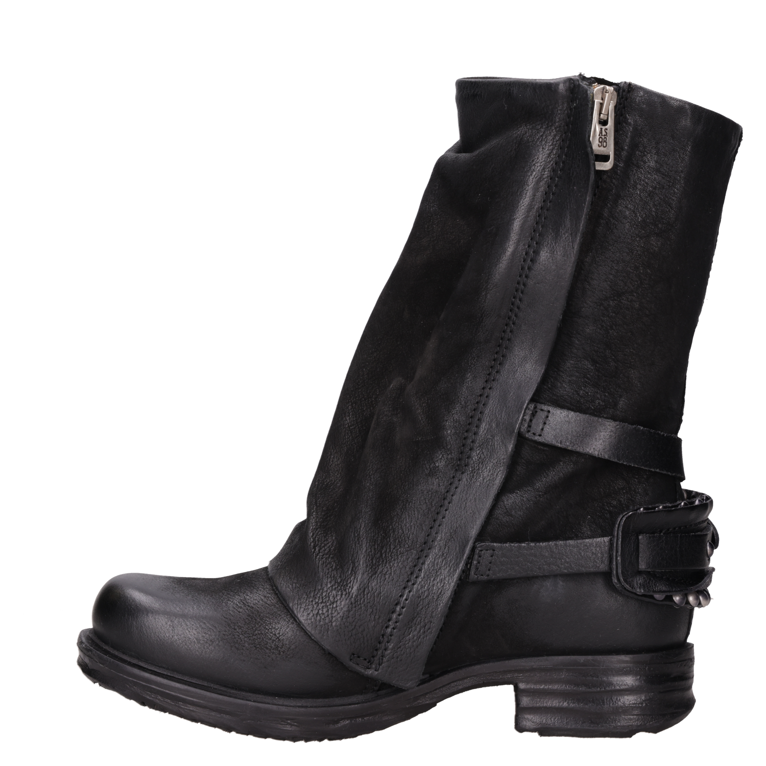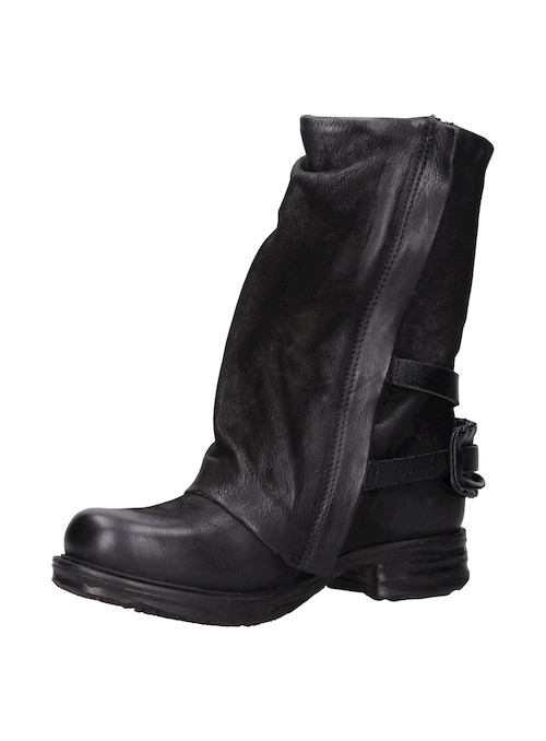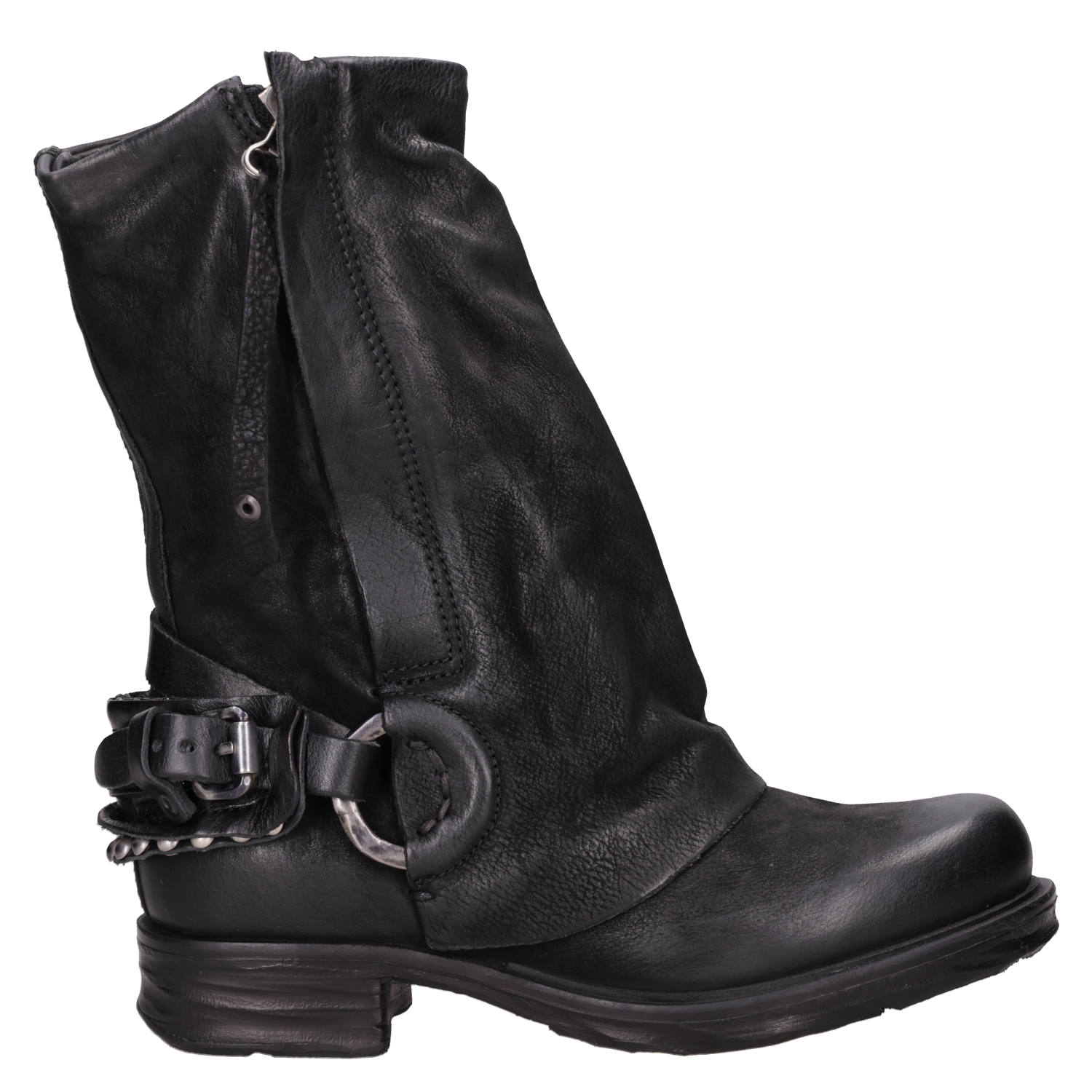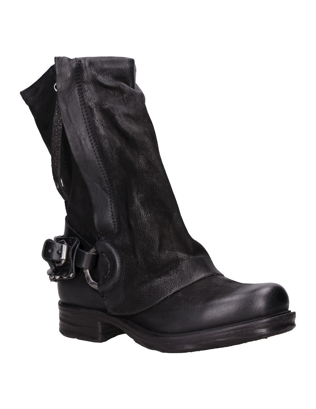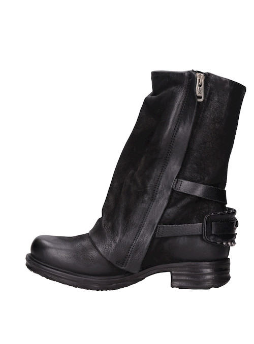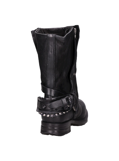 Descubre la audacia de nuestro botín negro, confeccionado en suave cuero italiano, que agrega un toque rockero a tu estilo. Con un elegante diseño de punta redonda y un llamativo taco bloque de 3 cm, este modelo no solo impone presencia, sino que también garantiza comodidad. Los detalles metálicos y la textura distintiva aportan un carácter único y moderno. Combínalo con un vestido ligero o tus jeans favoritos y una camiseta de aire urbano para un look arriesgado y atractivo.