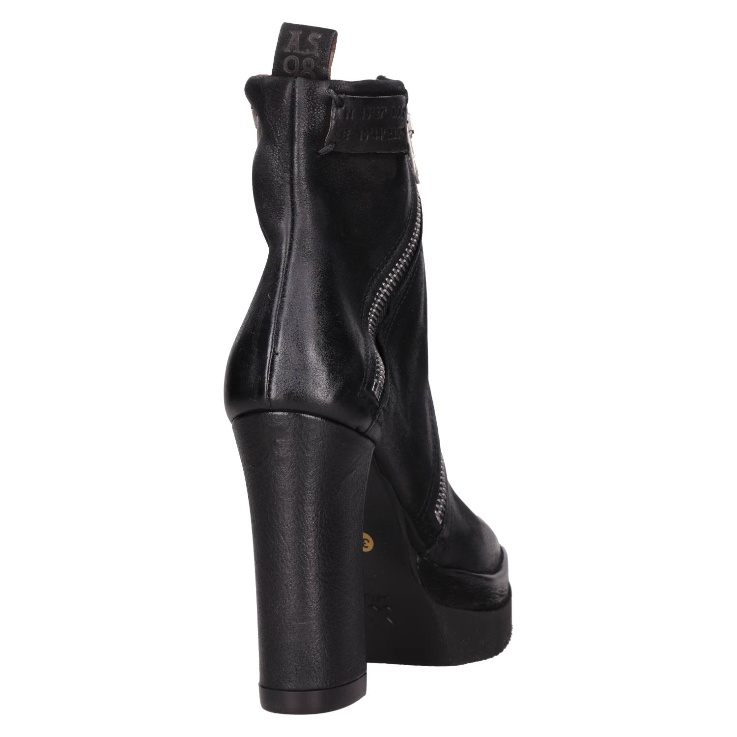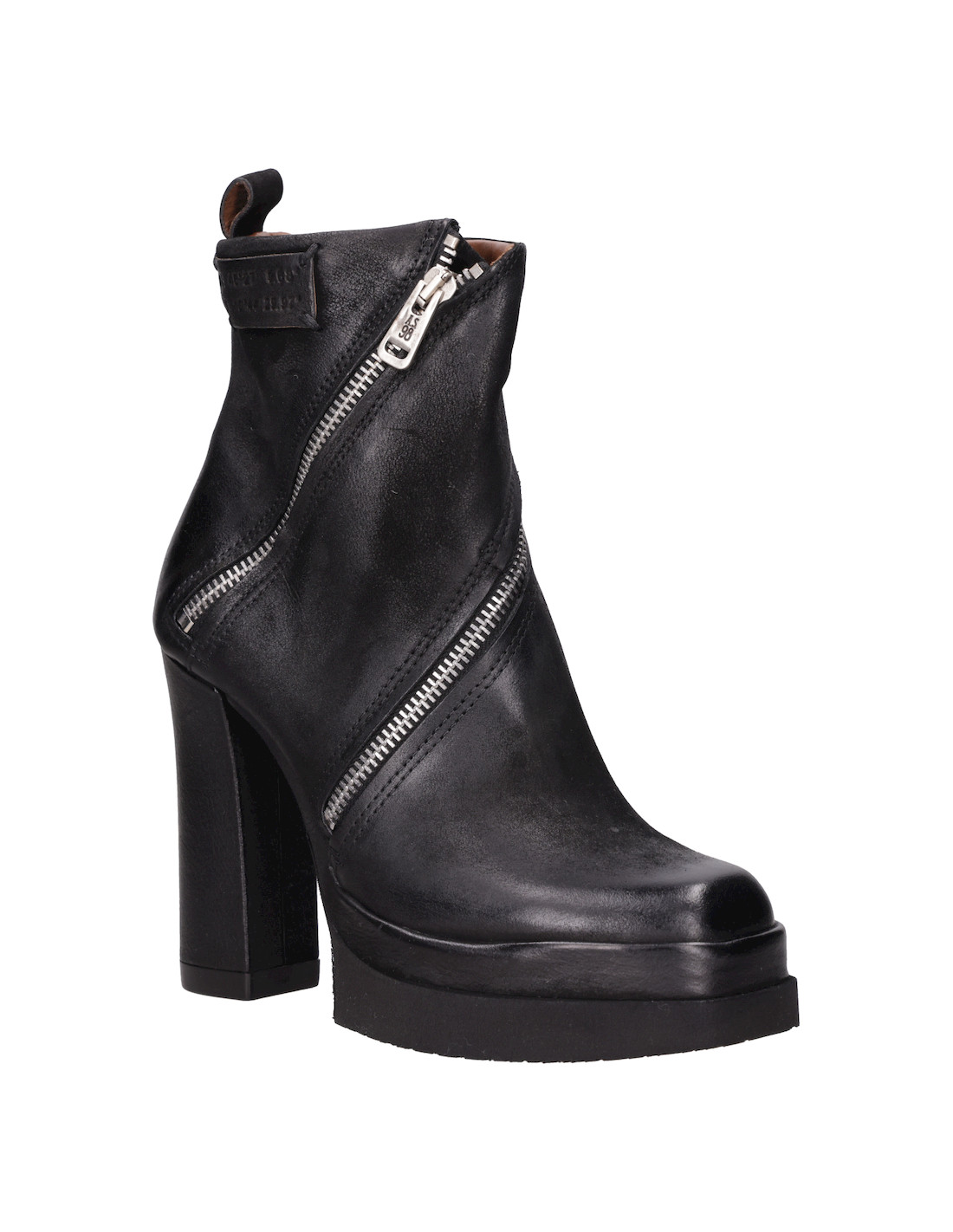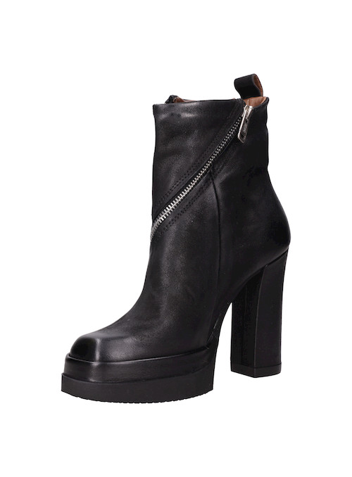 Da un paso hacia un estilo vanguardista con este botín negro de cuero de AS98. Con su taco bloque de 11.5 cm y detalles de cremallera metálica, este calzado refleja una actitud audaz y disruptiva. El acabado suave y brillante del cuero italiano resalta la modernidad de un diseño que impone moda en cada paso. Combínalo con un vestido ajustado o unos jeans desgastados para un look que captura todas las miradas.