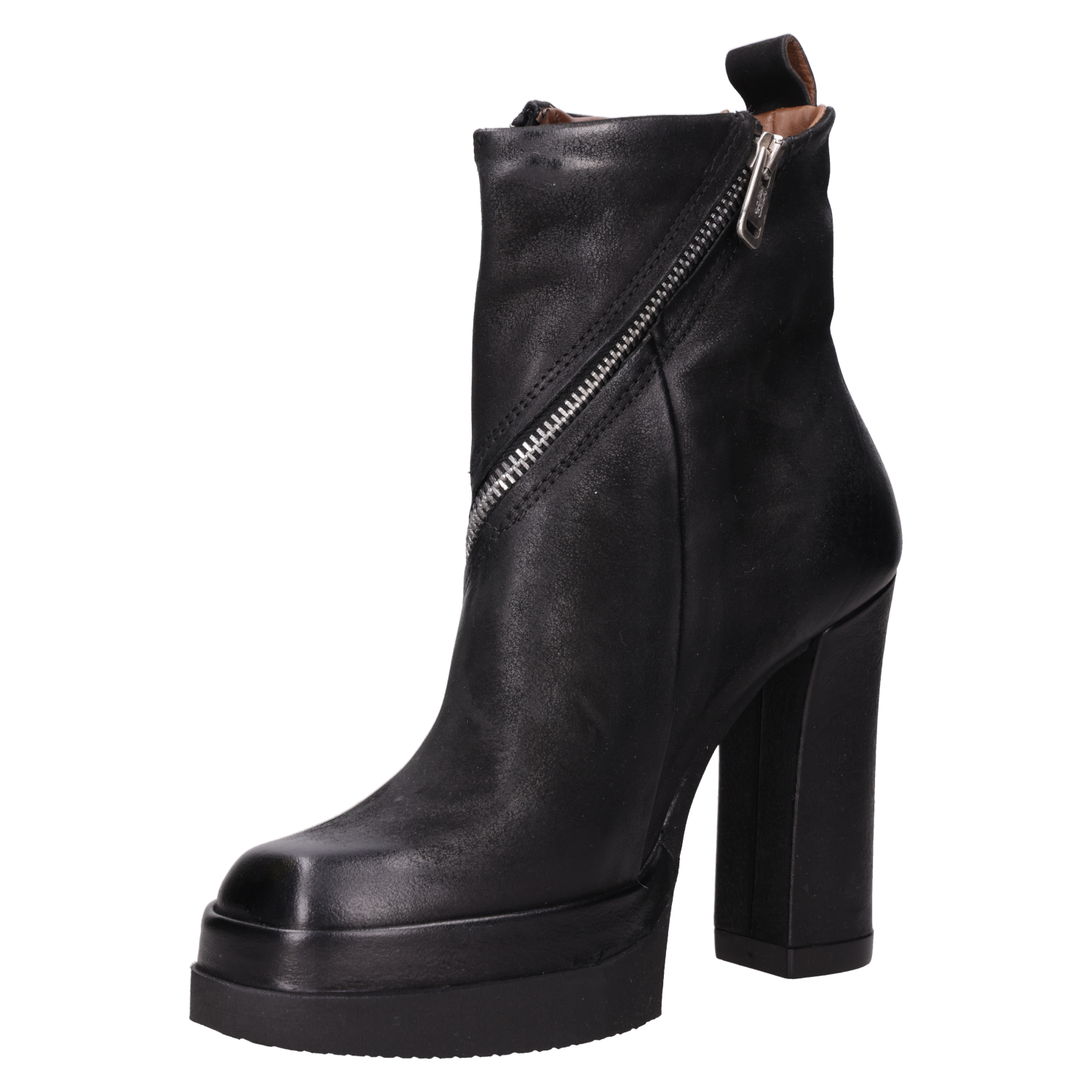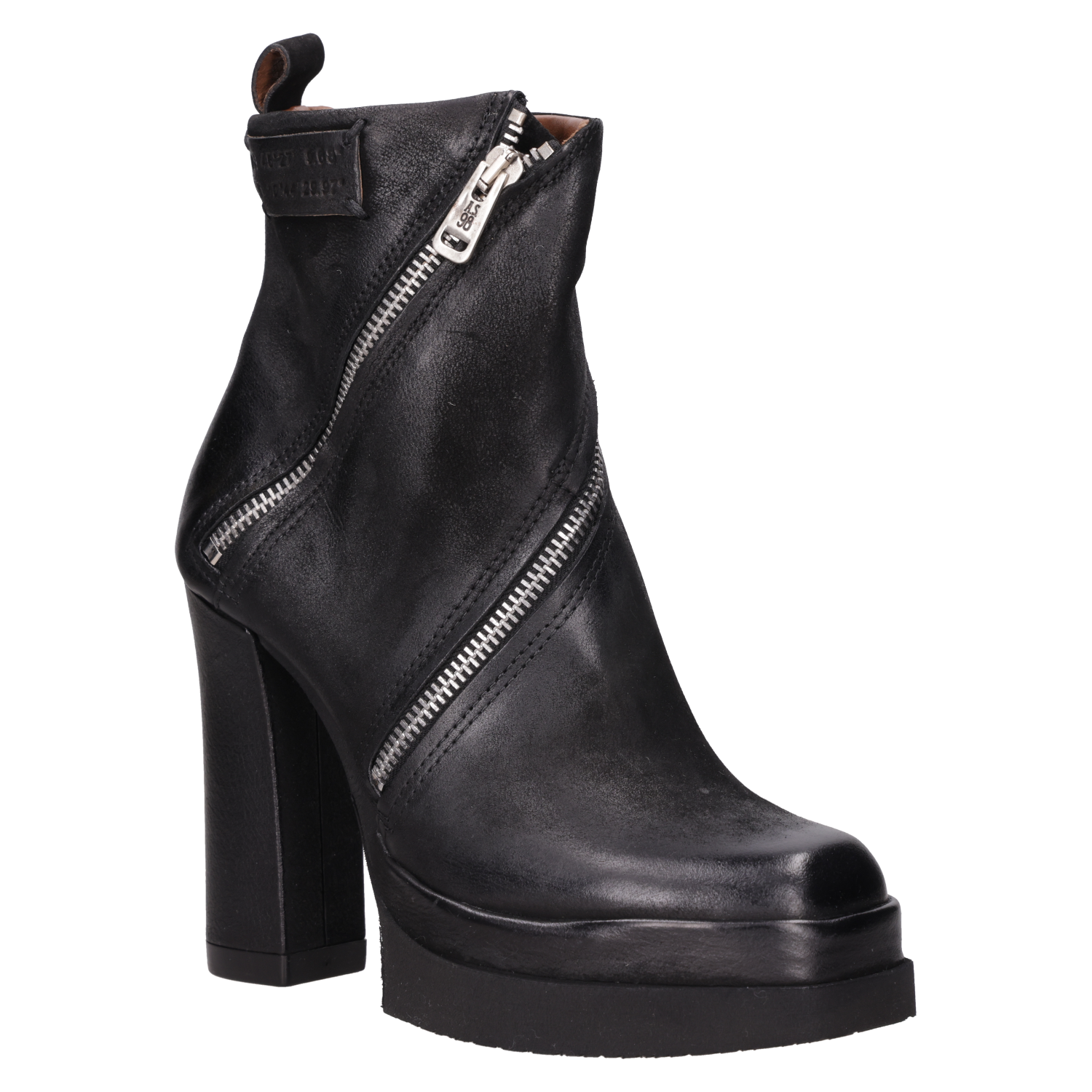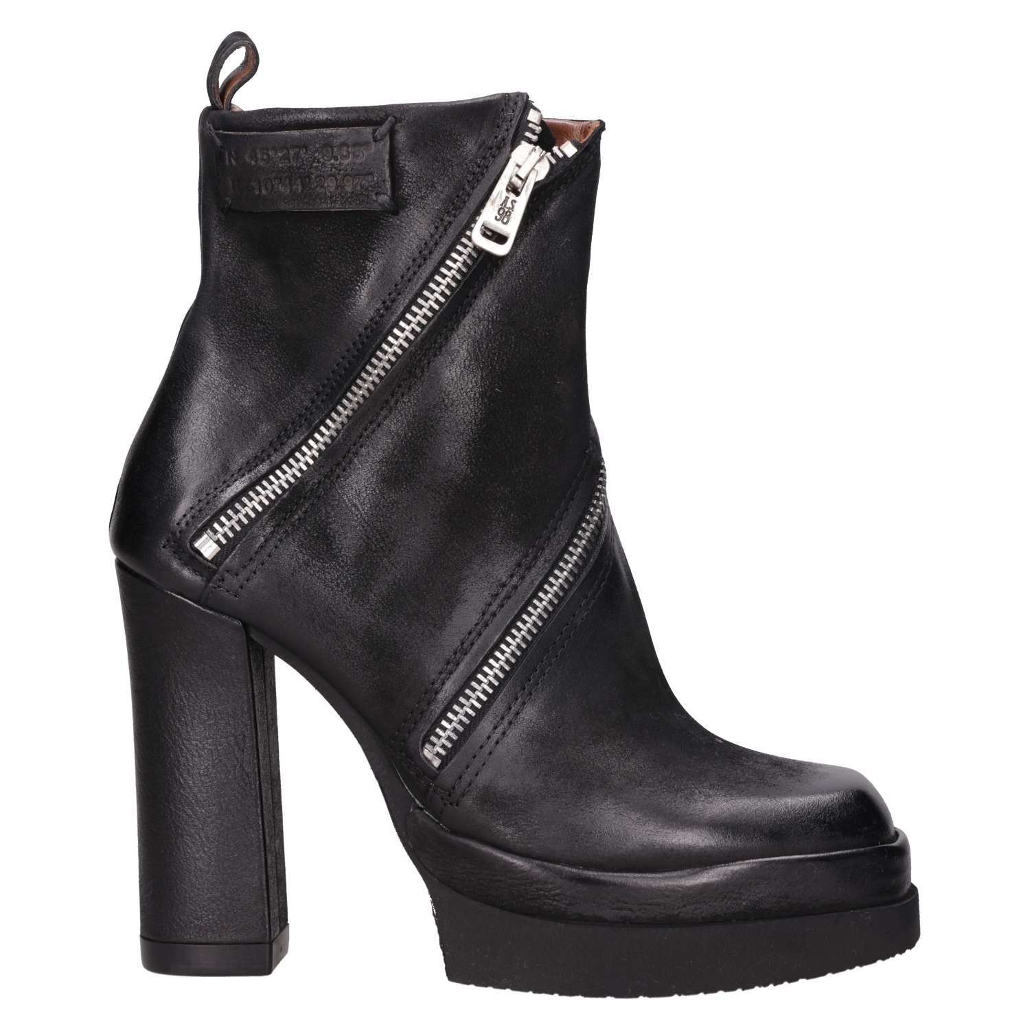 Da un paso hacia un estilo vanguardista con este botín negro de cuero de AS98. Con su taco bloque de 11.5 cm y detalles de cremallera metálica, este calzado refleja una actitud audaz y disruptiva. El acabado suave y brillante del cuero italiano resalta la modernidad de un diseño que impone moda en cada paso. Combínalo con un vestido ajustado o unos jeans desgastados para un look que captura todas las miradas.