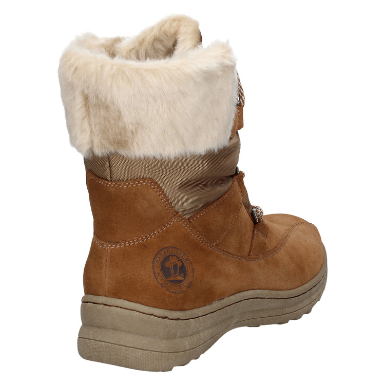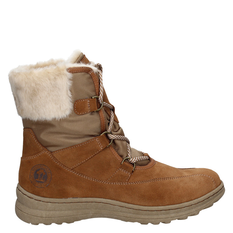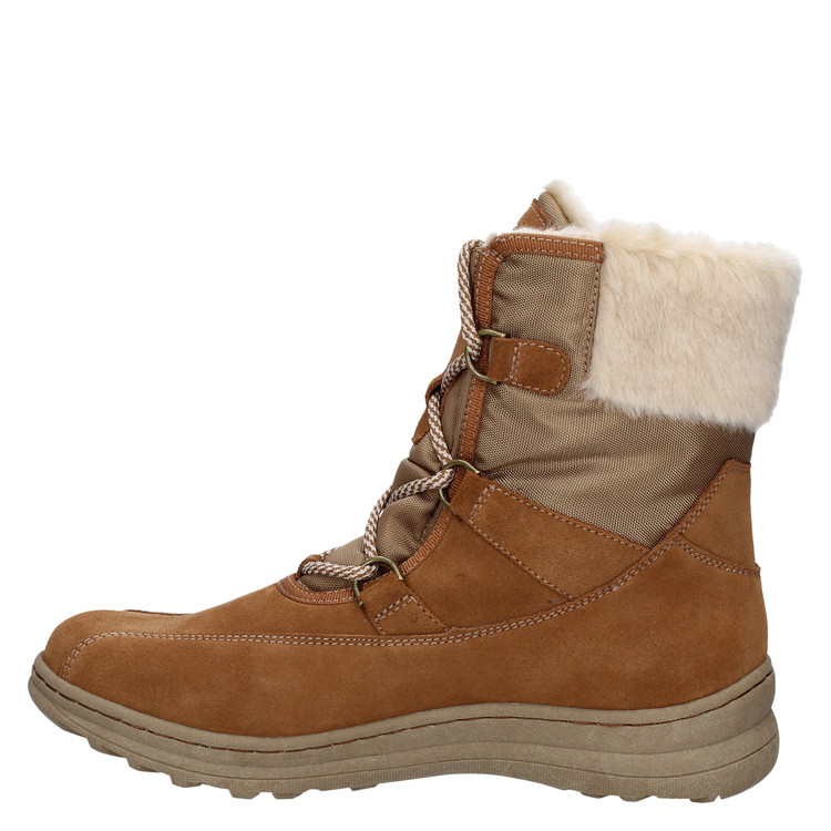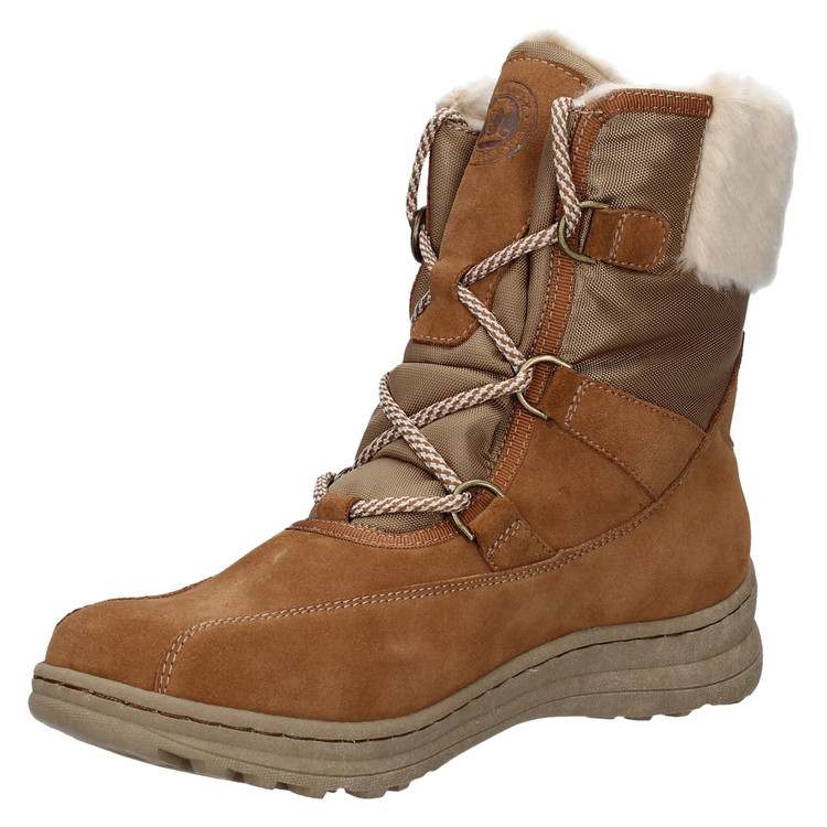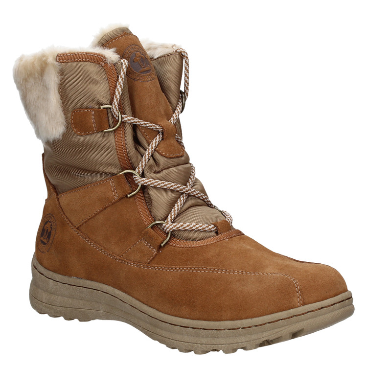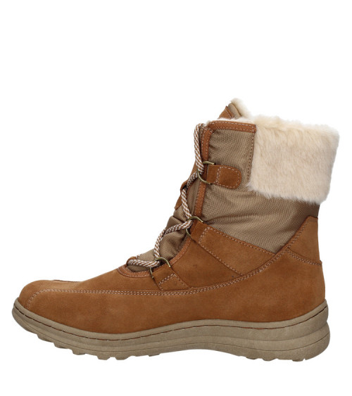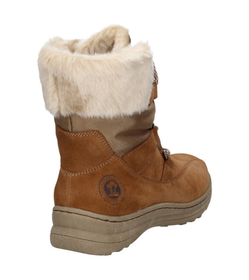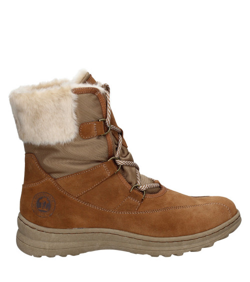Botín de cuero café con forro de chiporro, ofrece abrigo y suavidad.