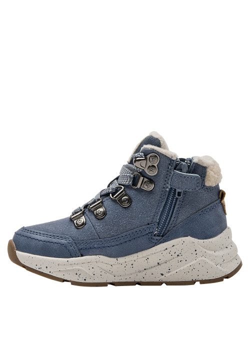 Inspirado en la libertad de explorar, el botín de niña J741 de Panama Jack es la elección ideal para pequeñas aventureras que buscan estilo y comodidad en su día a día. Su diseño robusto y funcional, con un corte alto que brinda soporte al tobillo, se complementa con una suela gruesa que asegura una excelente tracción en cada paso. El forro interno de chiporro, cálido y acogedor, lo convierte en el aliado perfecto para los días más fríos. Con detalles como ojales metálicos y cordones planos, este botín azul se integra a la perfección en looks casuales. Combínalo con jeans o leggings para un estilo relajado y auténtico.