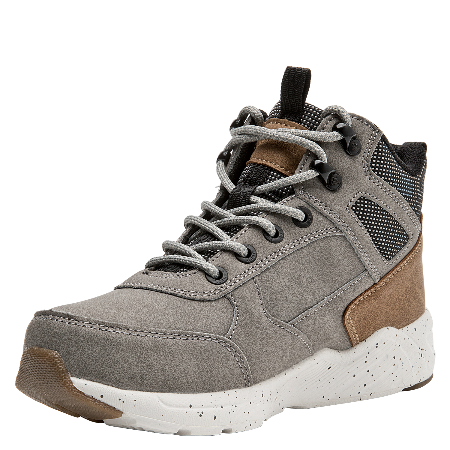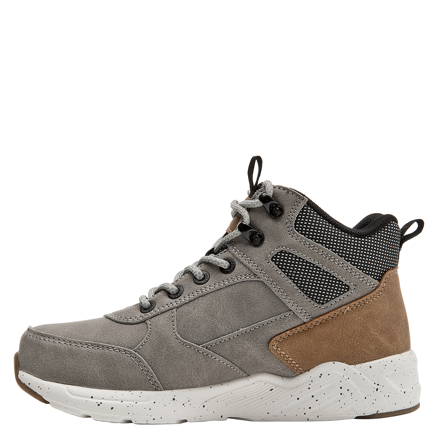 Descubre la versatilidad de nuestras botas para niño en un atractivo color gris. Diseñadas con materiales sintéticos de alta calidad, su textura suave y acabados rústico refinado brindan comodidad y seguridad en cada paso. Con una altura de taco de 5.5 cm y puntera redonda, son ideales para pequeños aventureros. Inspiradas en el espíritu outdoor, complementan cualquier look diario. Perfectas para explorar al aire libre, combinan fácilmente con pantalones cargo y chaquetas ligeras, ideales para una jornada de exploración en la ciudad o en la naturaleza.
