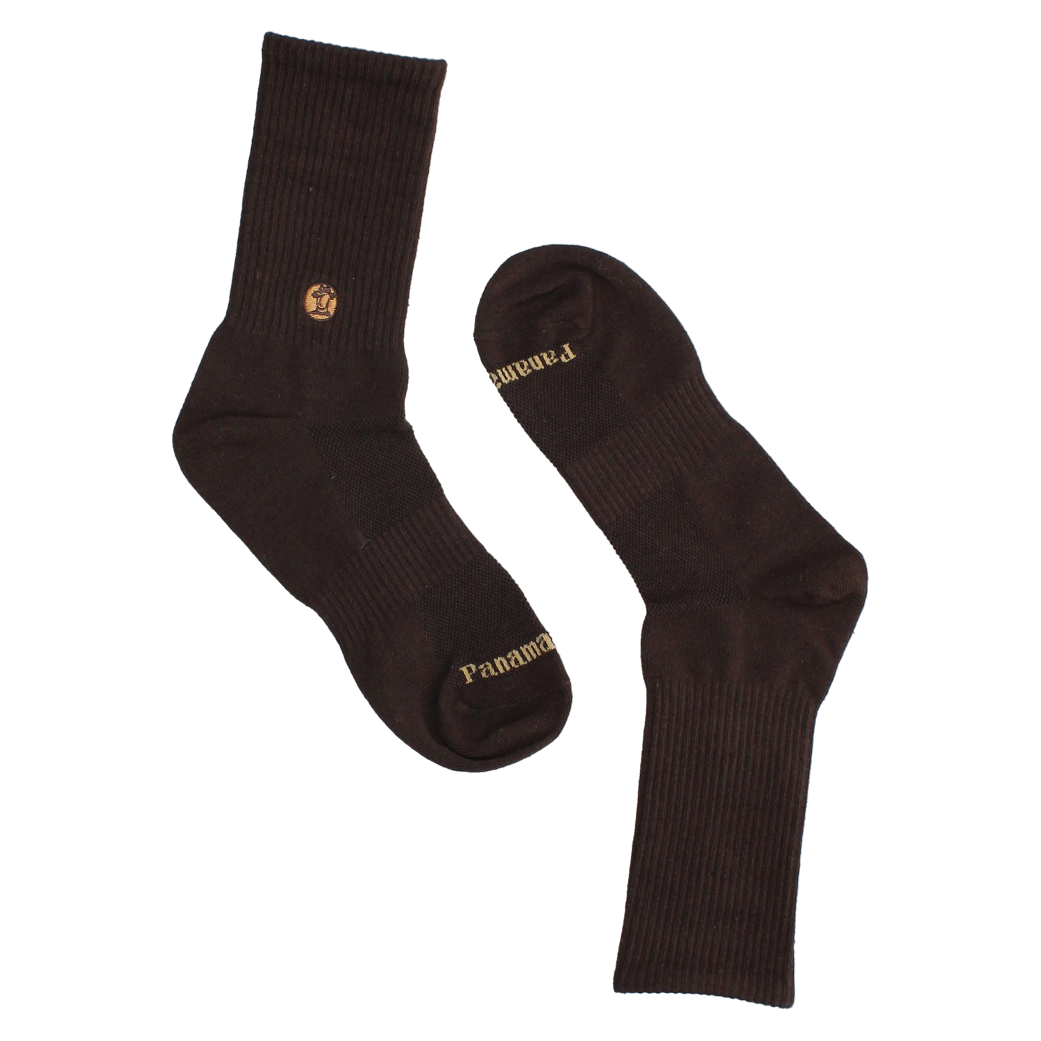 Calcetines unisex de estilo clásico en color moro, confeccionados con 72% algodón, 25% poliéster y 3% elastano.
