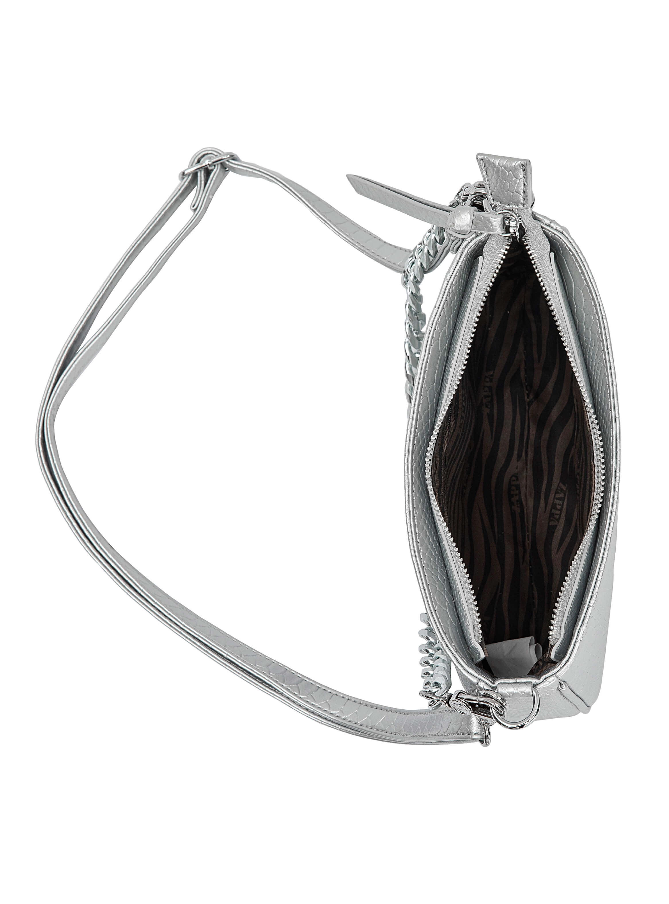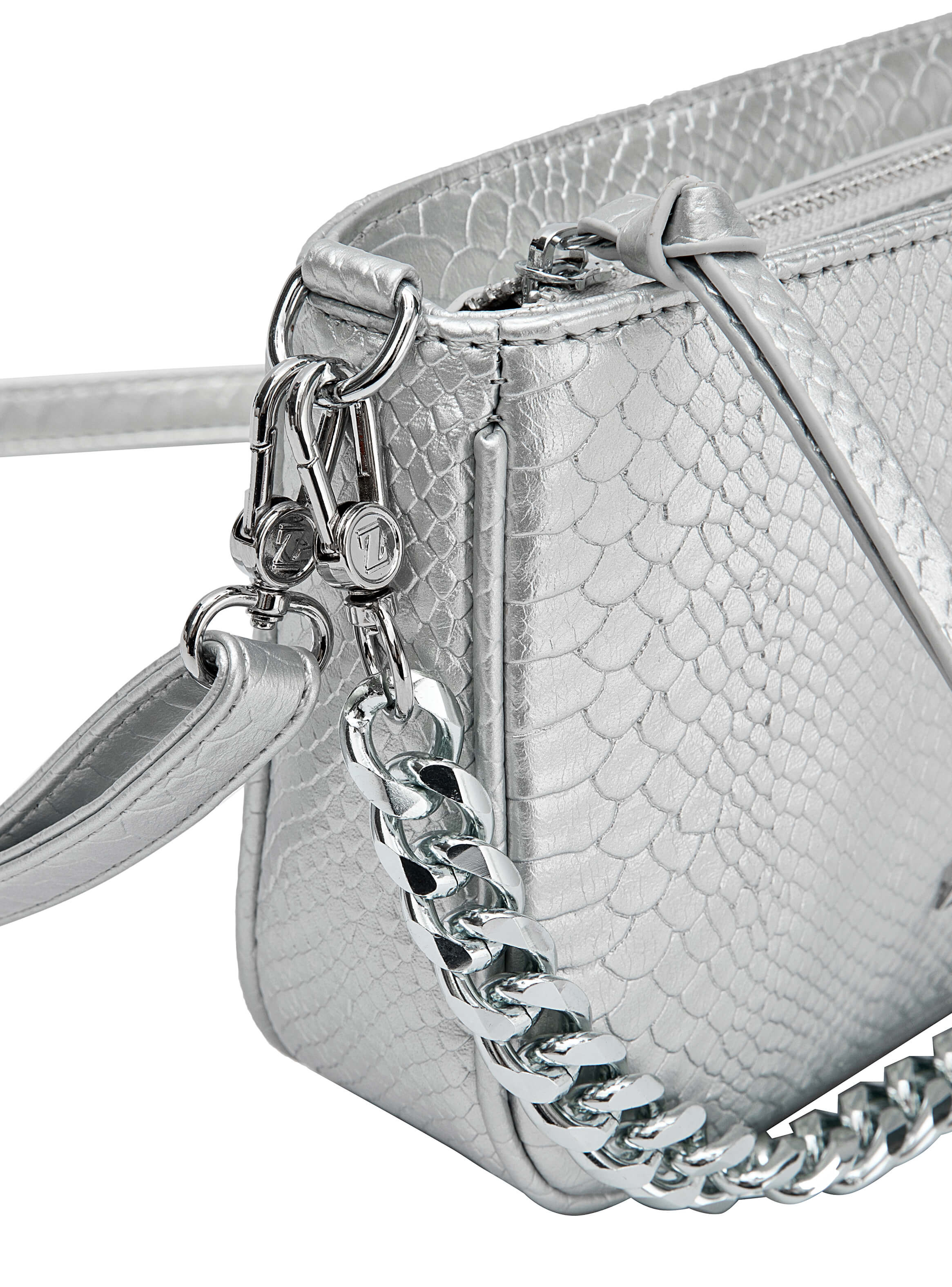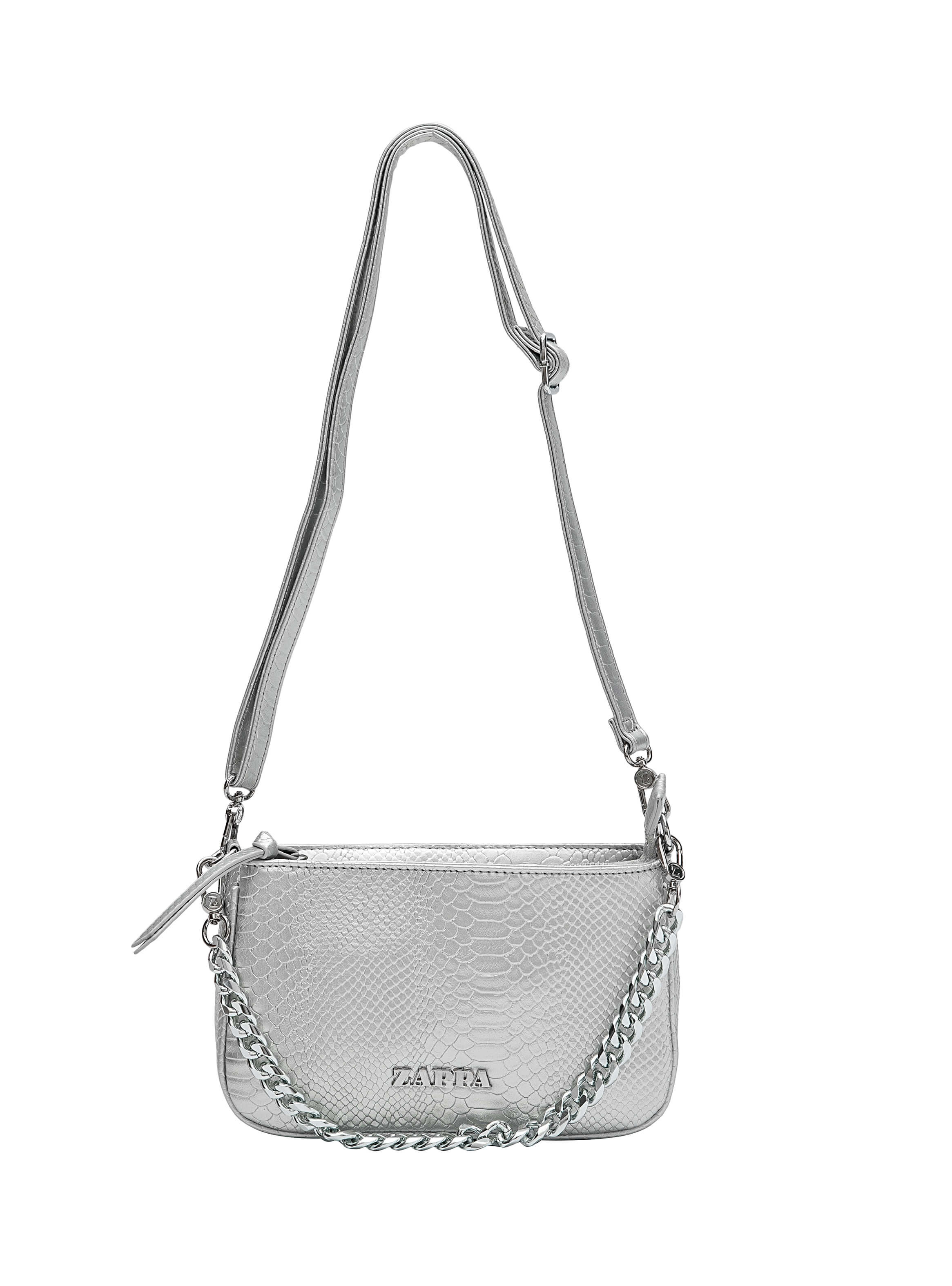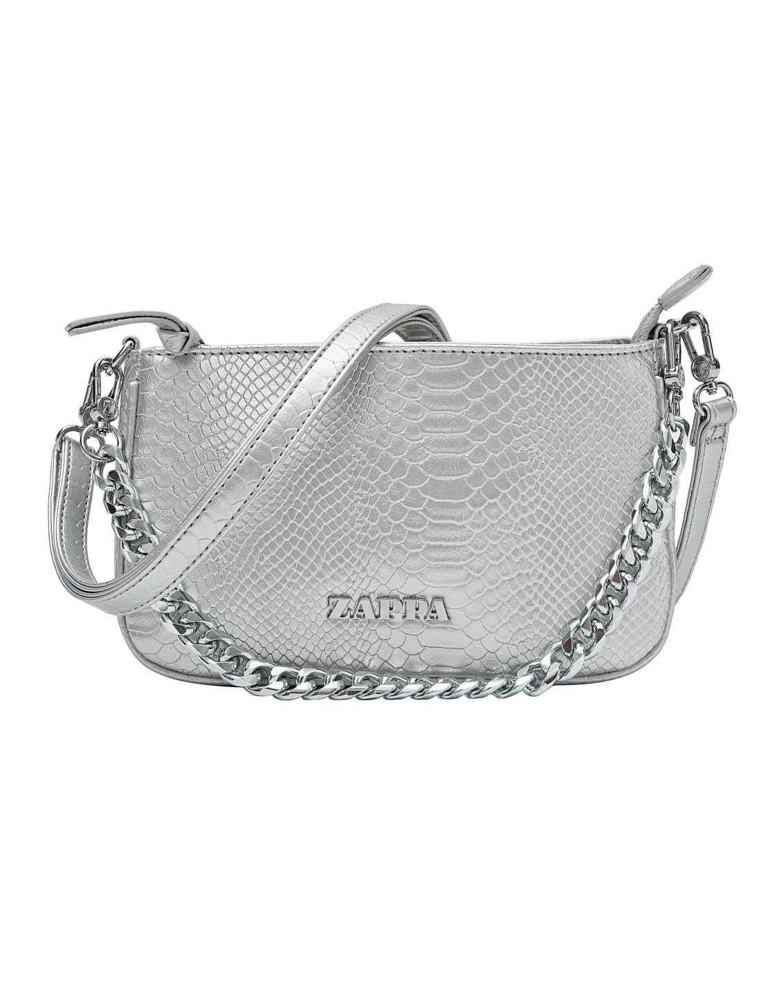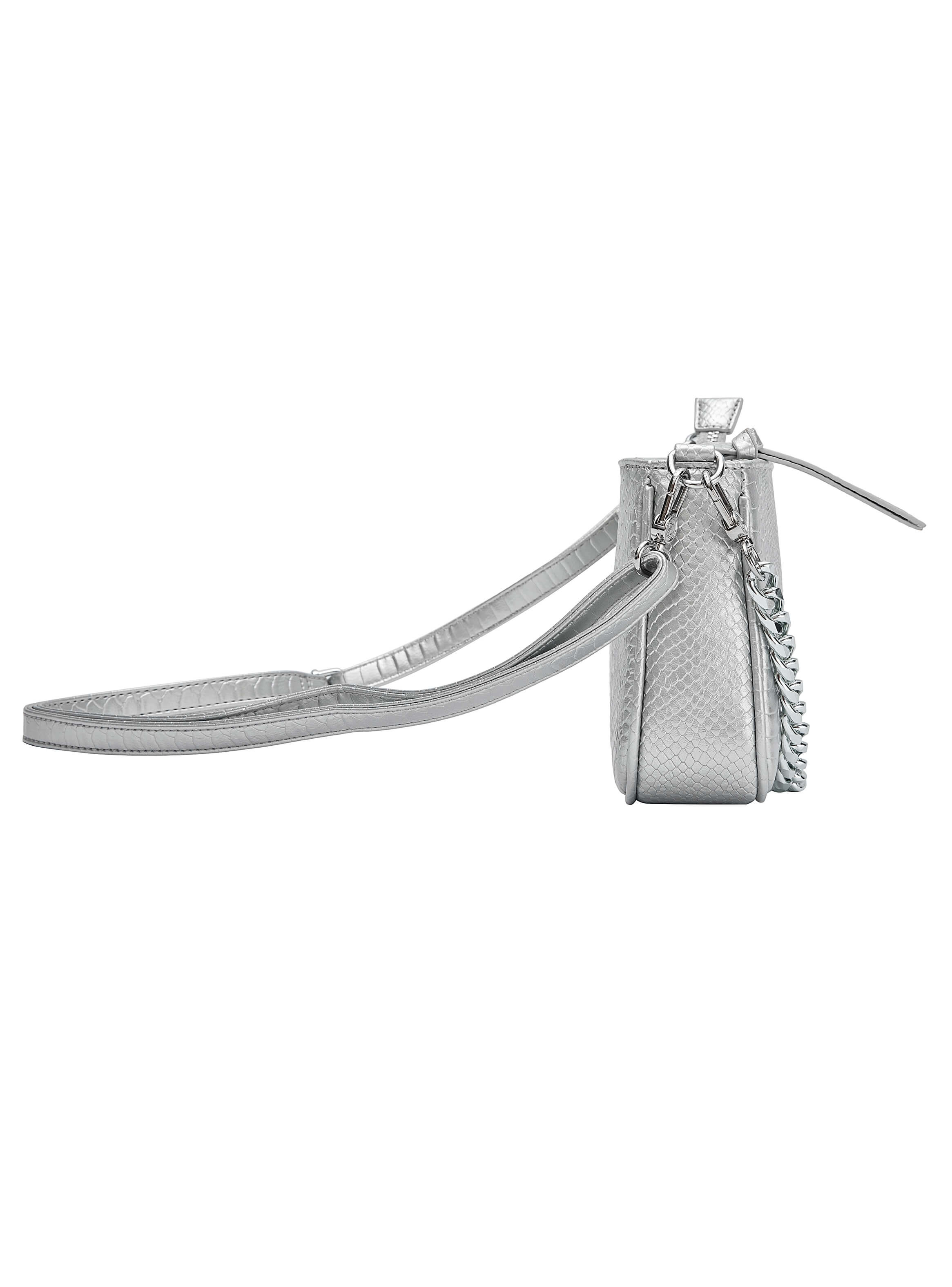 Sus dimensiones son perfectas: de alto 14 cm, de ancho 23.5 cm y de profundidad 5 cm ¡Un tamaño ideal! Además, en cuanto a compartimientos, dispone de 2 bolsillos internos (1 con cierre) para llevar tu dinero, identificación y demás pertenencias. Posee una correa extraíble y ajustable / cadena extraíble y el método de apertura es mediante cierre metálico.