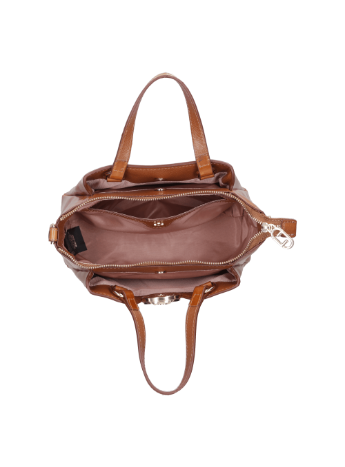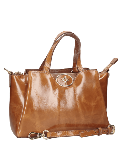 Una declaración de elegancia, esta cartera de cuero camel, de 26 cm de ancho y 10 cm de alto, destaca por su brillo sublime y sus detalles exclusivos. Su diseño atemporal, con asa doble y correa ajustable, la convierte en la compañera ideal para llevar lo esencial de manera glamorosa. Los dos bolsillos internos y un exterior sin cierre ofrecen funcionalidad sin sacrificar estilo. Eleva tu look en cada ocasión con una pieza que expresa sofisticación y deseo.
