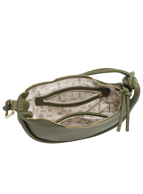 El bolso verde oliva de Pollini es el accesorio ideal para una mujer activa y moderna. Con medidas de 16 cm de alto, 27 cm de ancho y 7 cm de profundidad, su estilo curvilíneo y suave al tacto invita a la funcionalidad. Destaca su acabado texturizado y su elegante cierre metálico grueso, mientras que los dos bolsillos, uno con cierre, aseguran la seguridad y organización de tus esenciales. Una pieza versátil que complementa tu look en ambientes laborales y académicos, siempre con un toque de sofisticación.