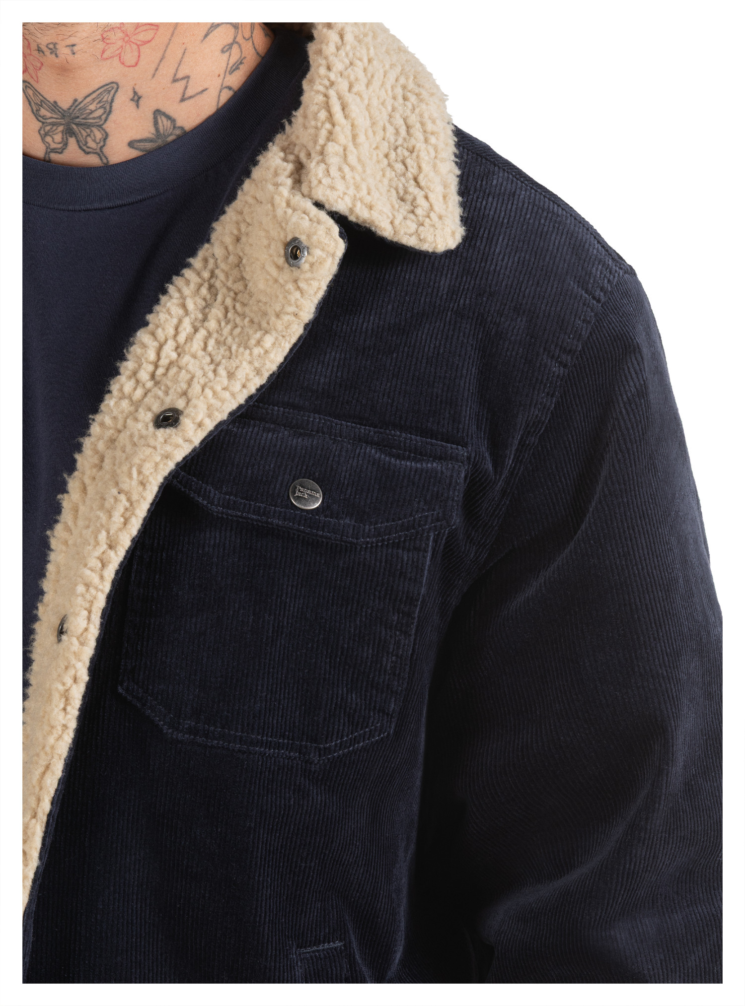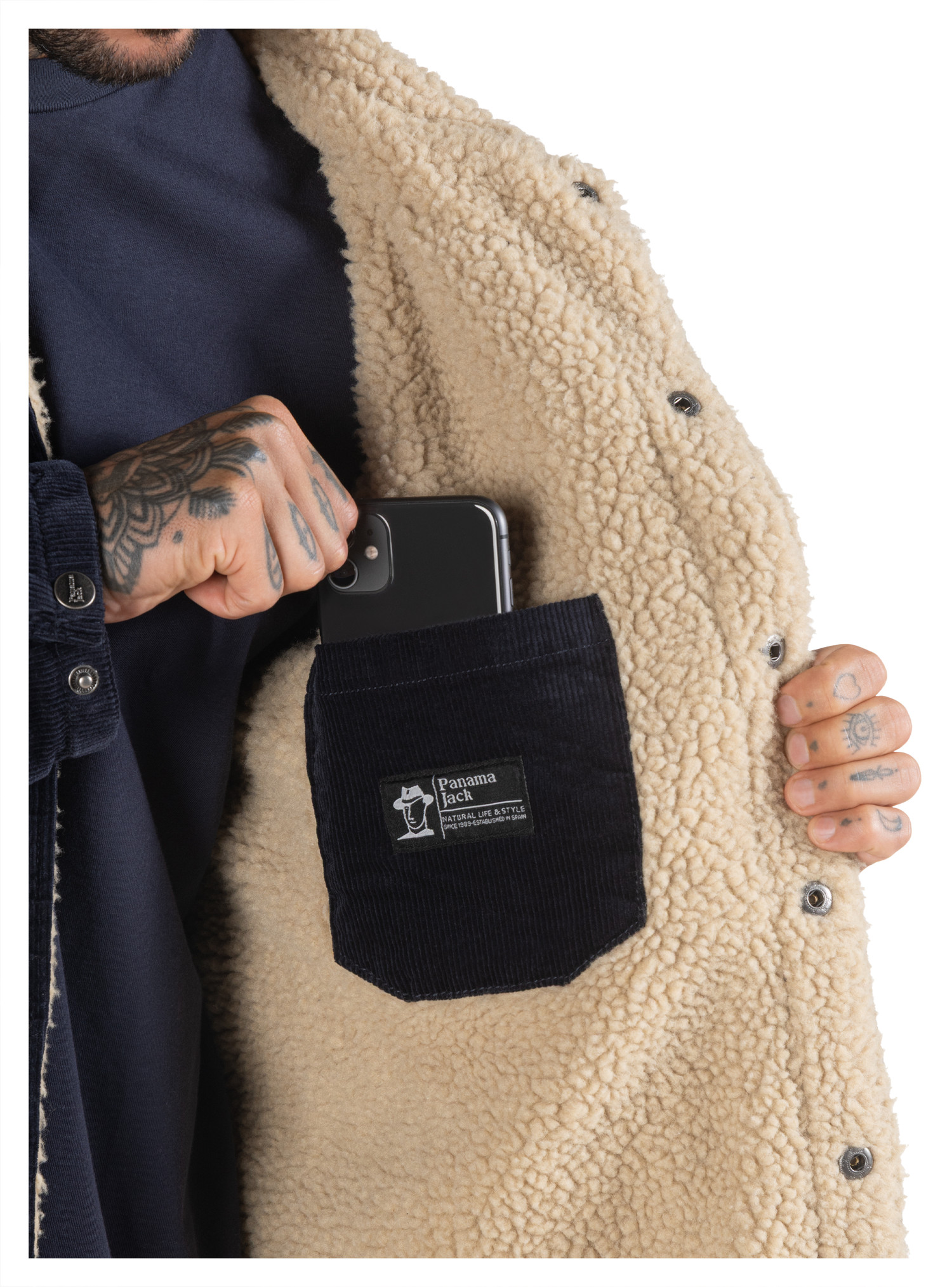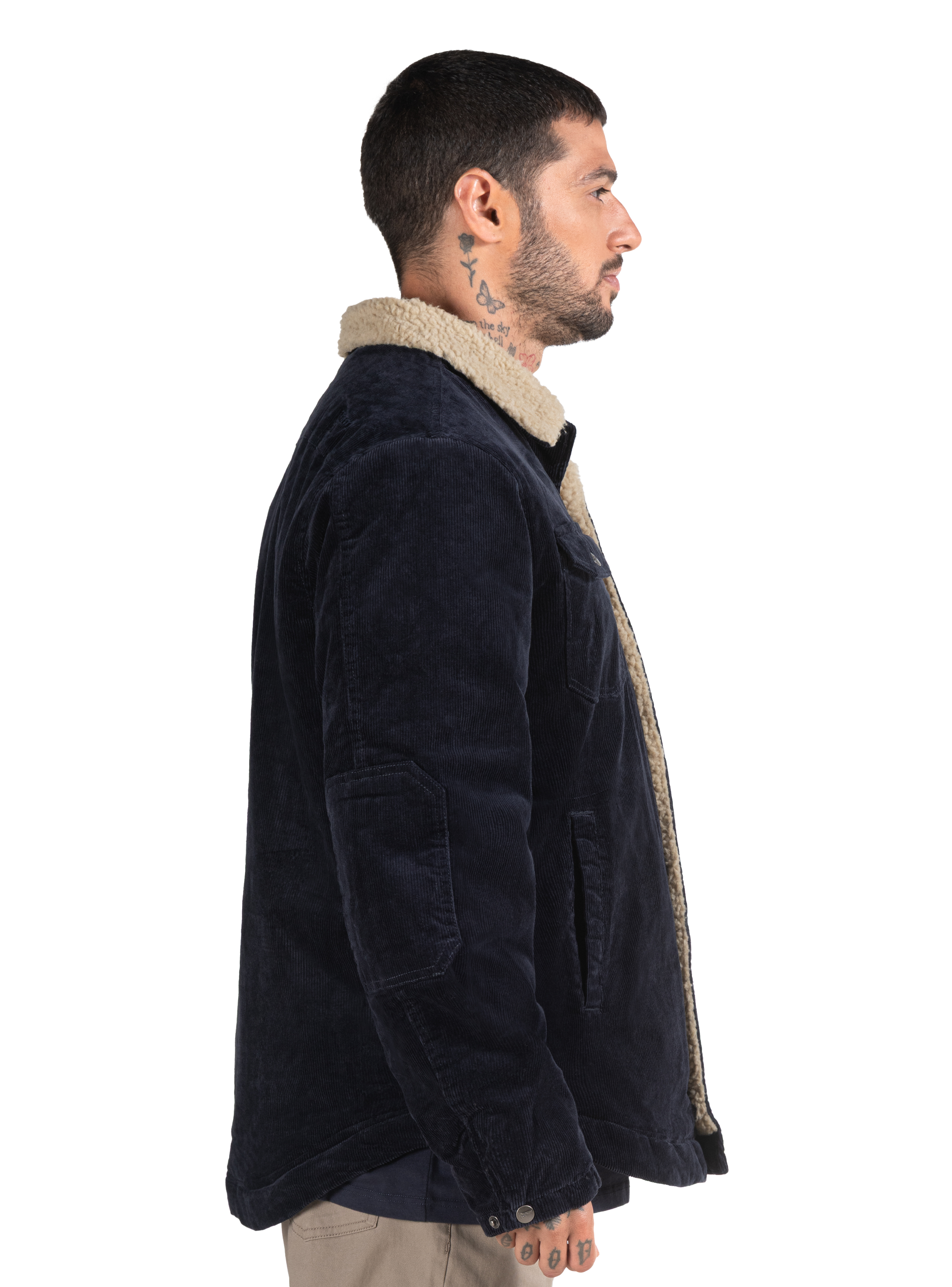 2 Bolsillos en pecho con broche metálico / 2 Bolsillos en costado abiertos / 1 Bolsillo interior abierto