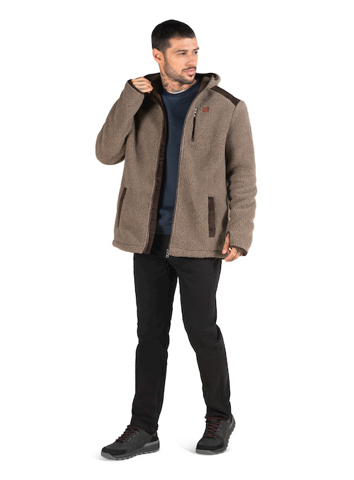 La chaqueta híbrida de Panama Jack es la elección perfecta para quienes buscan un equilibrio entre estilo y funcionalidad. Con un diseño que fusiona un vellón grueso jaspeado en tonos beige y crema, esta prenda ofrece una suavidad inigualable. Los refuerzos en los hombros y la capucha, junto con los detalles en cuero marrón, aportan un toque rústico refinado que realza su carácter aventurero. Su capucha ajustable y los puños con obertura para dedos garantizan comodidad y protección en cada paso. Ideal para combinar con unos pantalones de trekking y botas robustas, esta chaqueta será tu compañera de exploración en cualquier rincón del mundo.