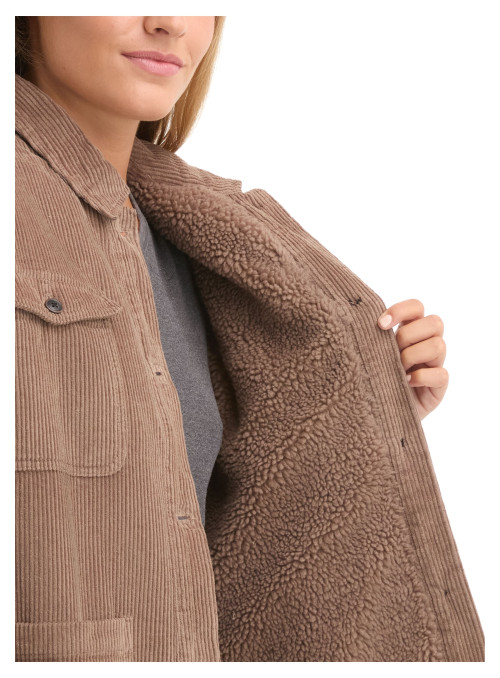 Inspirada en la libertad de explorar, la chaqueta con chiporro para mujer de Panama Jack es el aliado perfecto para quienes buscan bienestar y estilo en su día a día. Confeccionada en 100% algodón, su tejido grueso y resistente ofrece una textura acogedora, ideal para los días más fríos. Su corte relajado y el clásico cuello camisero brindan un ajuste cómodo, mientras que los puños ajustables añaden versatilidad a cada look. Con cuatro prácticos bolsillos frontales, esta chaqueta combina funcionalidad y elegancia sencilla. Combínala con unos jeans y botas robustas para un estilo auténtico y natural, perfecto para cualquier aventura.