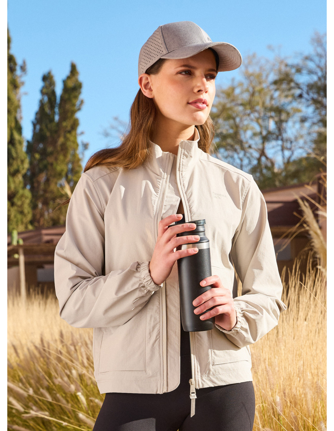 Chaqueta de mujer en color beige, de manga larga y silueta limpia. Confeccionada en 90% poliamida y 10% elastano, ofrece tacto suave, ligereza y elasticidad para moverse con comodidad. El diseño minimalista se adapta a looks urbanos o casuales, funcionando como capa versátil en días templados. El corte recto mantiene la estructura sin perder flexibilidad.