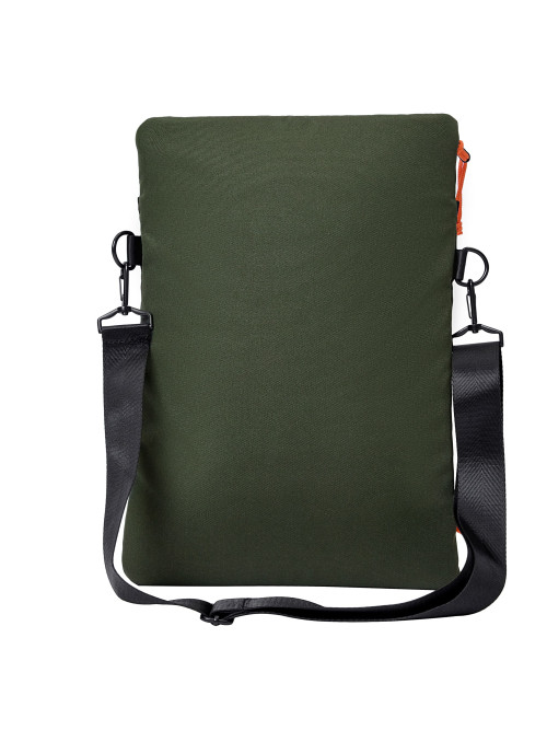 Con un tamaño práctico de 41 cm de alto por 28 cm de ancho, incluye un bolsillo frontal con cierre para organizar cargadores, cables u otros objetos personales. La correa ajustable y extraíble permite llevarlo al hombro o como un portafolio, adaptándose a distintos estilos de uso. Ya sea para la oficina, clases o viajes, este estuche es una solución práctica, elegante y responsable con el planeta.