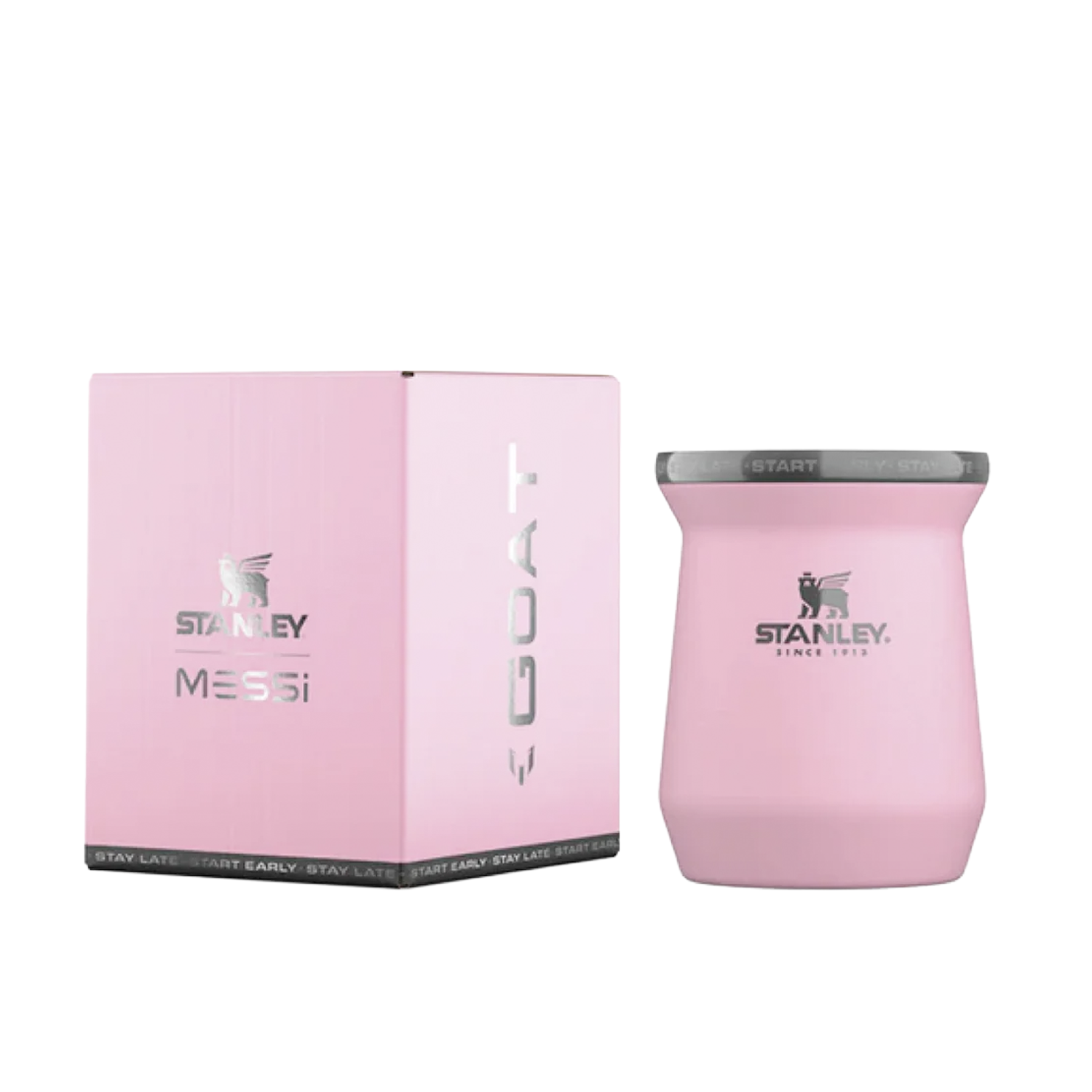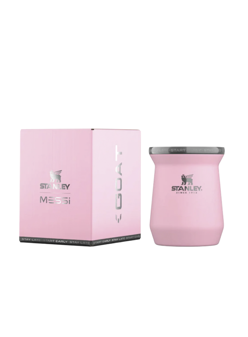 El Mate Stanley 236 ml Messi GOAT combina el estilo de la colección con la tradición del mate clásico. Su diseño tipo calabaza en acero inoxidable y el aislamiento al vacío de doble pared mantienen la temperatura ideal por hasta 30 minutos. Compacto, resistente y fácil de llevar, es perfecto para acompañarte dentro y fuera de la cancha.