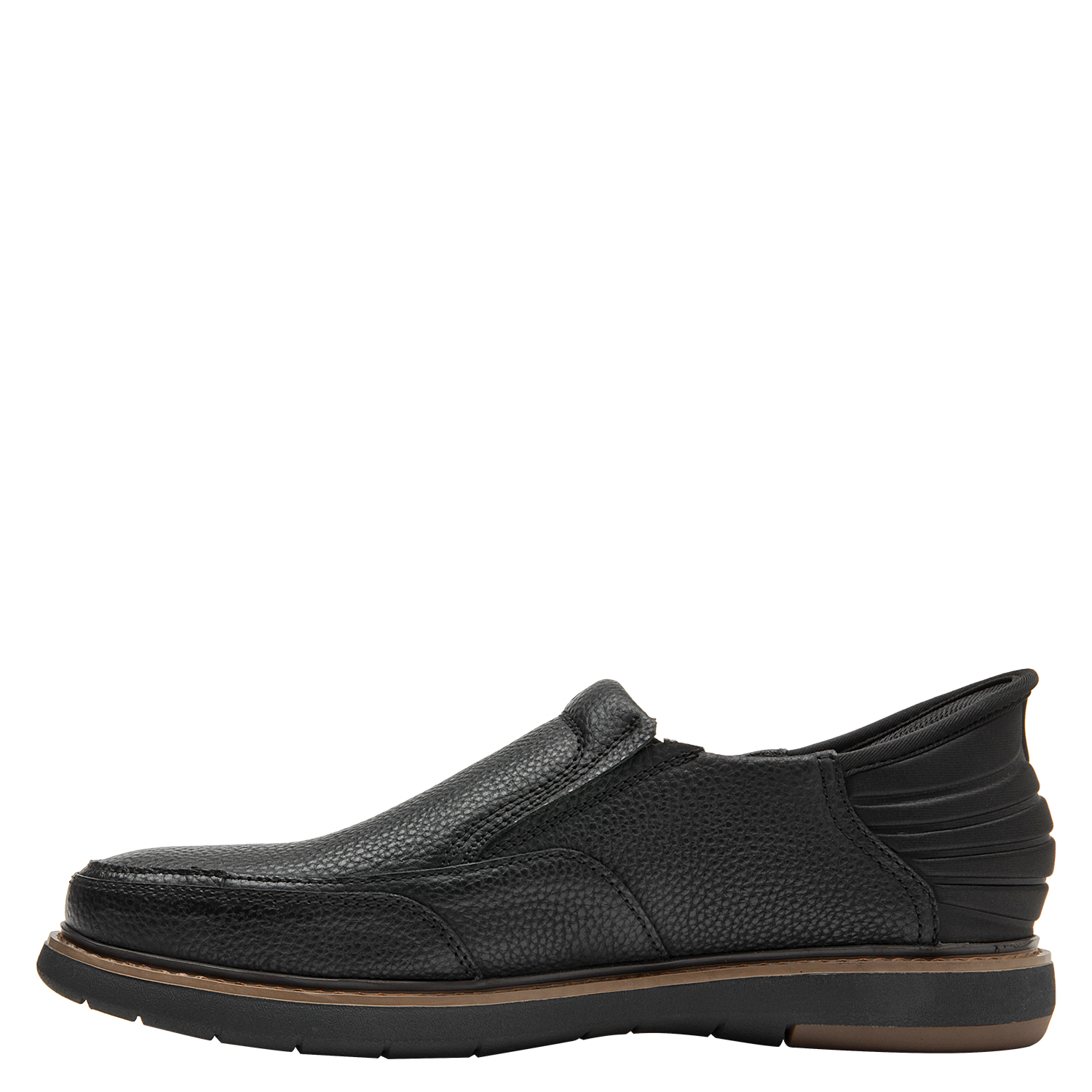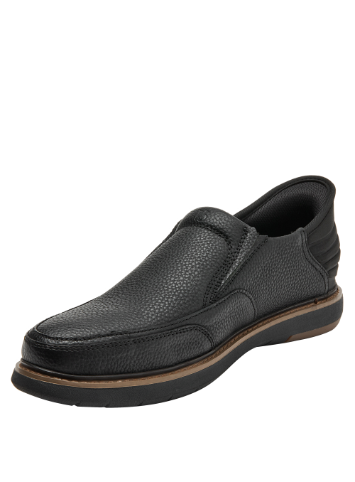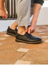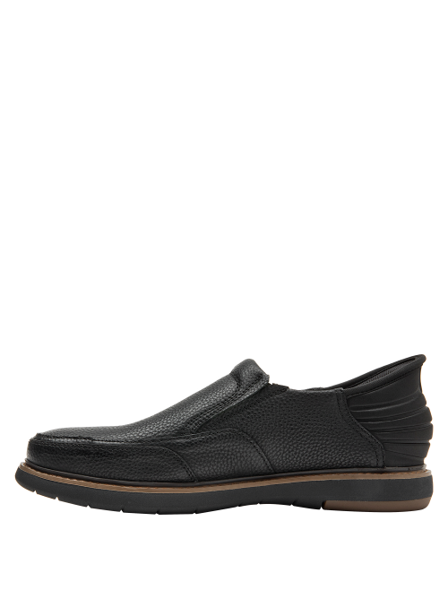 El Mocasín de hombre de 16 HRS destaca por su diseño sofisticado, con un exterior de cuero de grano fino que garantiza resistencia y elegancia. Su color negro clásico y la línea de costura visible añaden un toque de distinción, mientras que la suela de goma proporciona comodidad y un buen agarre en cada paso.