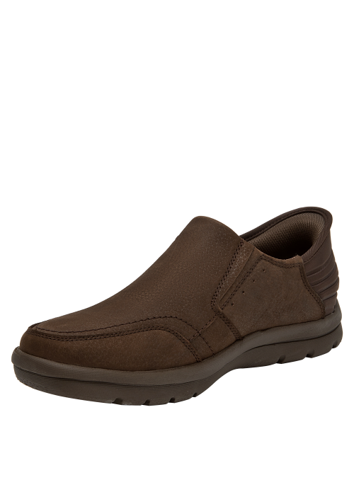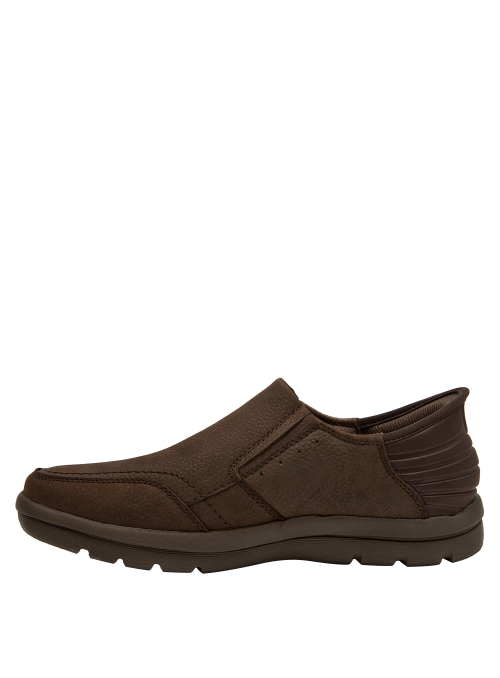 Zapato casual de cuero para hombre en color moro, con punta redonda y taco plano de 3 cm. La capellada de cuero luce un acabado sobrio y costuras definidas, mientras el forro de mesh suma confort durante la jornada. La suela plana aporta una pisada estable y un look versátil que funciona tanto en momentos informales como en contextos semi casuales.