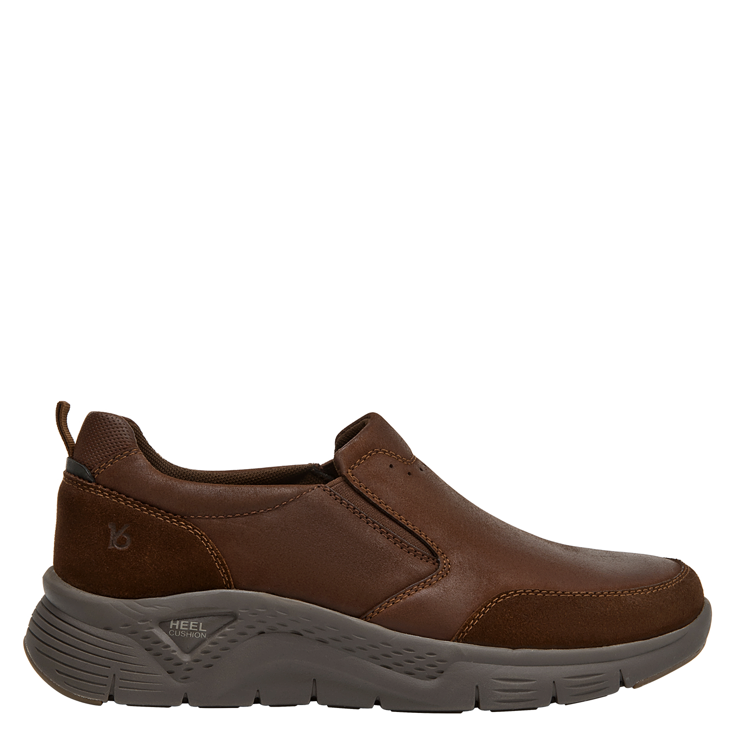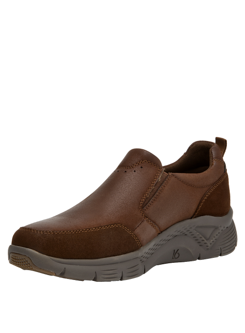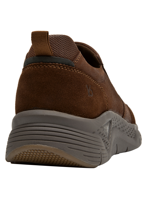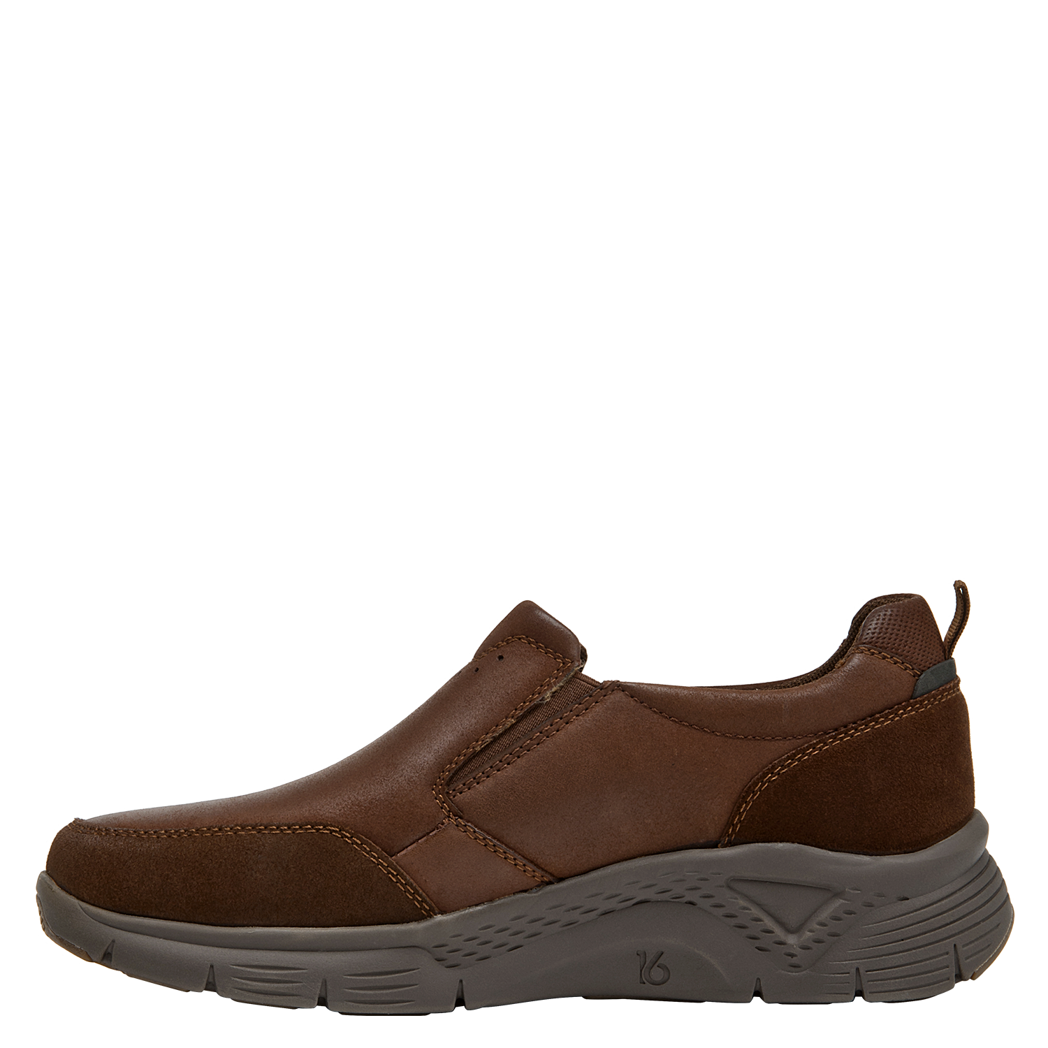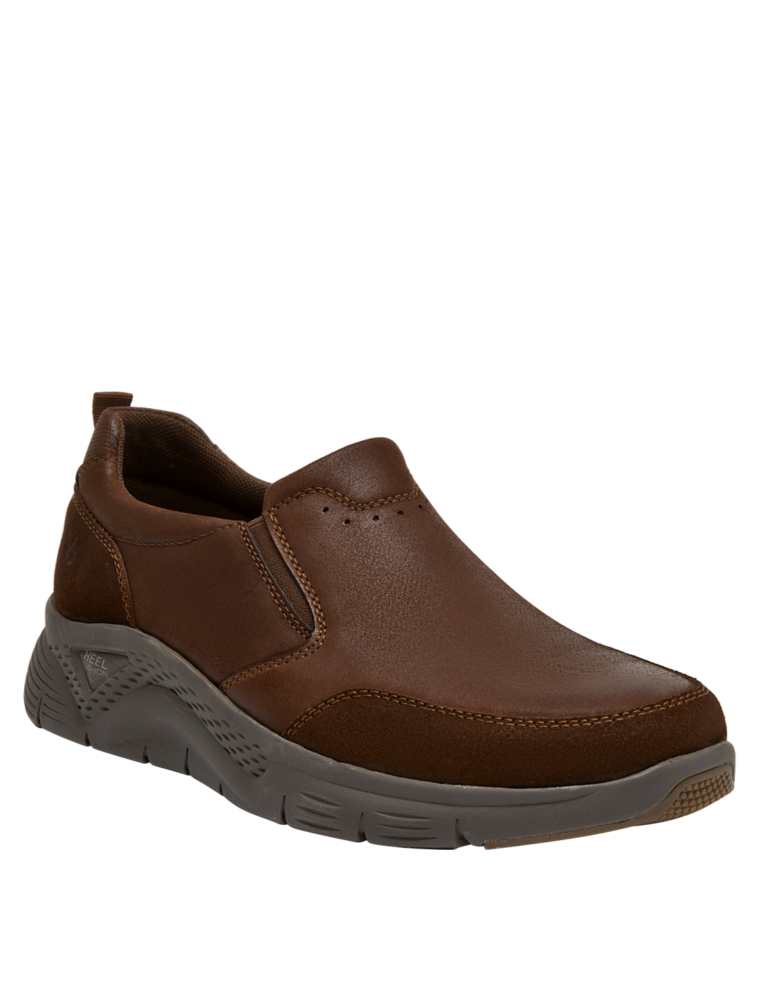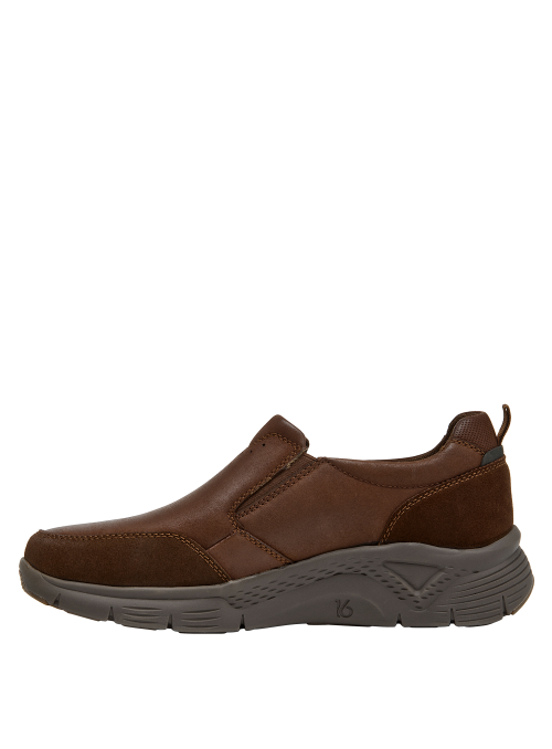 Botín casual para hombre en color café, confeccionado en cuero con forro interior de mesh. Su diseño de punta redonda y taco plano de 4,5 cm entrega un look sobrio y funcional, ideal para el día a día. El acabado en cuero aporta carácter y durabilidad, mientras el interior en mesh favorece la ventilación y comodidad en cada paso.