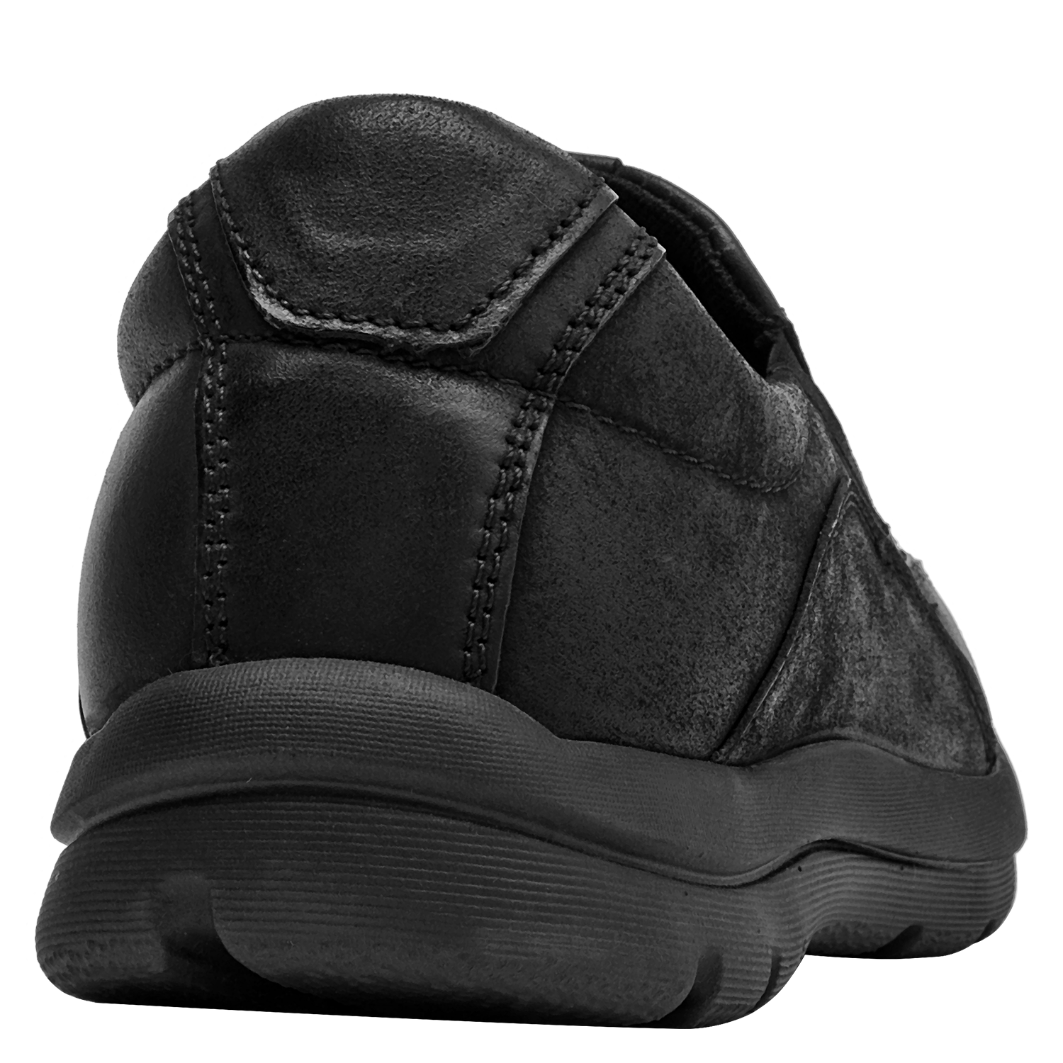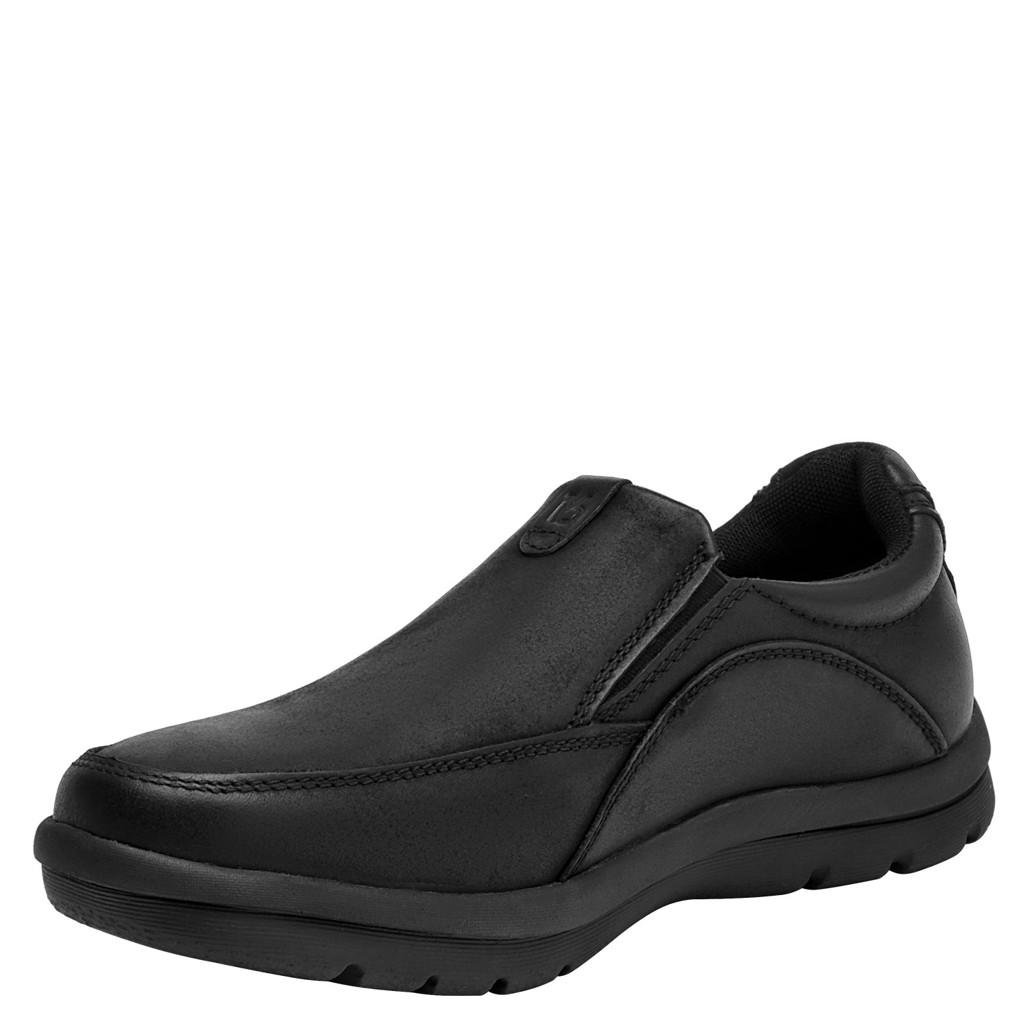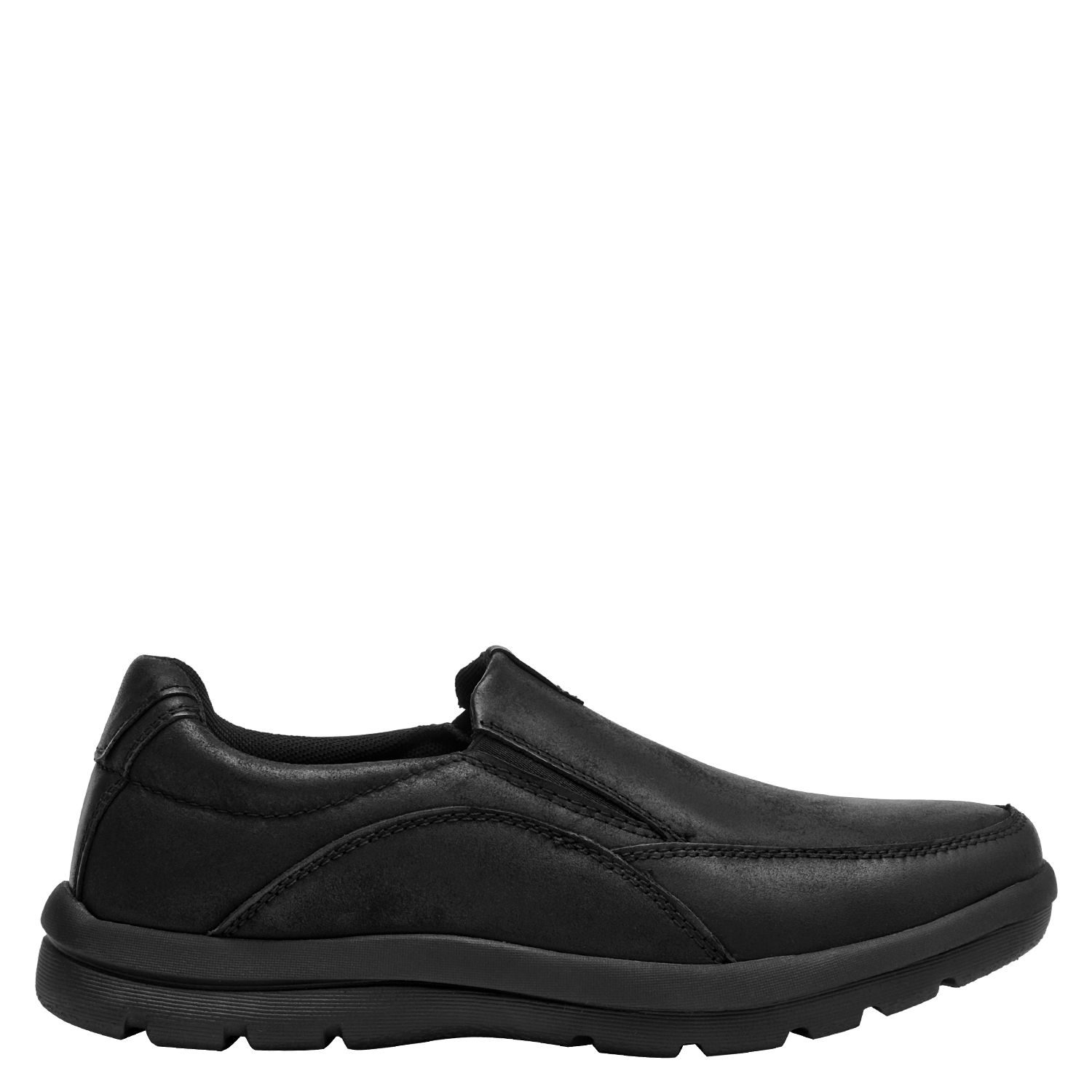 Zapatilla urbana de cuero para hombre en color negro, diseñada con punta redonda y suela plana de 3 cm. El acabado liso aporta un estilo limpio, mientras el forro de mesh favorece la ventilación. Costuras discretas completan un perfil sobrio y funcional, ideal para el uso diario y looks versátiles.