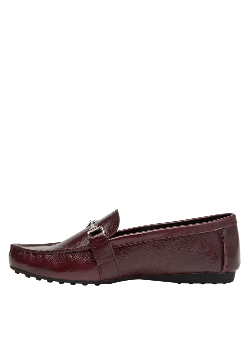 Zapato plano de cuero para mujer en color burdeos, de diseño minimalista. Presenta punta redonda, taco de 1,5 cm y acabado liso que realza su perfil limpio. El forro On Steam ofrece una sensación suave en el interior, mientras la estructura ligera favorece el uso diario. Una opción versátil para entornos urbanos y de oficina que suma sobriedad y facilidad de combinación.