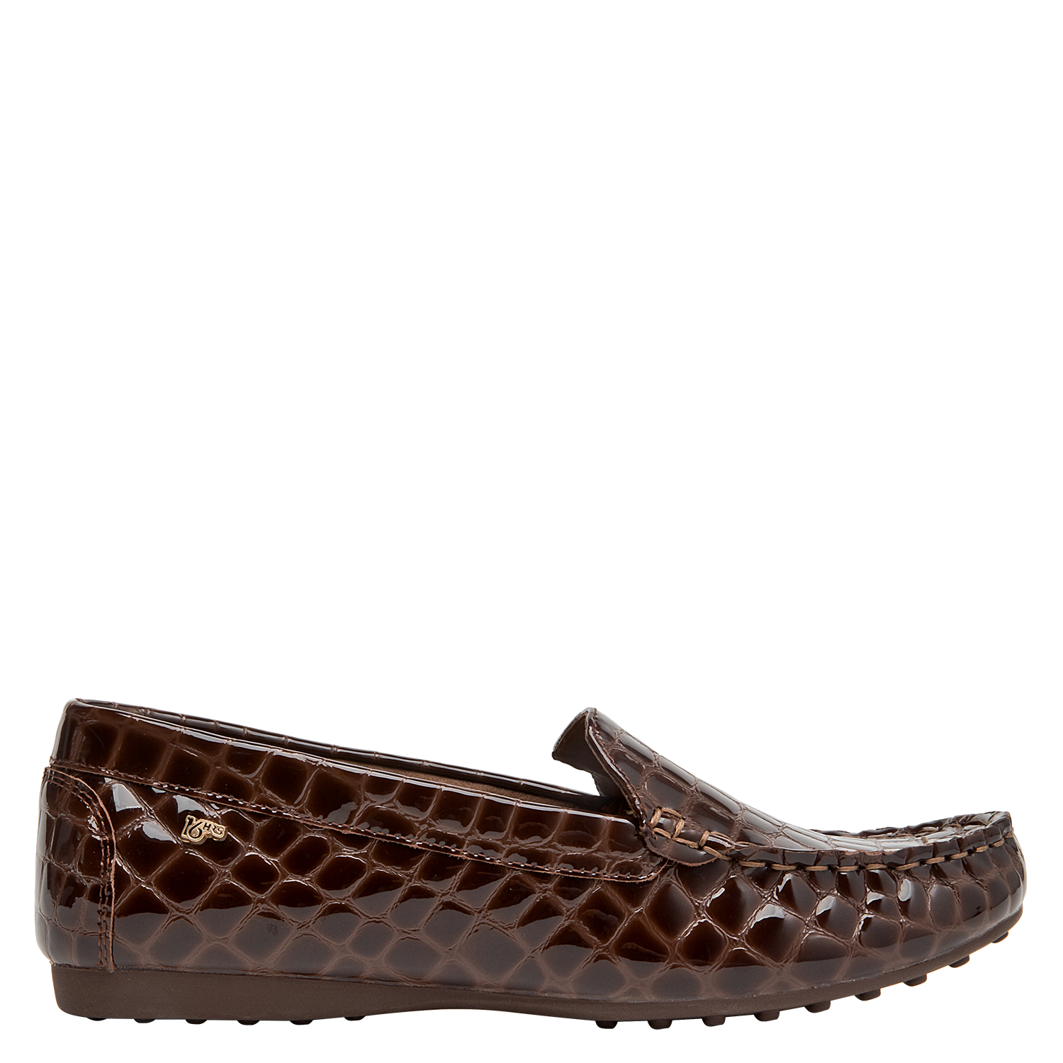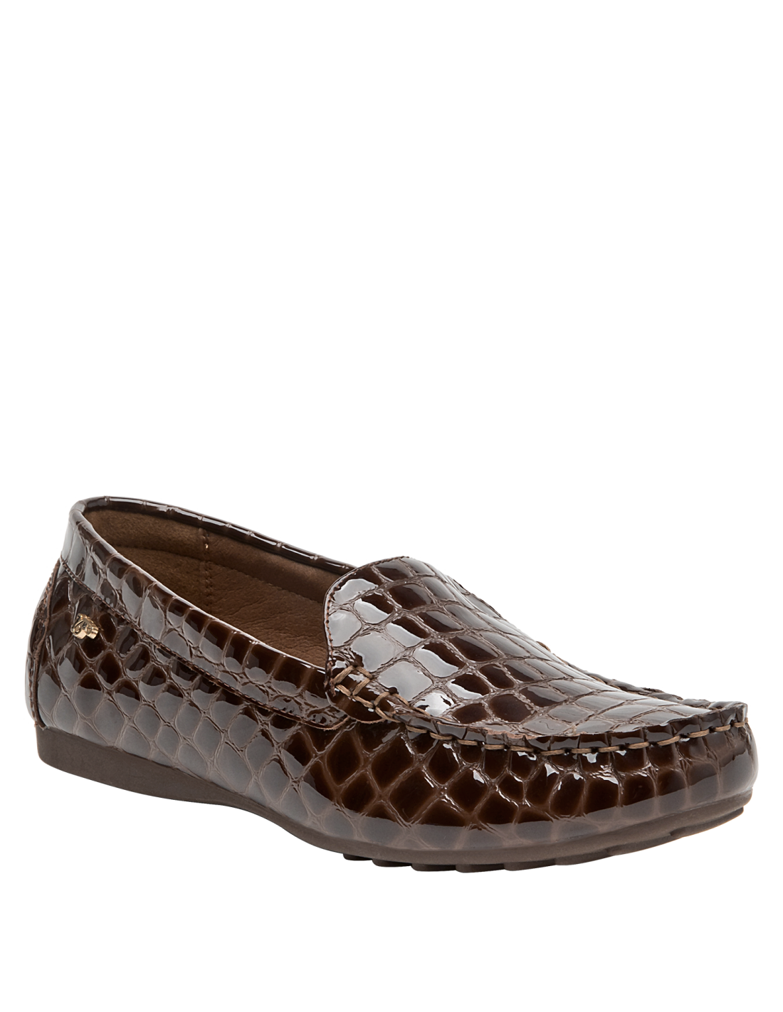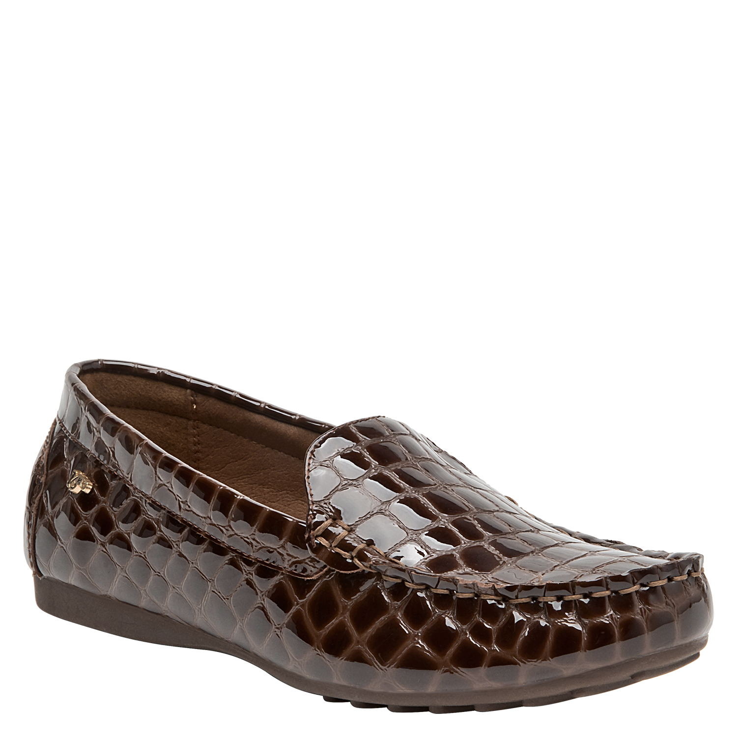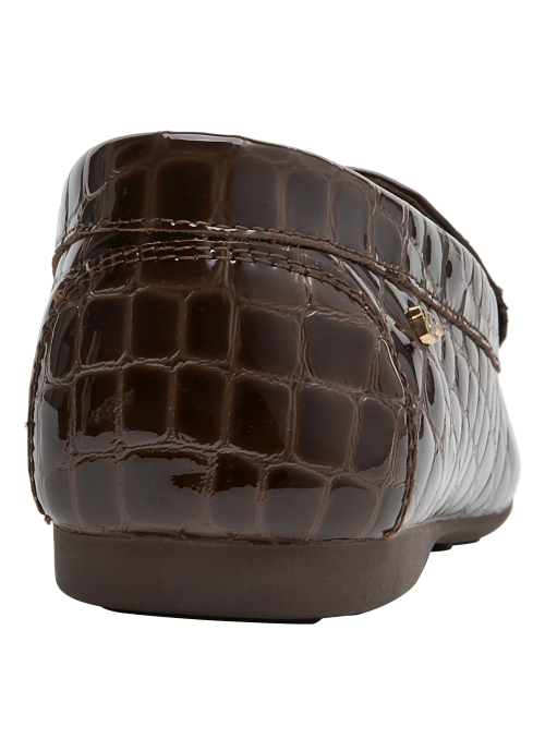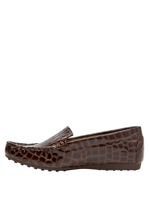 Zapato plano de cuero para mujer en color café, con punta redonda y taco de 1,5 cm. Su capellada de cuero presenta costuras discretas y un acabado sobrio que favorece un look versátil. El interior con forro de microfibra aporta suavidad, mientras la suela plana brinda estabilidad para el día a día.