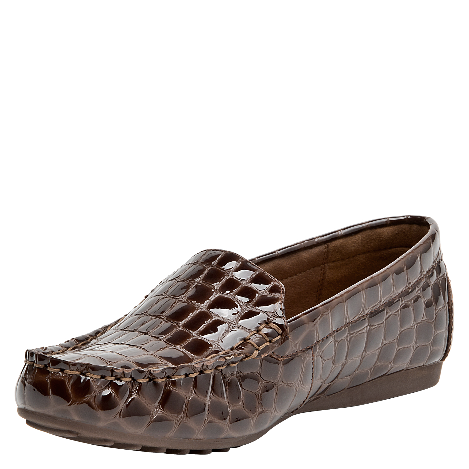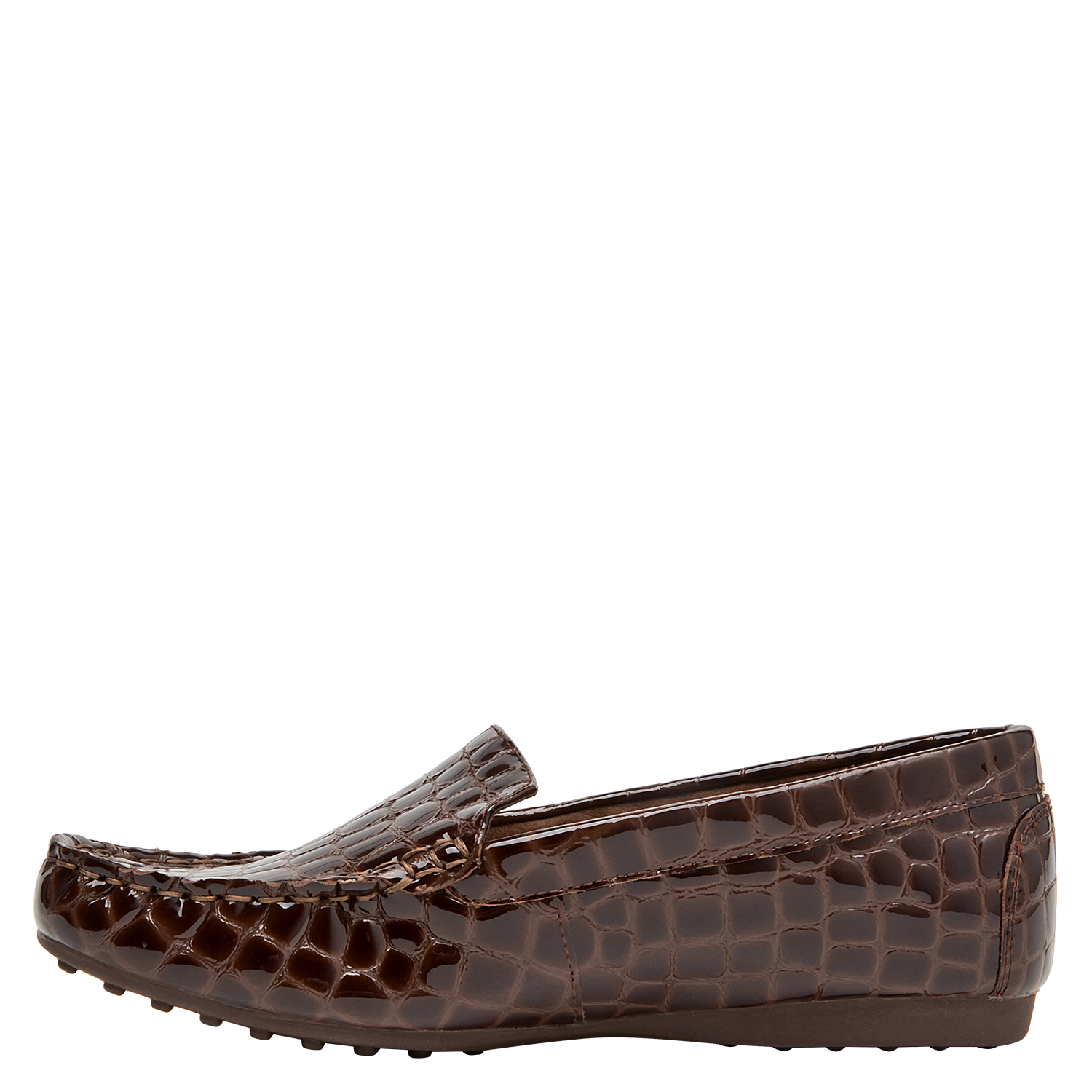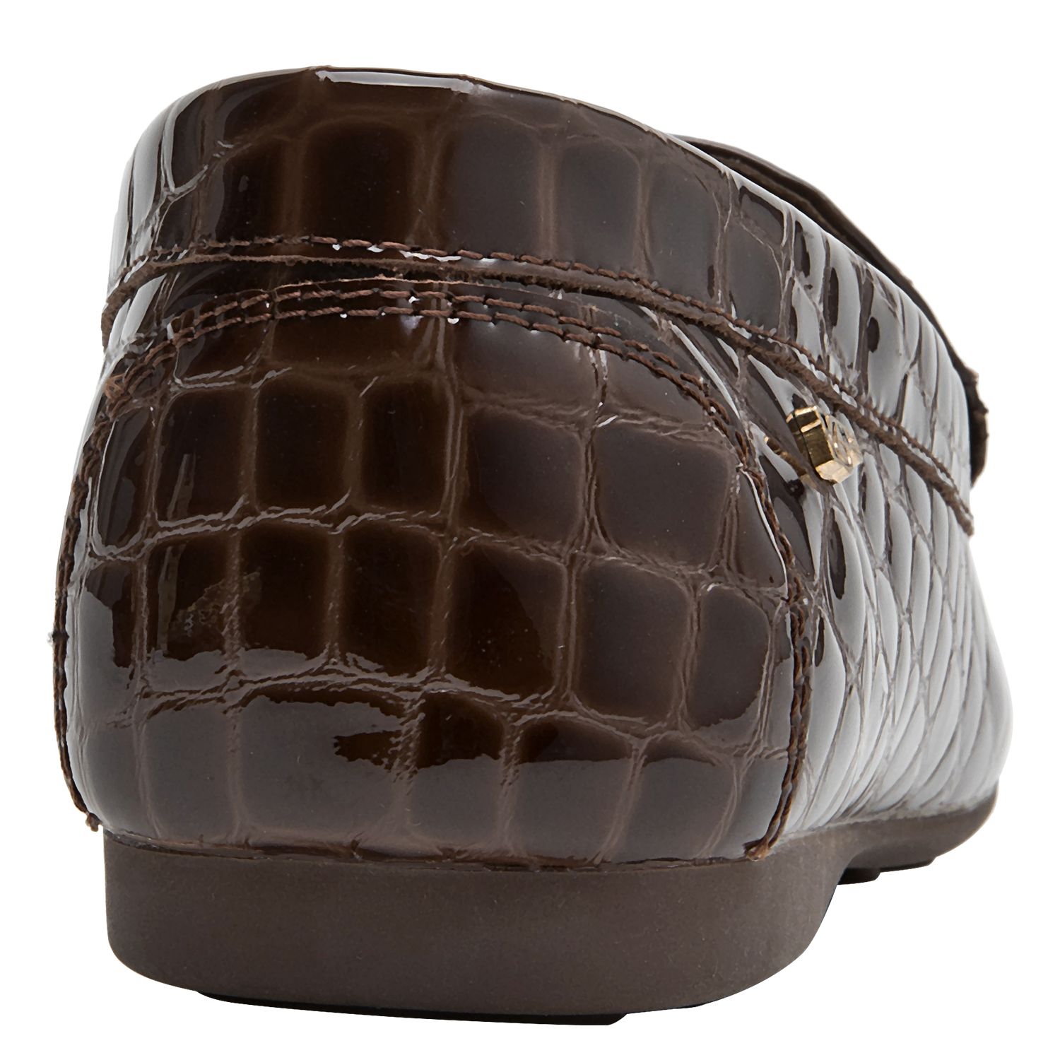 Zapato plano de cuero para mujer en color café, con punta redonda y taco de 1,5 cm. Su capellada de cuero presenta costuras discretas y un acabado sobrio que favorece un look versátil. El interior con forro de microfibra aporta suavidad, mientras la suela plana brinda estabilidad para el día a día.