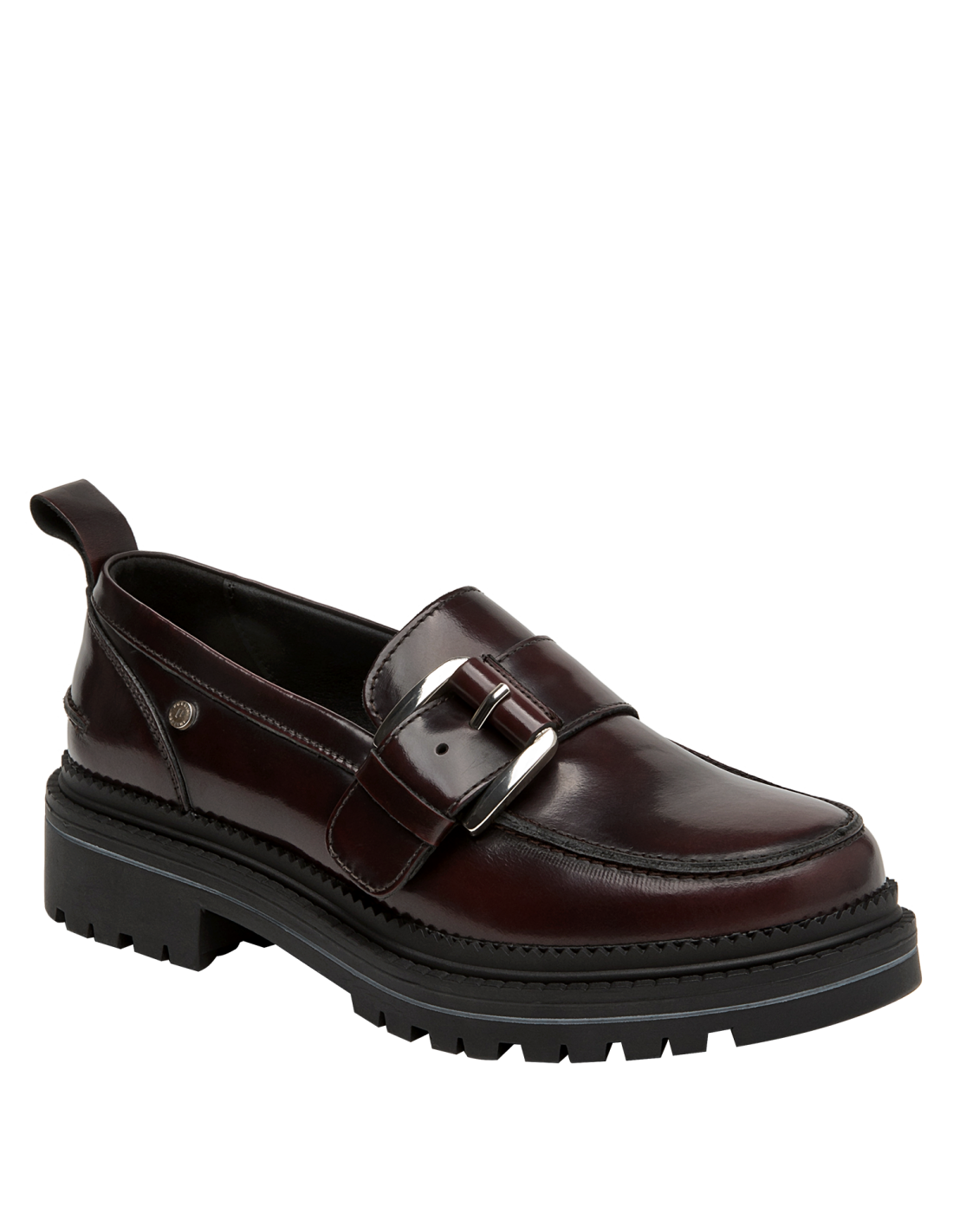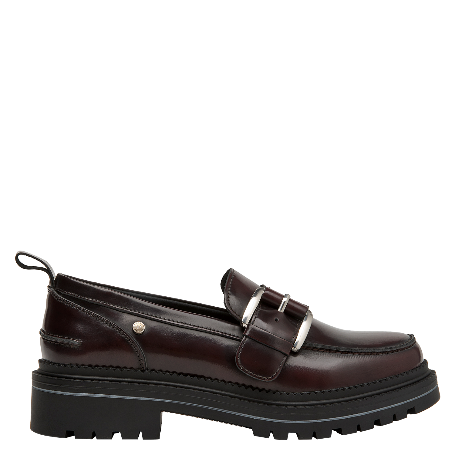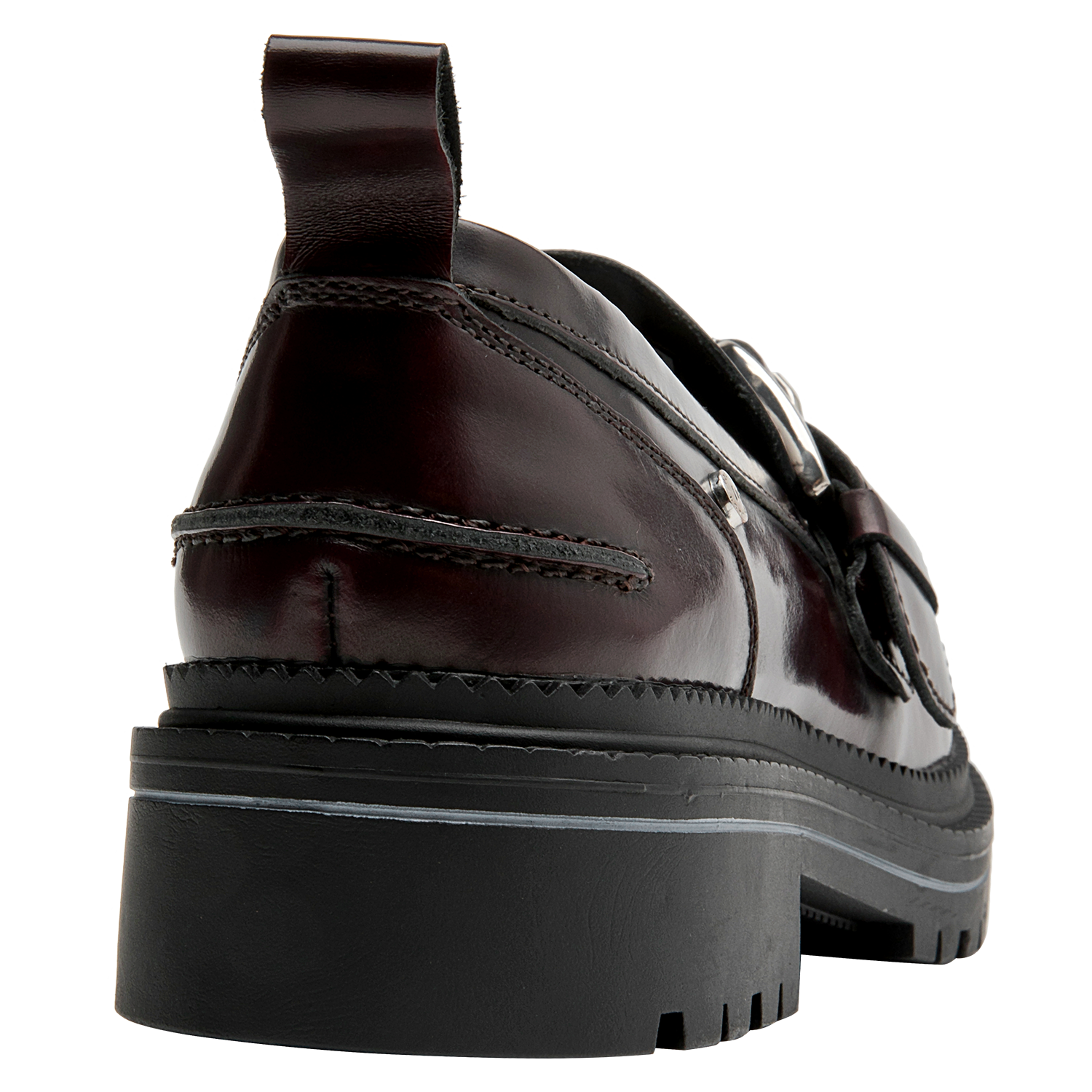 Botín urbano de cuero para mujer en color burdeo, con punta redonda y taco bloque de 4,5 cm que aporta estabilidad sin renunciar a la altura. El exterior en cuero luce un acabado suave y uniforme, mientras el interior incorpora un forro textil agradable al tacto para una sensación cómoda durante el día. Diseño limpio y atemporal, ideal para elevar looks casuales con un toque sofisticado.