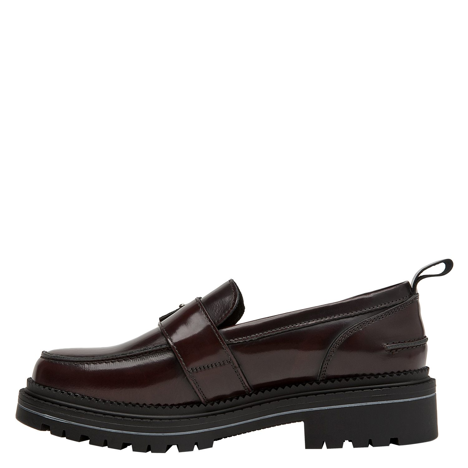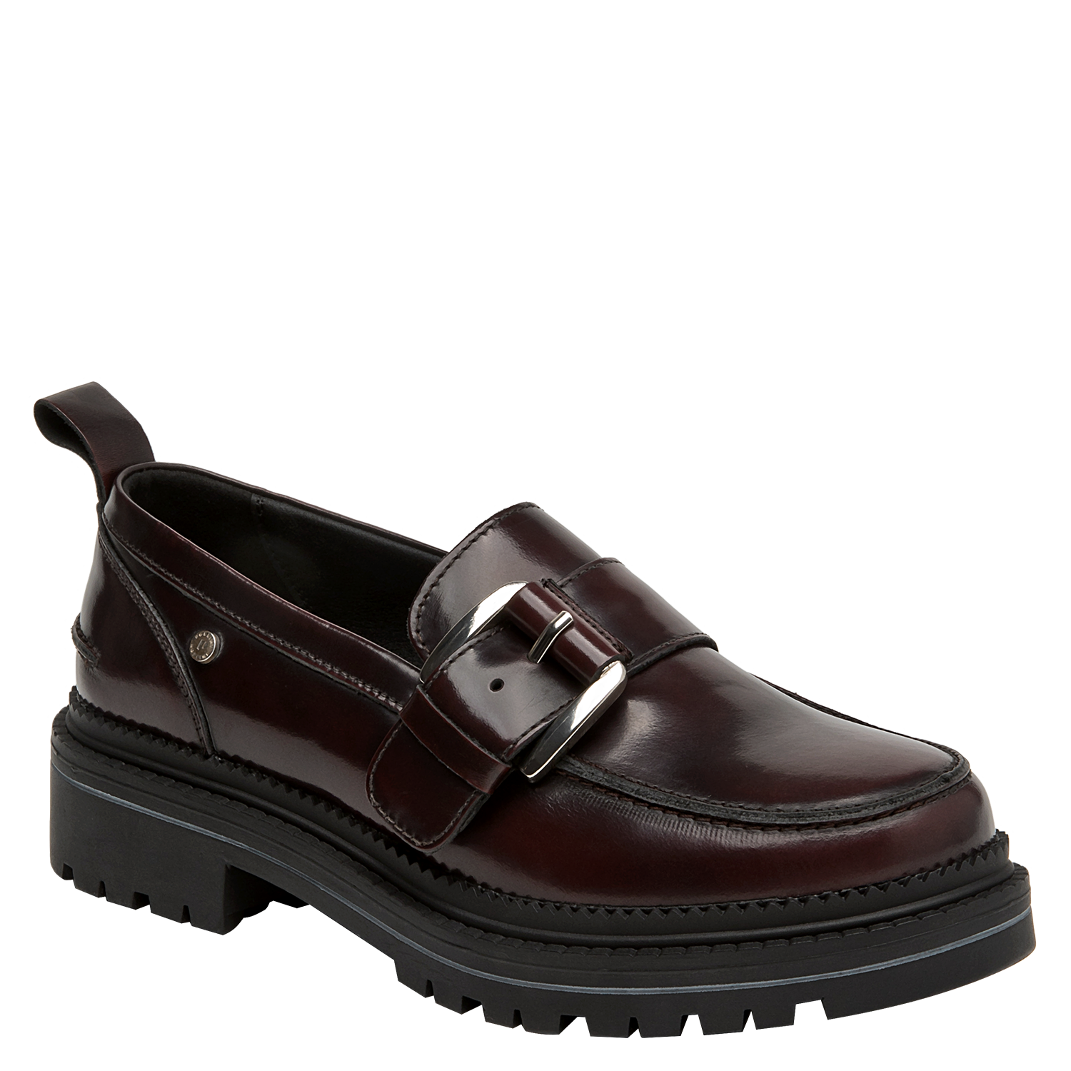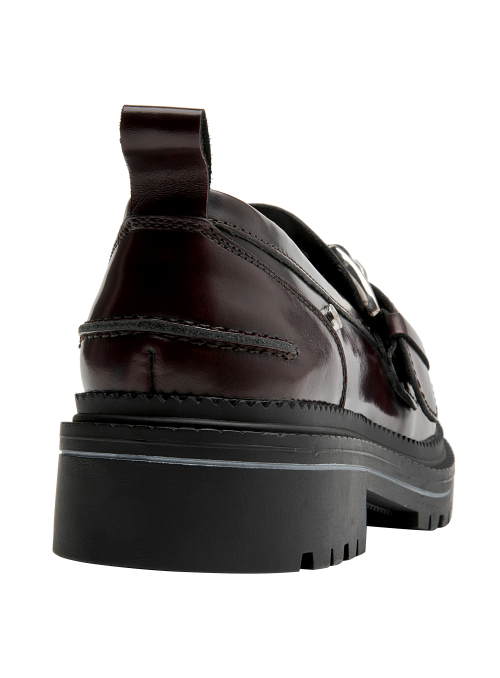 Botín urbano de cuero para mujer en color burdeo, con punta redonda y taco bloque de 4,5 cm que aporta estabilidad sin renunciar a la altura. El exterior en cuero luce un acabado suave y uniforme, mientras el interior incorpora un forro textil agradable al tacto para una sensación cómoda durante el día. Diseño limpio y atemporal, ideal para elevar looks casuales con un toque sofisticado.