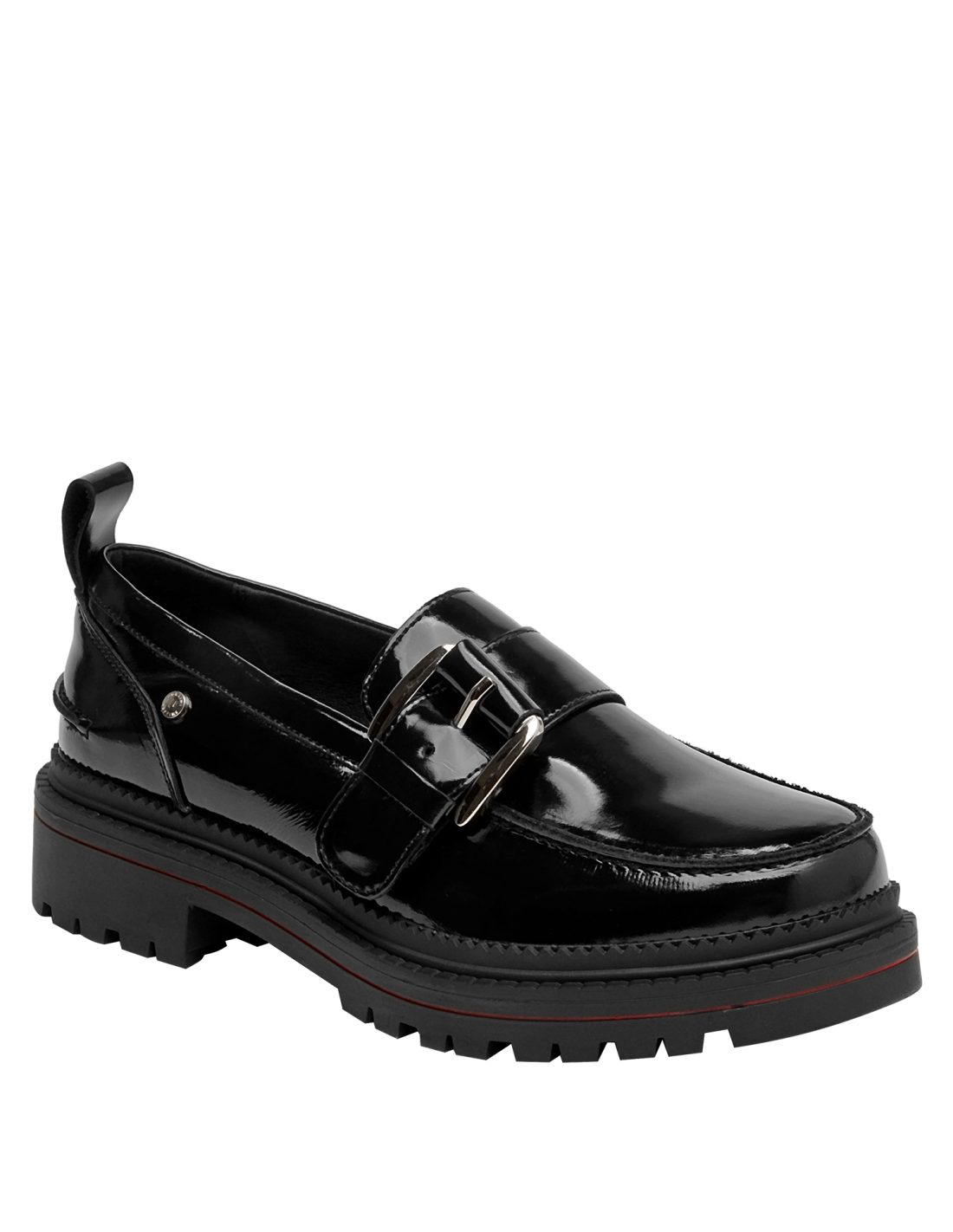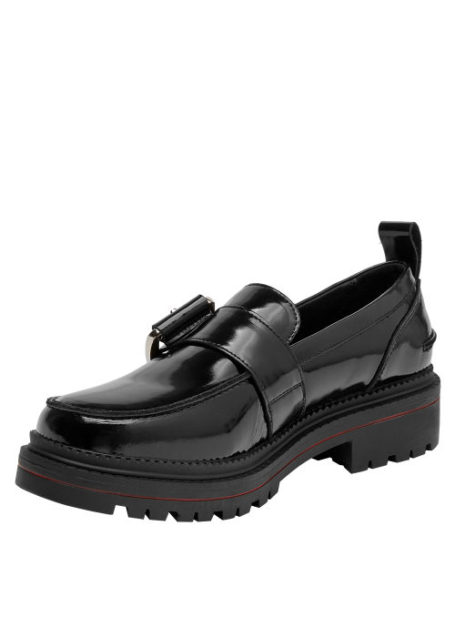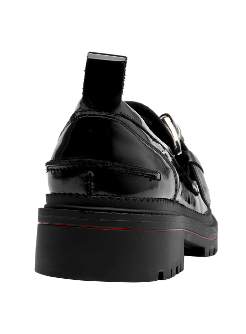 Zapato de cuero para mujer de estilo clásico en color negro, con punta redonda y taco bloque de 4,5 cm que aporta estabilidad y una silueta equilibrada. Su acabado liso y terminaciones discretas realzan un diseño versátil y atemporal, fácil de combinar en looks diarios o más formales.