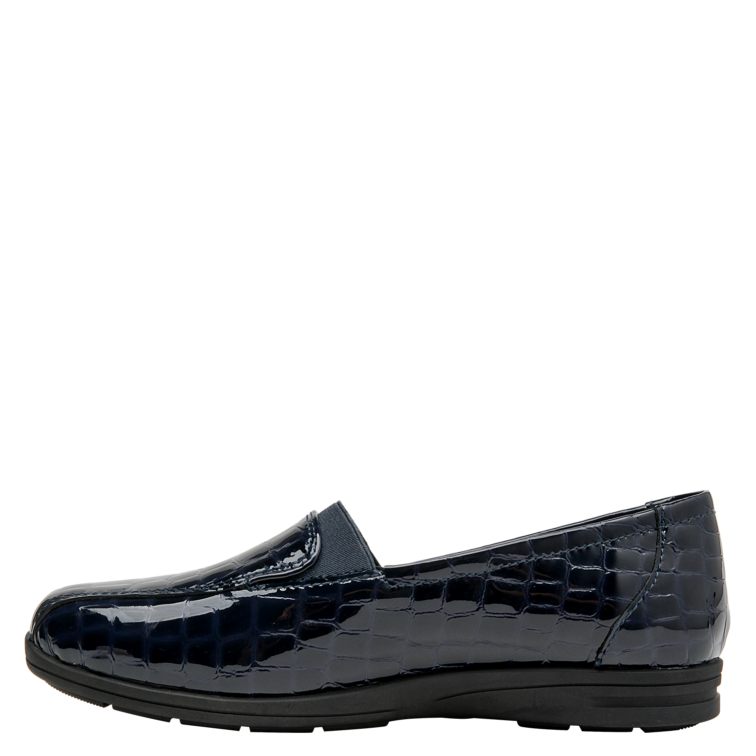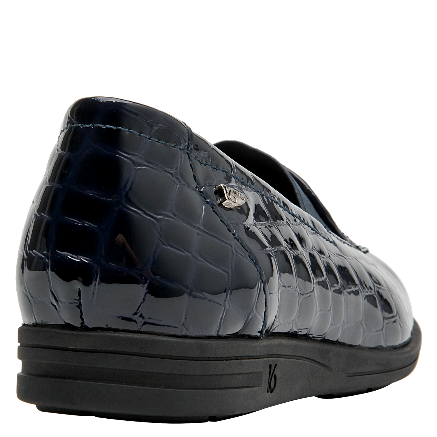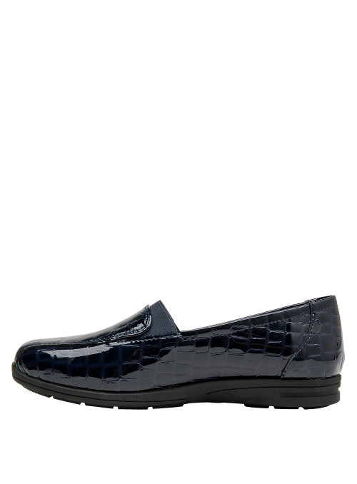 Mocasín plano de cuero para mujer en color azul, de diseño versátil y limpio. Su acabado en cuero se combina con punta redonda y un taco plano de 2 cm que aporta una leve elevación sin perder naturalidad. Incorpora forro de microfibra para una sensación suave al contacto, pensado para acompañarte en looks cotidianos.
