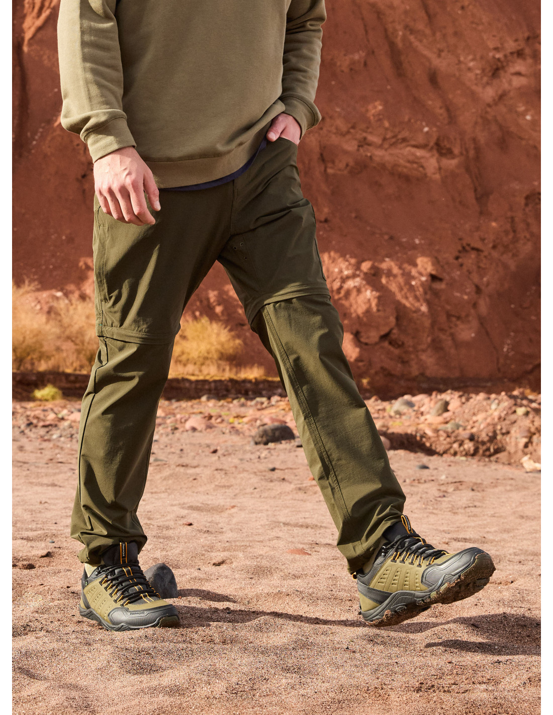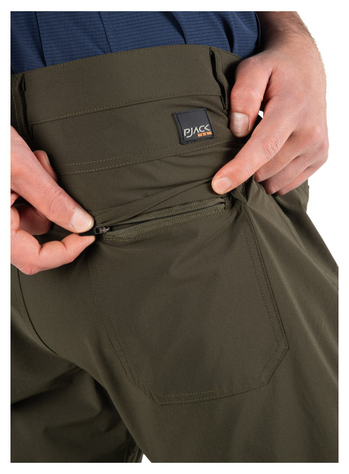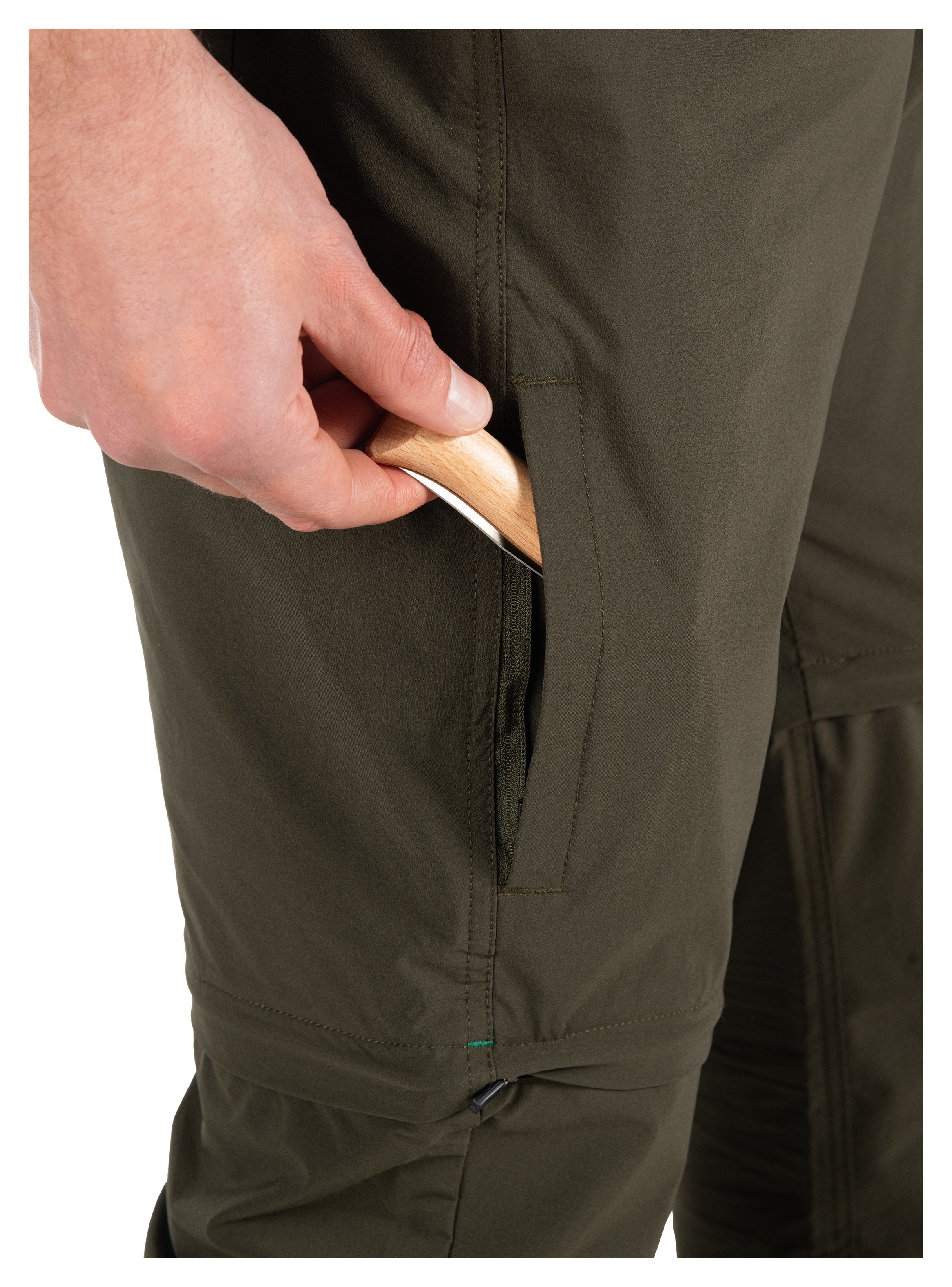 - 2 Bolsillos laterales abiertos / 2 bolsillos traseros (1 con cierre) / 2 bolsillos con cierre en pierna