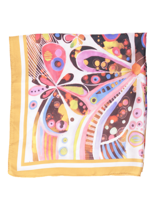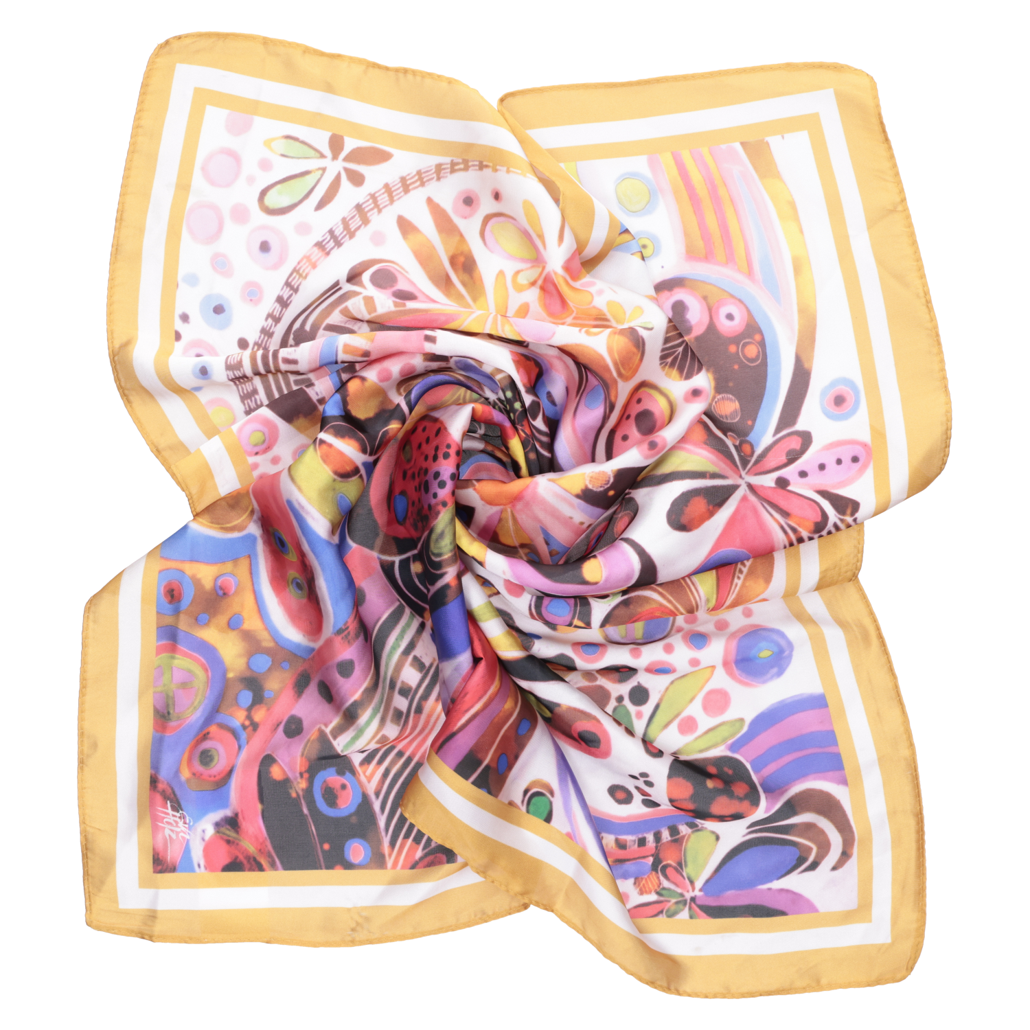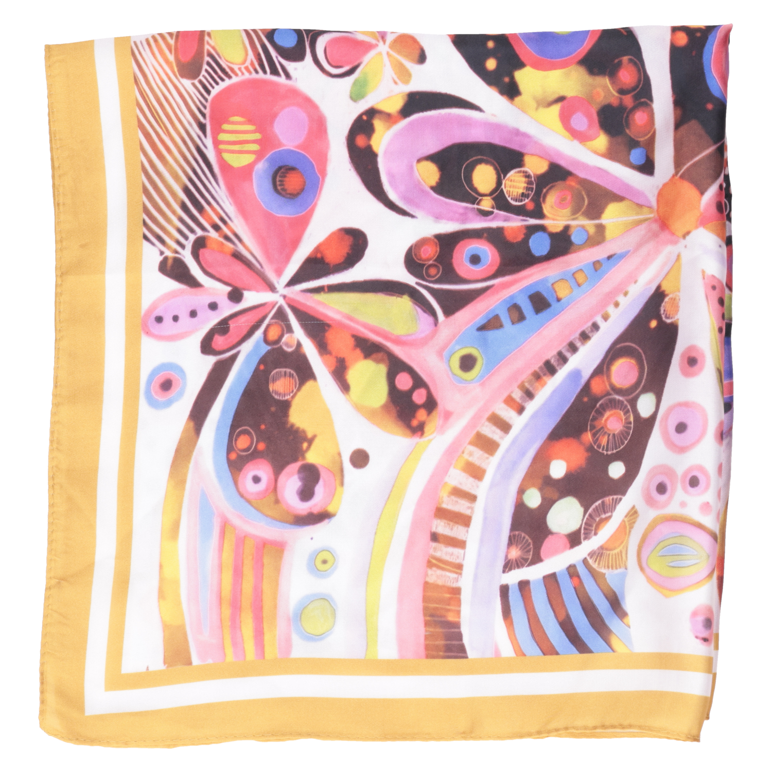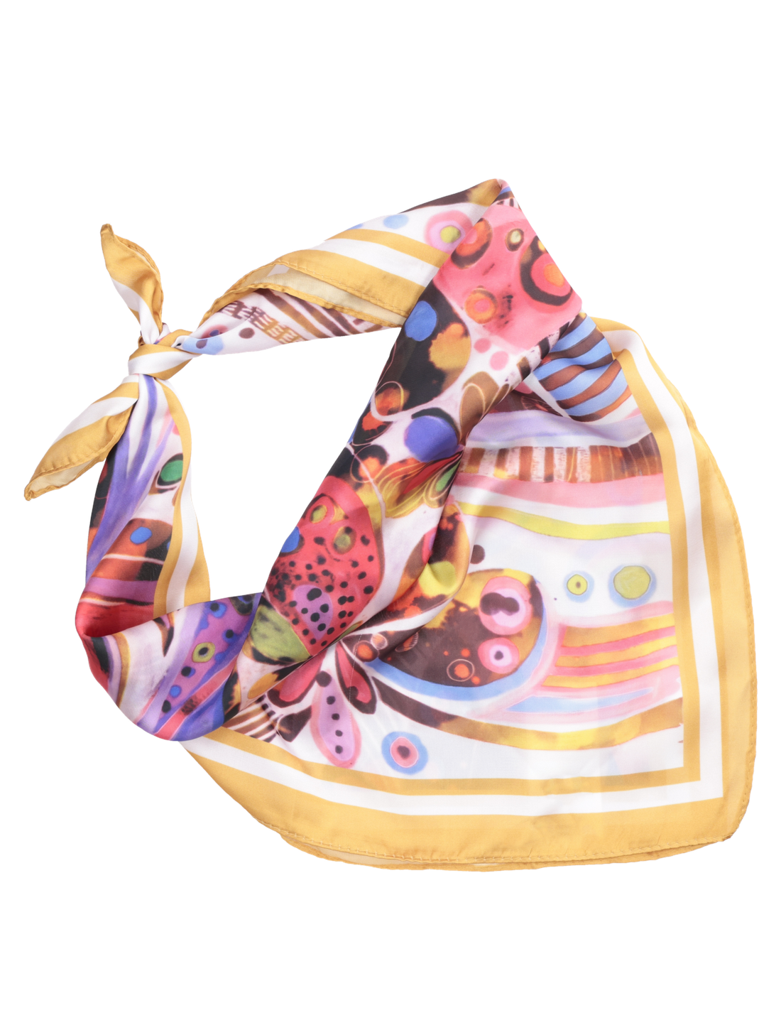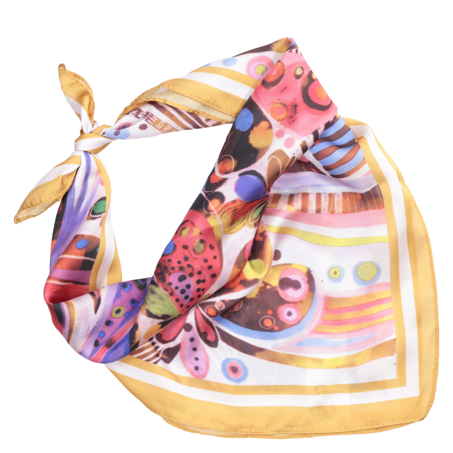 Sumérgete en el universo de la moda con este exquisito pañuelo de seda sintética multicolor de Pollini. Con un acabado satinado que refleja la luz de manera sublime, su diseño abstracto y artístico presenta una danza de tonos azules, verdes mar y lila, salpicados de toques vibrantes de amarillo y naranja. Los detalles metálicos y los sutiles brillos añaden un aire glamoroso, convirtiéndolo en la pieza perfecta para cualquier fashionista. Su versatilidad permite llevarlo como una bandana bohemia, un elegante turbante o un accesorio que realza tu bolso. Combínalo con una blusa blanca y jeans ajustados para un look fresco y actual, o atrévete a anudarlo en tu muñeca para un toque casual y moderno.
