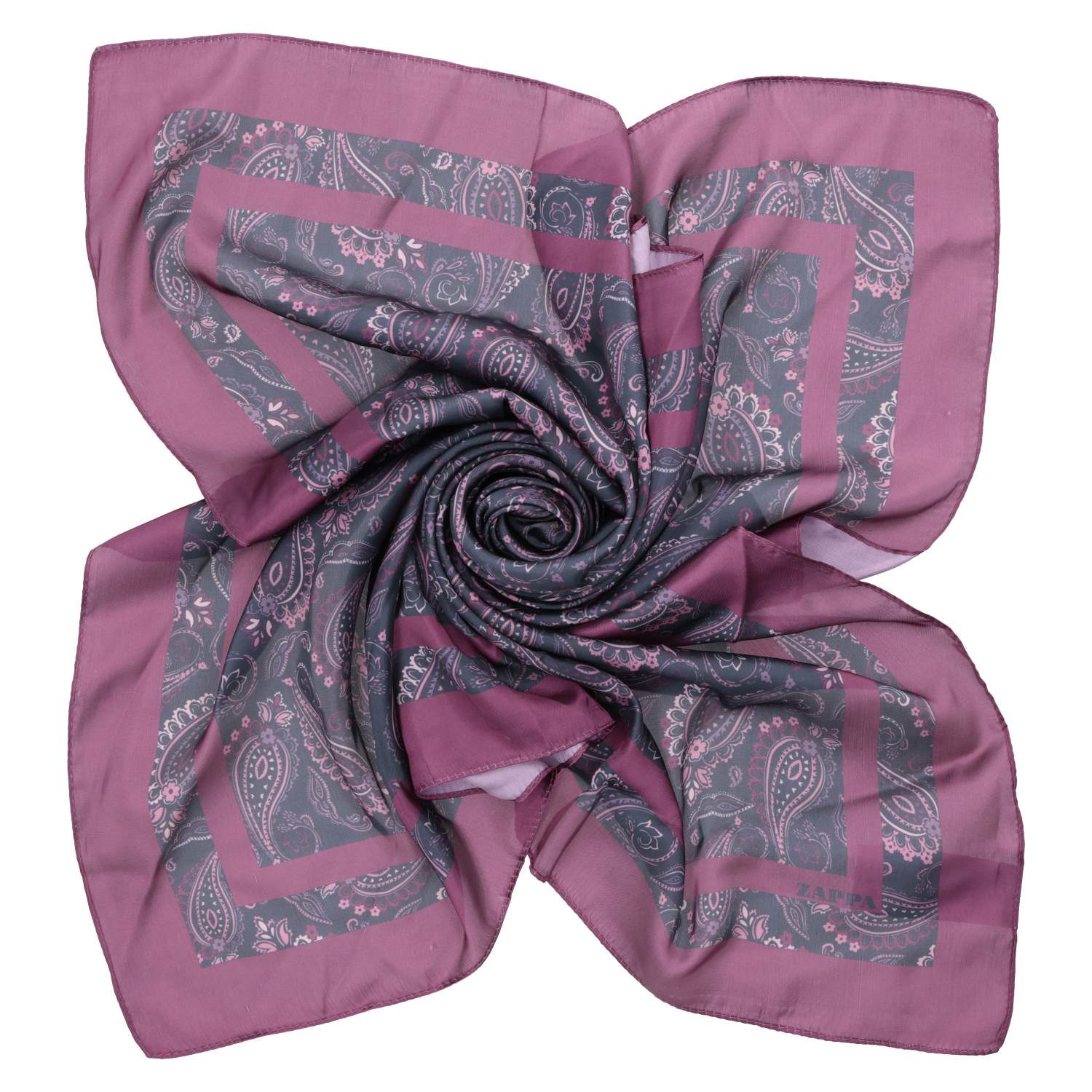 Sumérgete en el universo de Zappa con este exquisito pañuelo de seda sintética en un vibrante color burdeos. Su diseño audaz presenta un cautivador estampado de flores y formas abstractas en tonos de azul, verde mar, lila y rosa, creando un impacto visual que no pasa desapercibido. Detalles metálicos y sutiles brillos añaden un toque de sofisticación, mientras que el borde de seda en color mar enmarca esta pieza con elegancia. Versátil y moderno, este pañuelo puede lucirse como una bandana, un accesorio para el cuello o incluso como un toque distintivo en tu bolso. Combínalo con una blusa blanca y jeans para un look urbano o anúdalo a tu muñeca para un estilo más casual y atrevido.