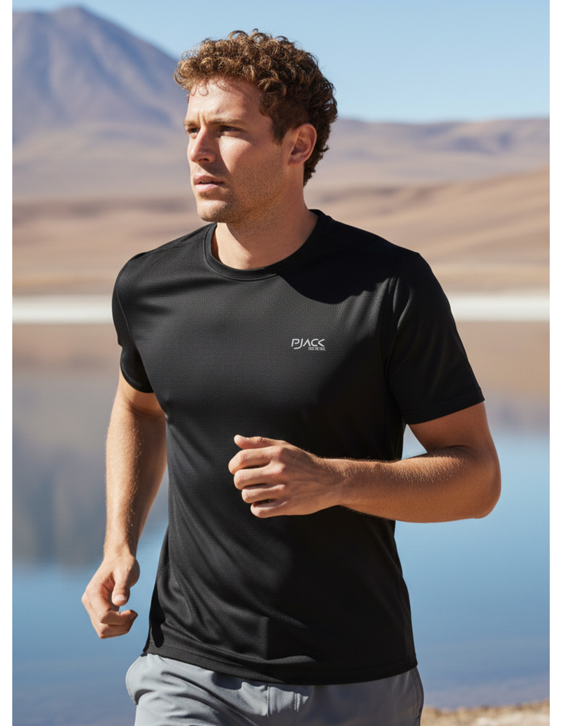 Polera para hombre de estilo casual en color negro, confeccionada en 84% poliéster y 16% spandex para un ajuste flexible. Tejido ligero y suave, con terminaciones prolijas y calce cómodo, ideal para el día a día o capas livianas. Diseño minimalista y fácil de combinar.