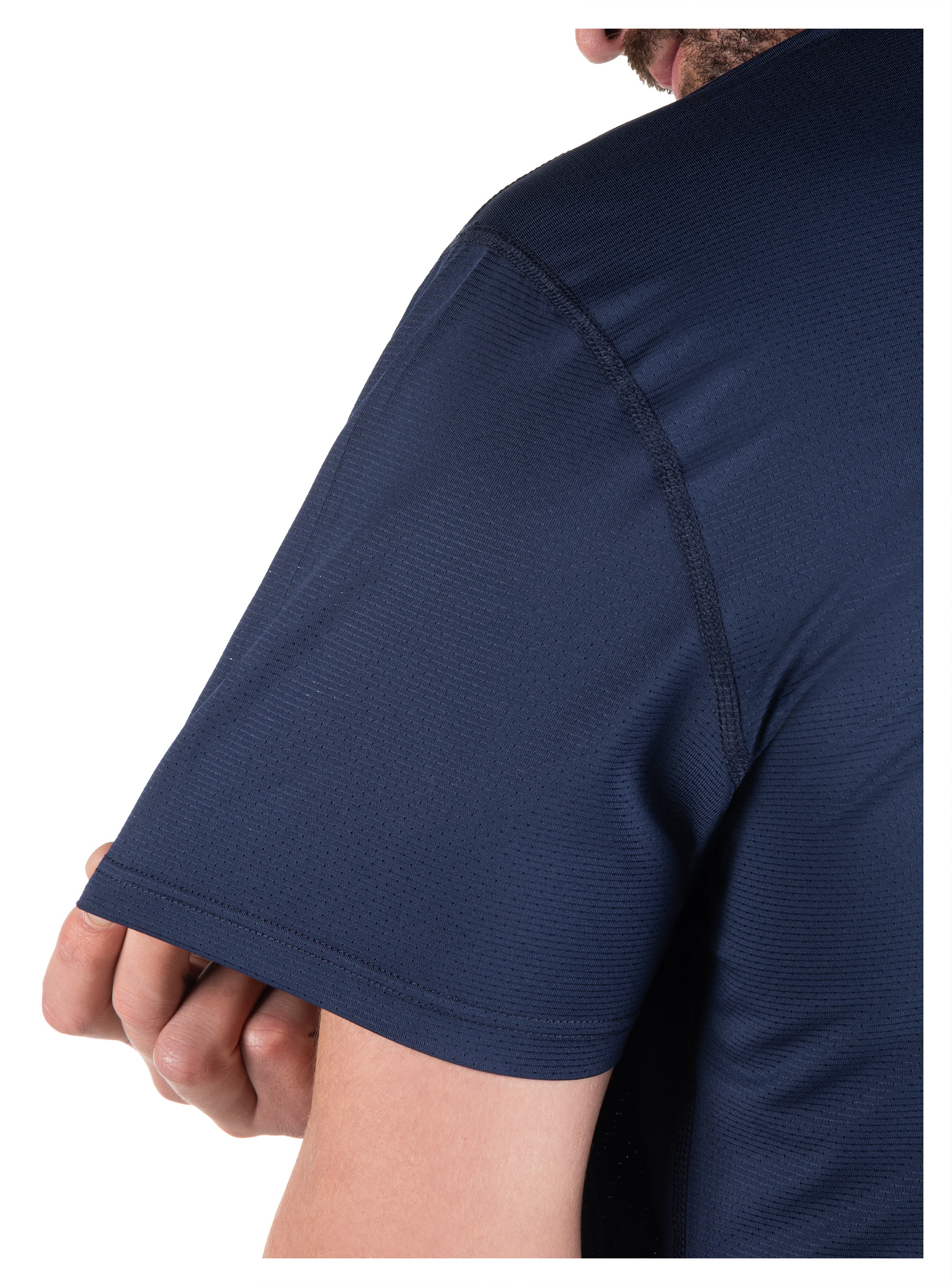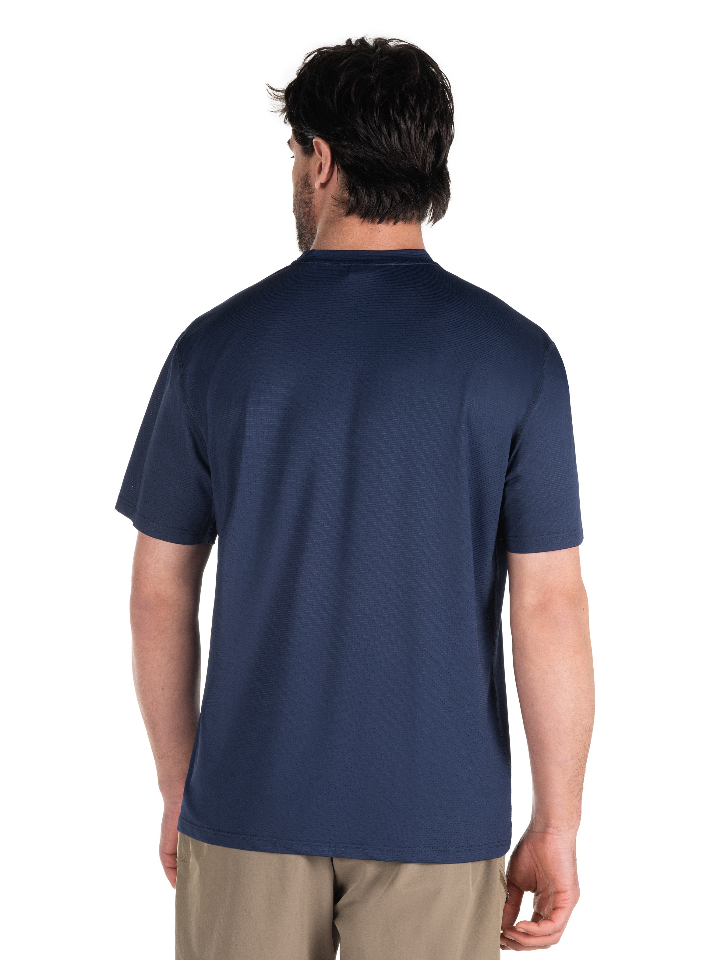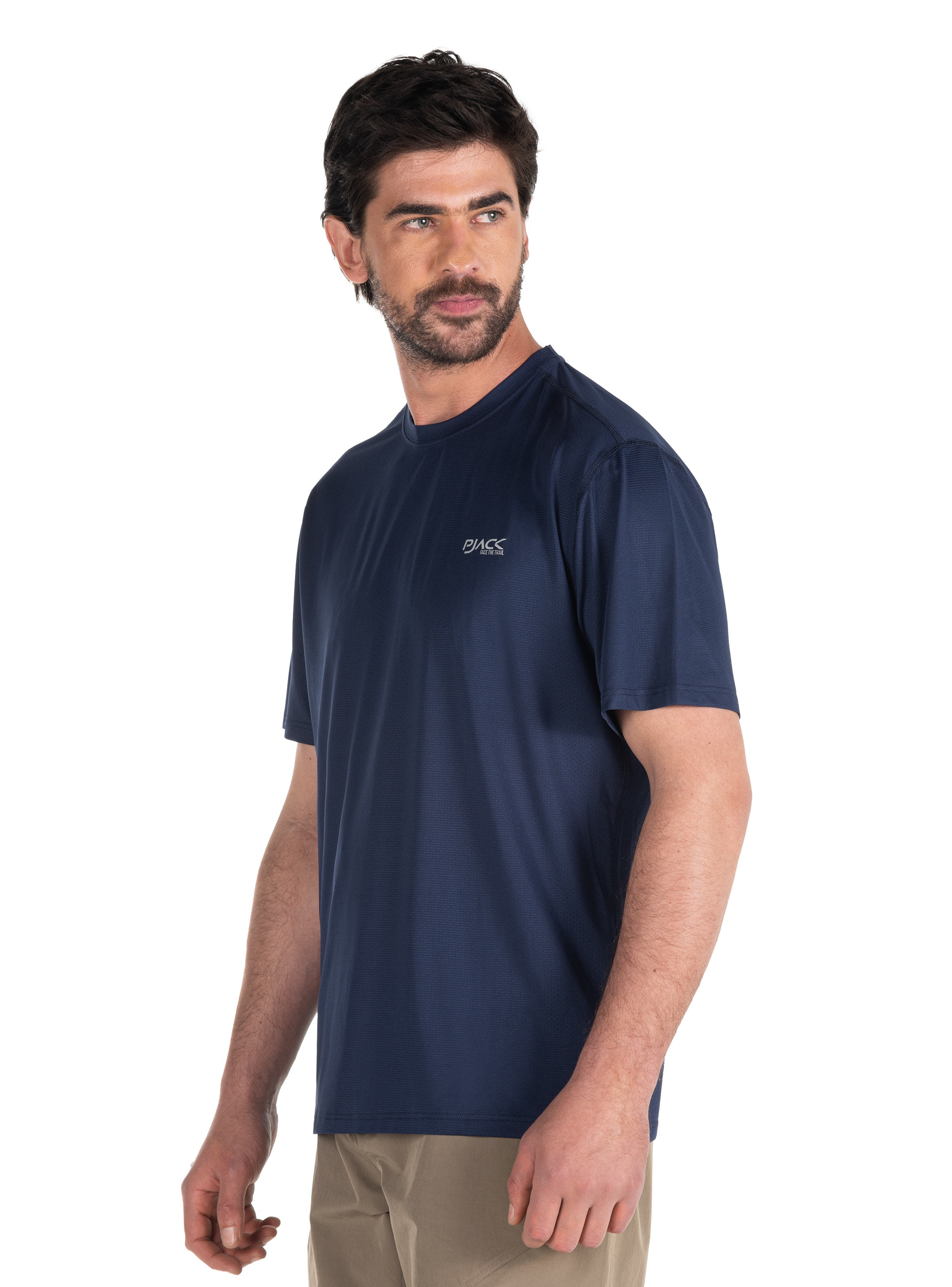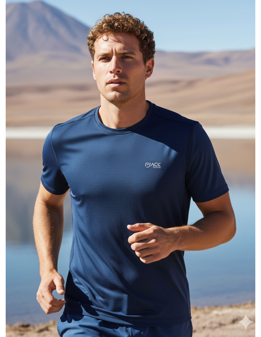 Polera básica para hombre en color azul, confeccionada en una mezcla de 84% poliéster y 16% spandex que aporta caída ligera y elasticidad cómoda. Su diseño limpio y versátil destaca por la terminación lisa y costuras prolijas, sin botones ni adornos excesivos, ideal para uso diario o para llevar en capas.