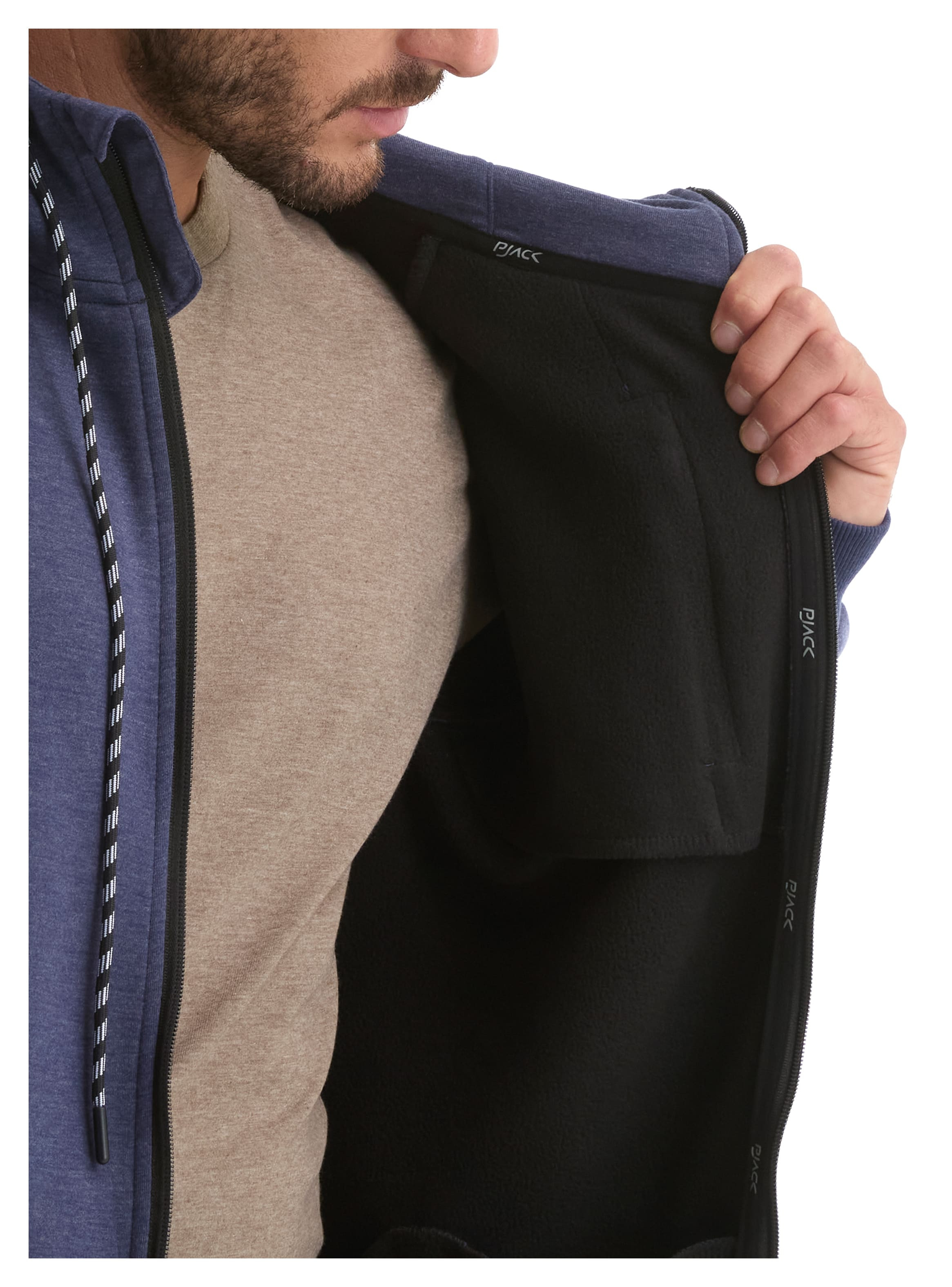 El Polerón Deportivo de Hombre PJACK está confeccionado en bonded fabric, con una cara en jersey grueso (65% poliéster, 35% algodón) y un interior de polar en contraste que ofrece calidez y confort sin peso excesivo. Su tejido técnico brinda resistencia y durabilidad para acompañarte en tus actividades deportivas o uso casual.